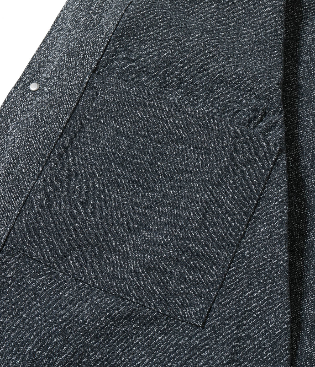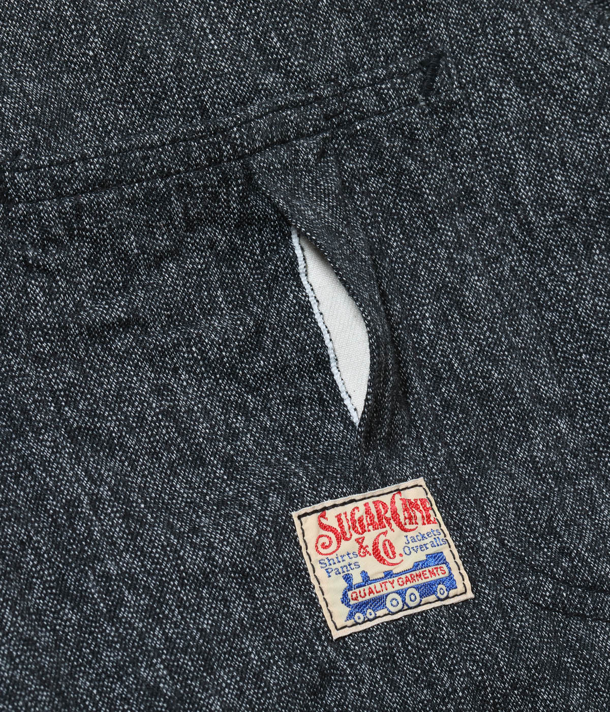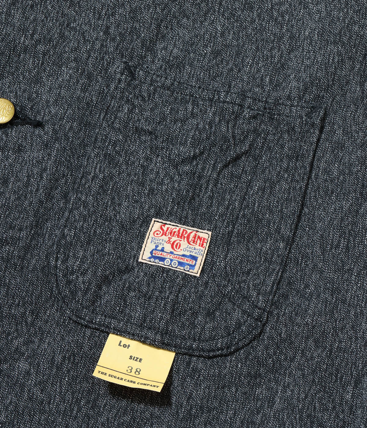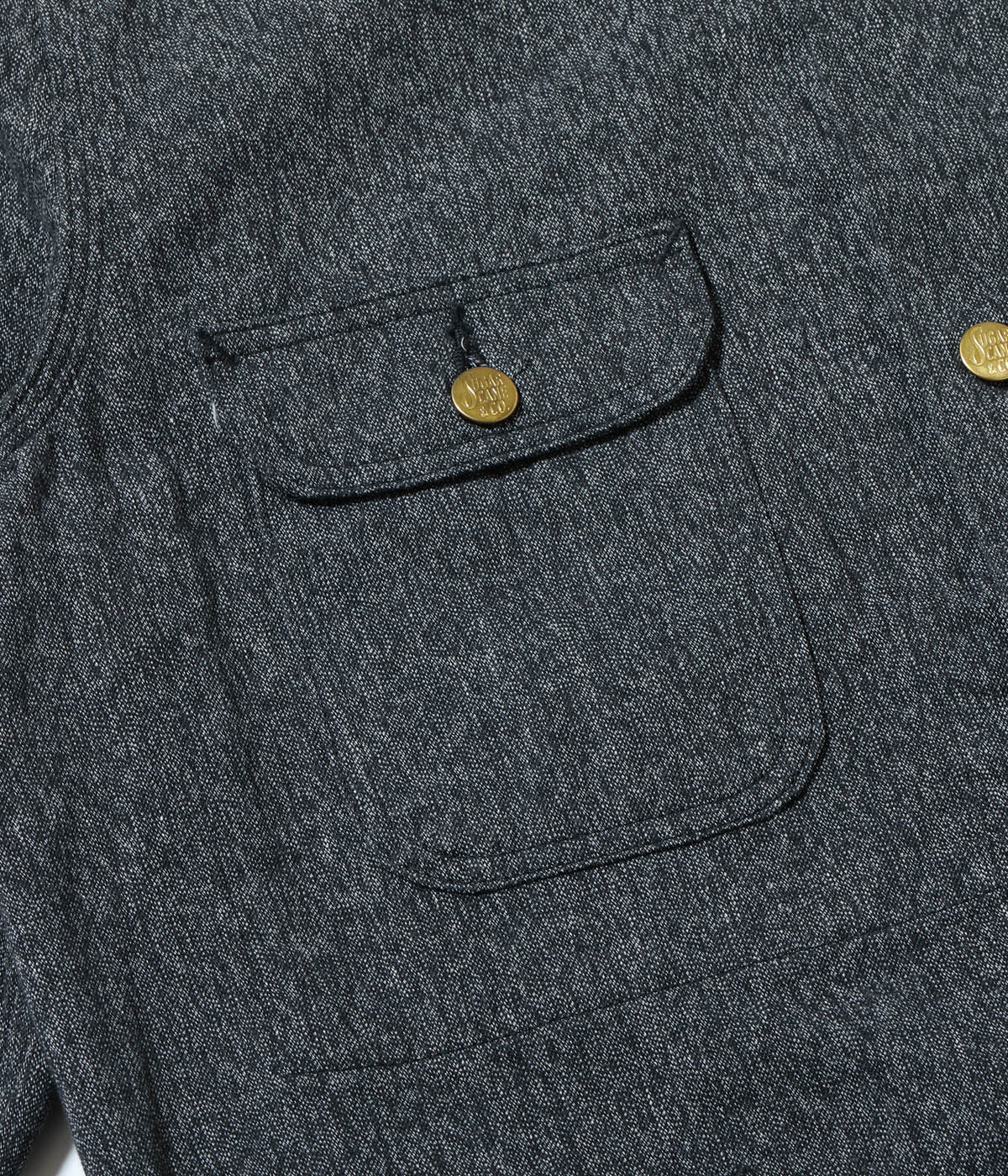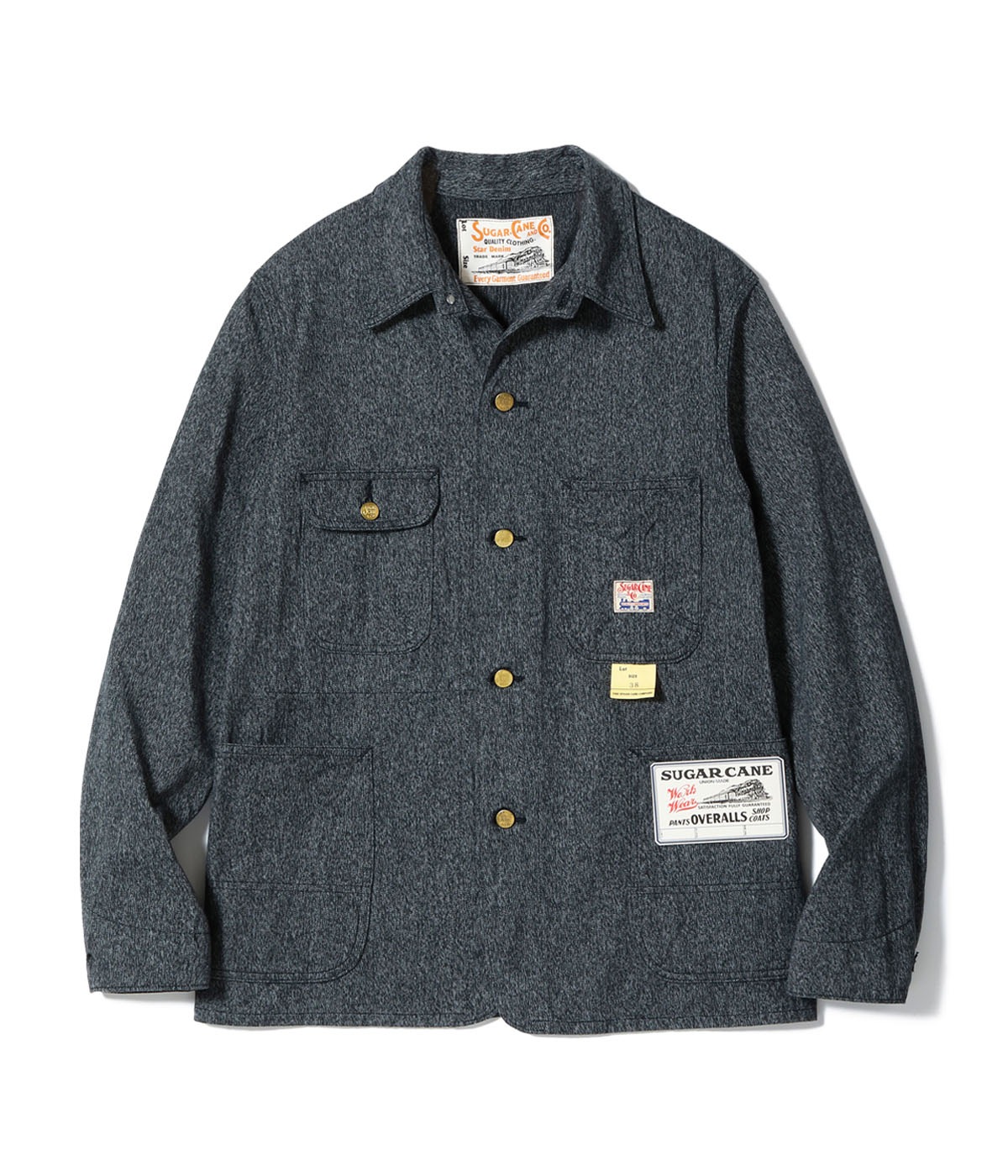 9oz 블랙 코버트 워크 코트. 심플하지만, 제2차 세계대전 후의 점포 브랜드 워크 코트로, 가챠 포케 사양 등 빈티지한 디테일이 돋보이는 코트입니다. 베이스 칼라가 생략되기 전의 모델로, 오른쪽 가슴은 플랩 포켓, 왼쪽 가슴은 3-in-1 포켓 사양. 큰 허리 포켓에는 패치가 장비되어 있으며, 오른쪽 가슴에는 내부 포켓도 장비하고 있습니다.
