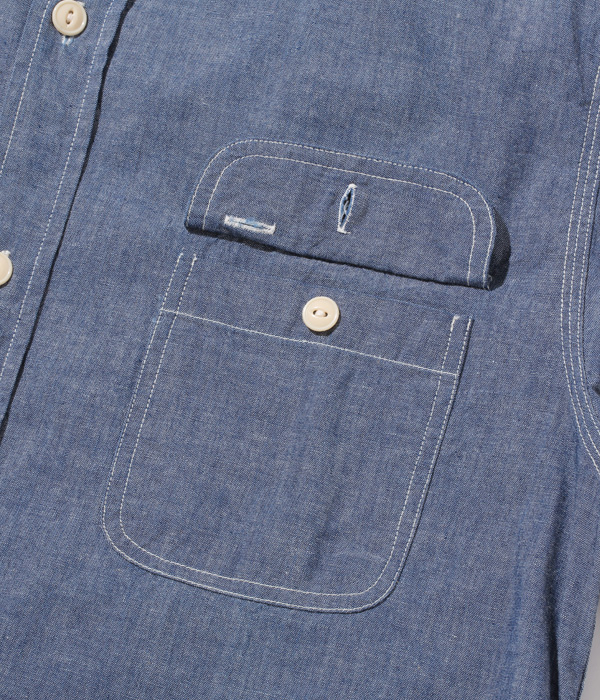 1950년대의 샹브레이 셔츠를 기반으로 합니다. 블루 샹브레이 원단은 날실은 남색사로, 씨실은 흰색 실로 만들어집니다. 같은 유형의 반팔 모델도 있습니다.