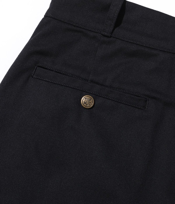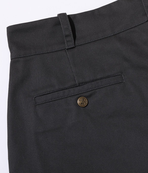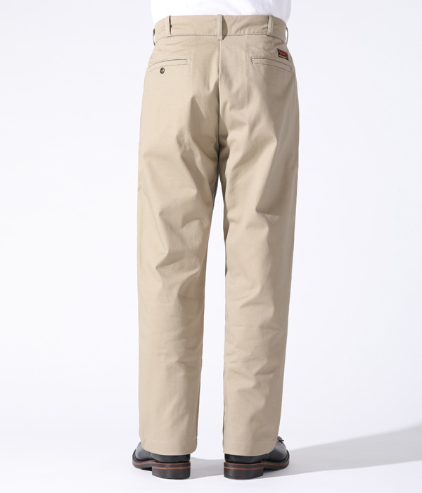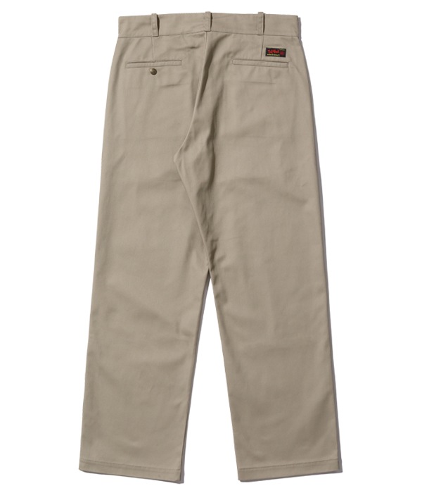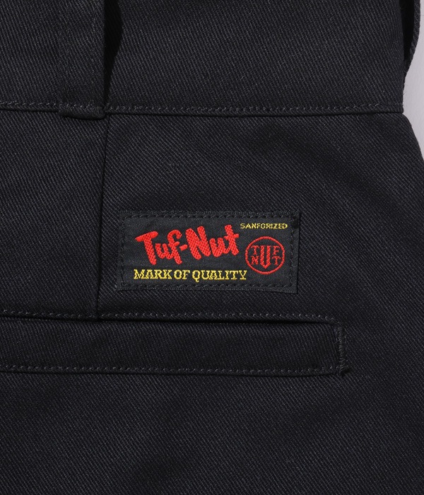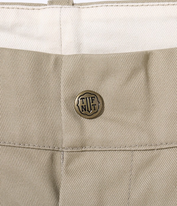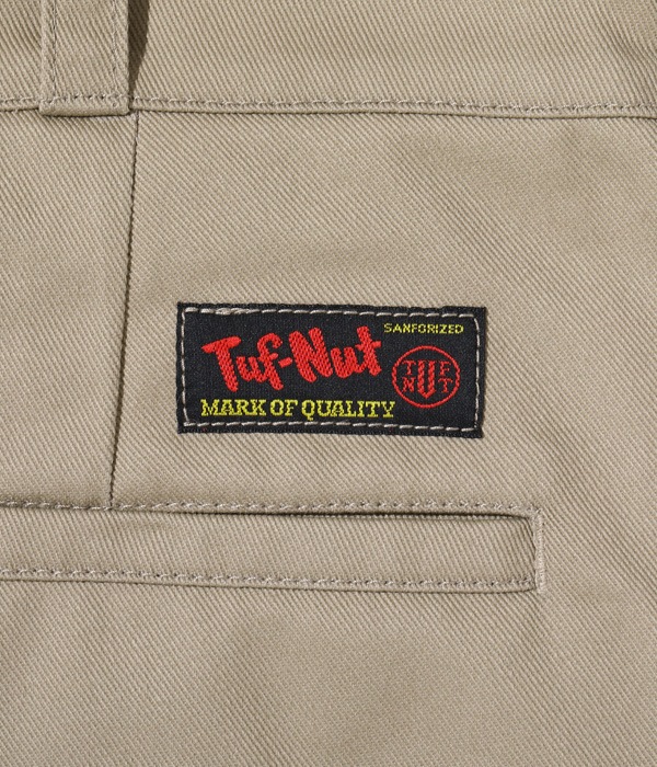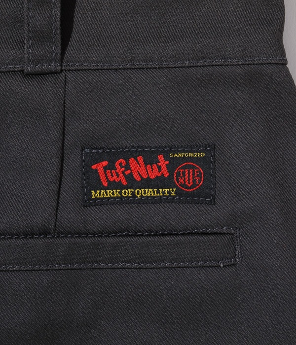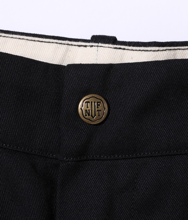 폴리에스테르 65%와 면 35%를 혼방한 소재를 사용한 바지. 부드러운 촉감이며 주름이 잘 생기지 않습니다. TUF-NUT의 빈티지 팬츠는 대부분 우레아 버튼이 있지만, 편의상 브랜드 이름이 새겨진 스냅 버튼을 사용합니다.실루엣은 두껍고 스트레이트로, 모든 허리 사이즈의 길이가 통일되어 있습니다.