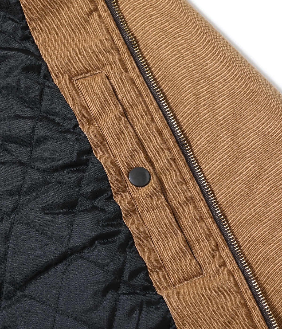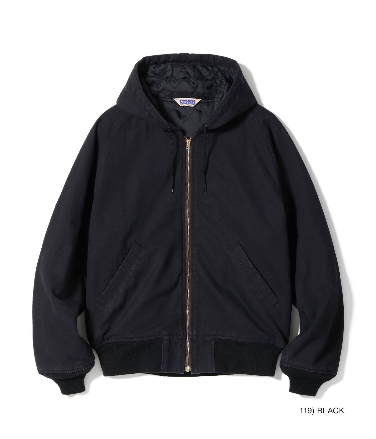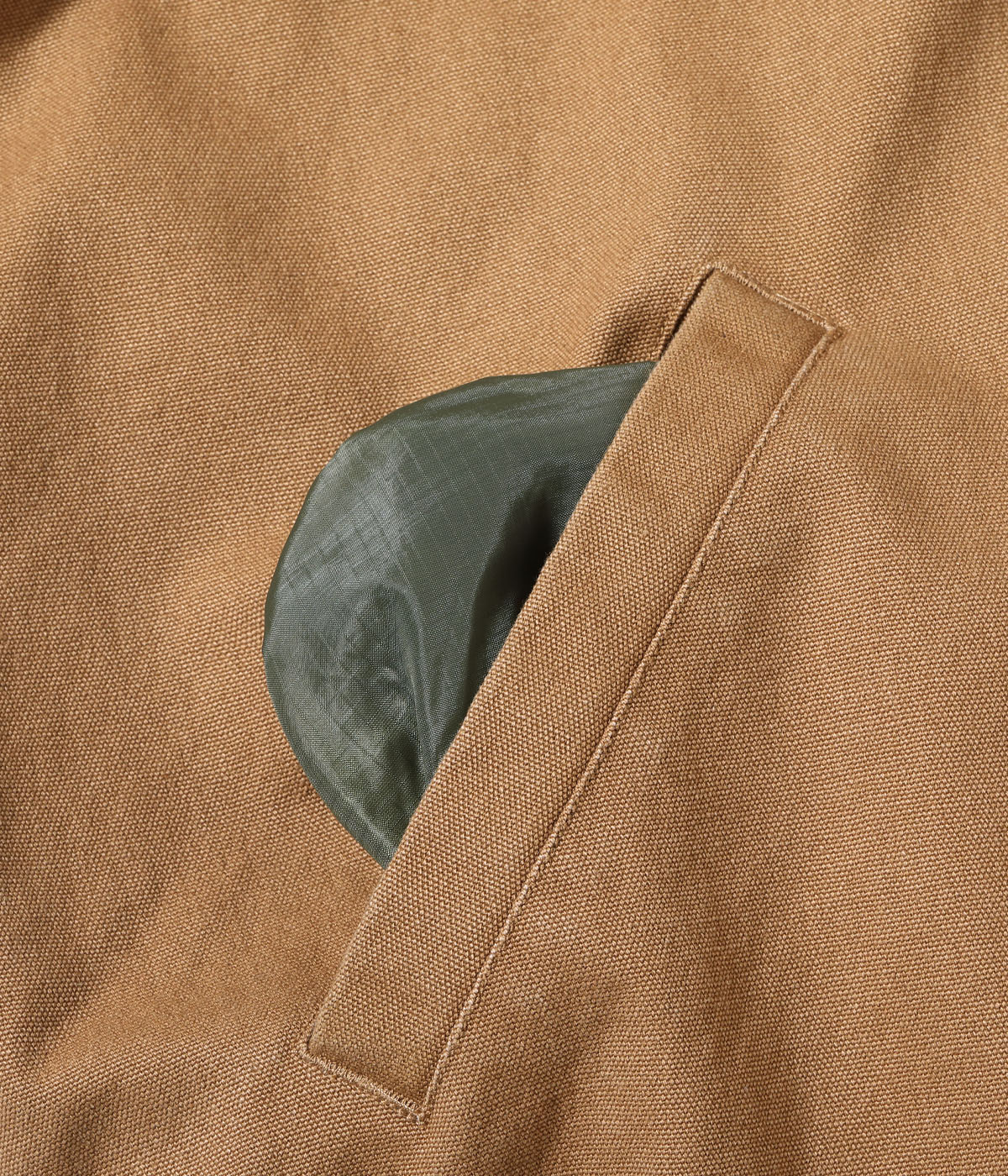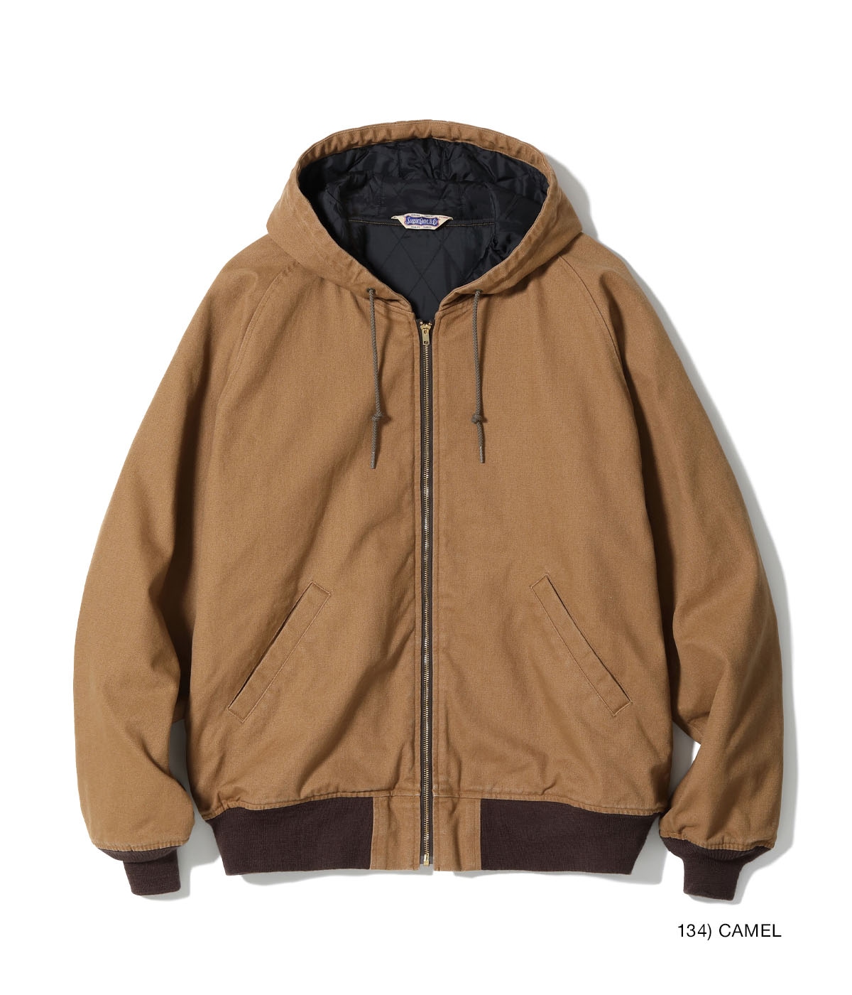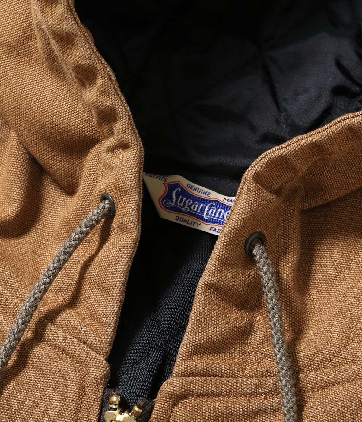 코튼 덕으로 만든 워크 파카. 황화물 염색으로 시간이 지남에 따라 빈티지함을 느낄 수 있습니다. 2oz 경량 안솜을 내장하고 있으 적당한 보온성이 있습니다.