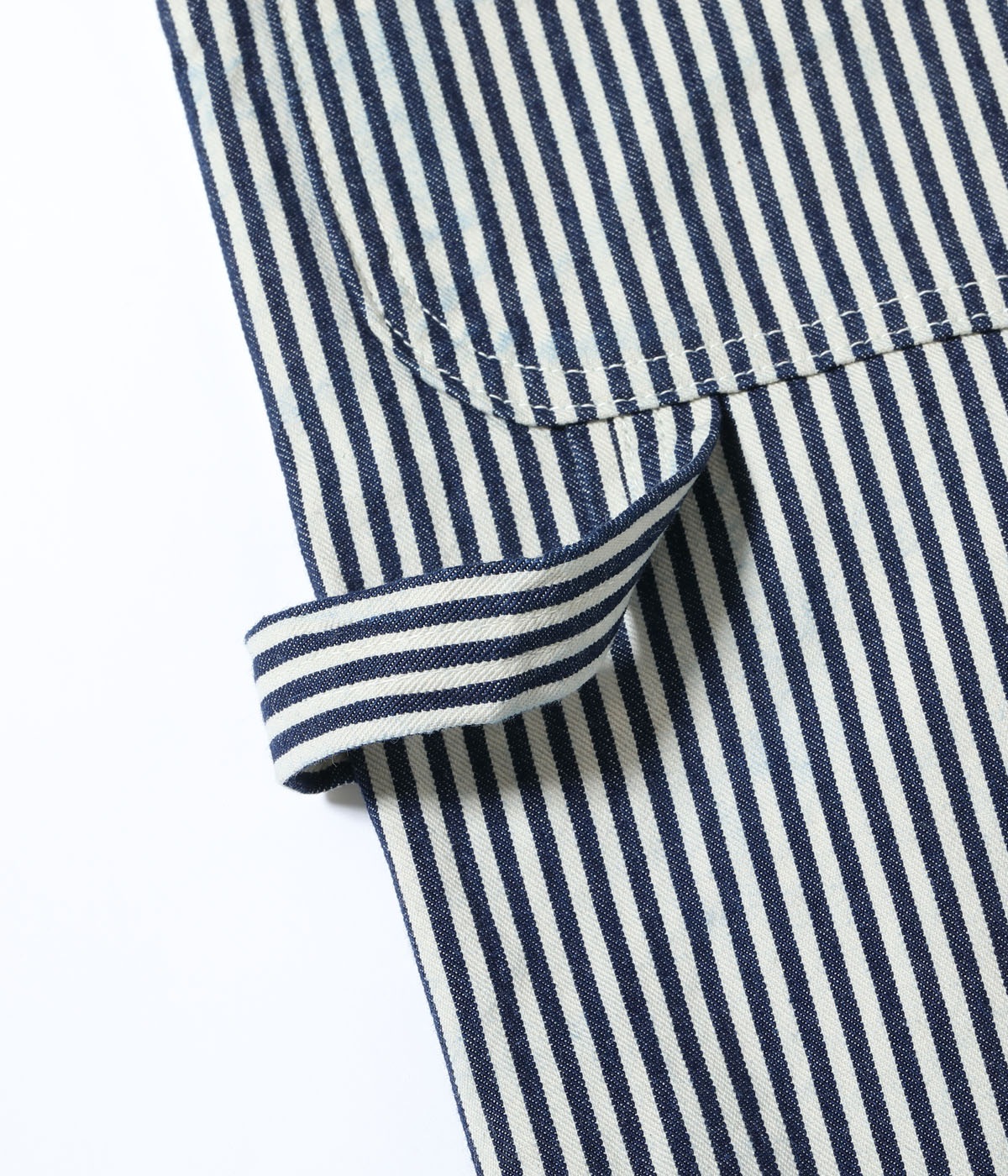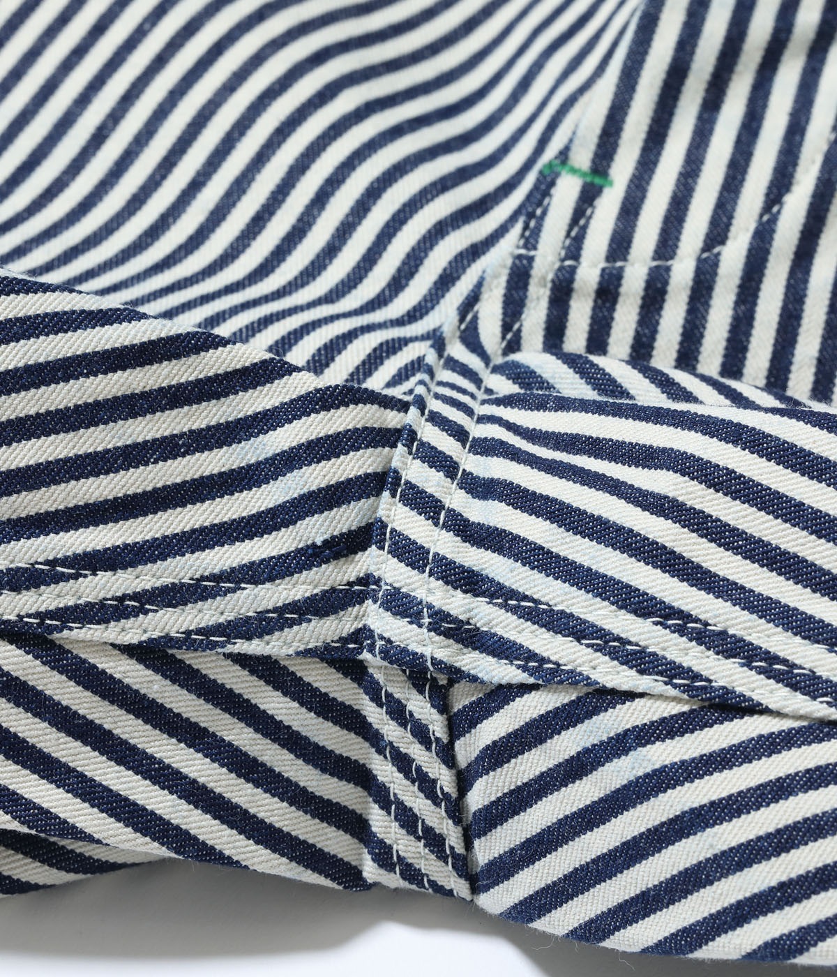 스트라이프 중 네이비 컬러 부분은 로프 염색한 인디고 로, 착용을 거듭할수록 데님처럼 자연스럽게 바래지는 에이징 이 기대됩니다.