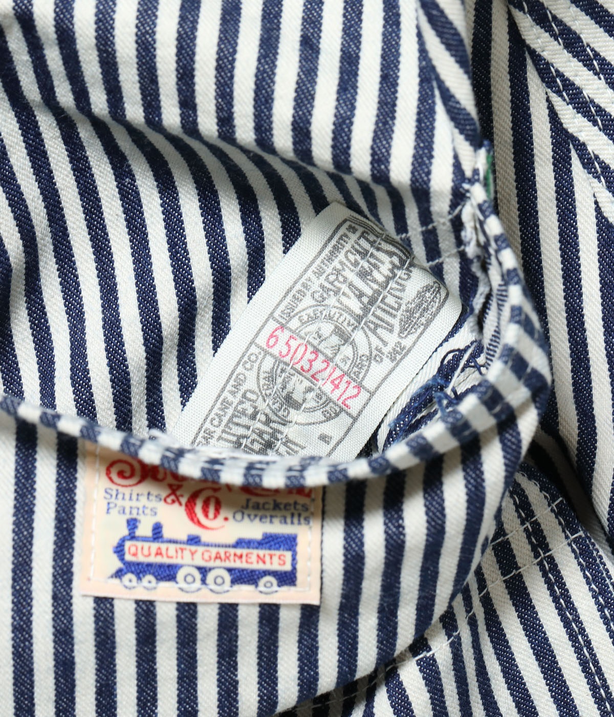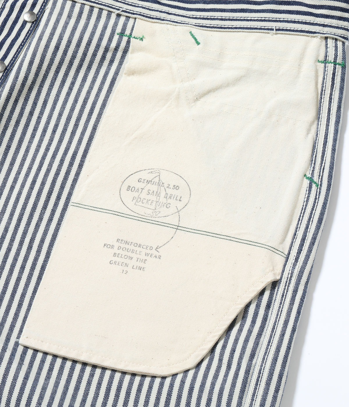 구식 셔틀 직기로 짜낸 11온스 히코리 스트라이프 원단 을 사용한 워크 팬츠