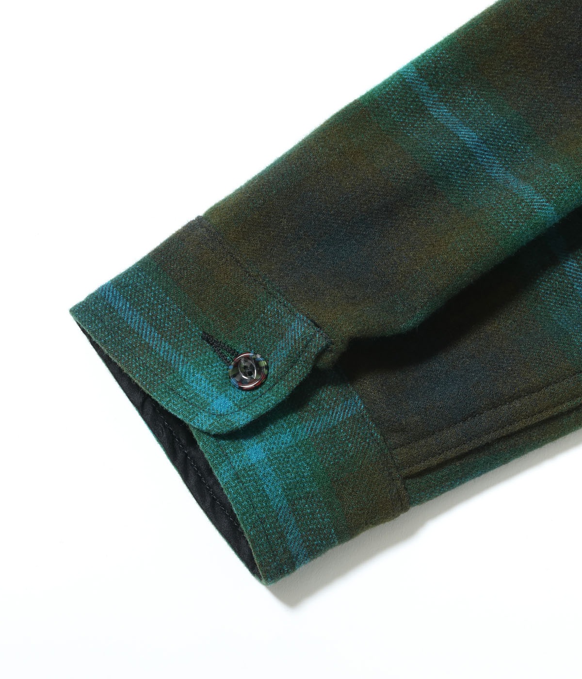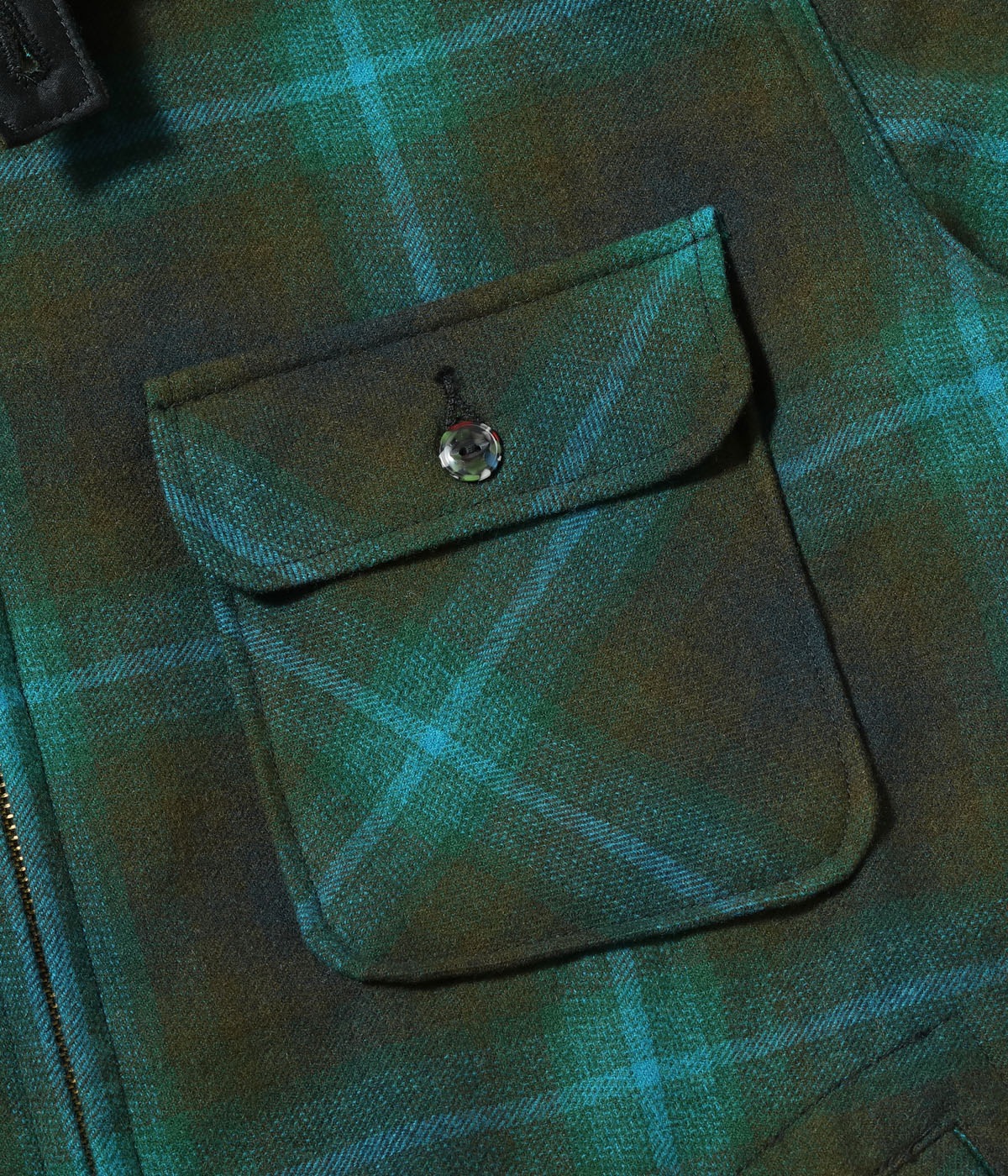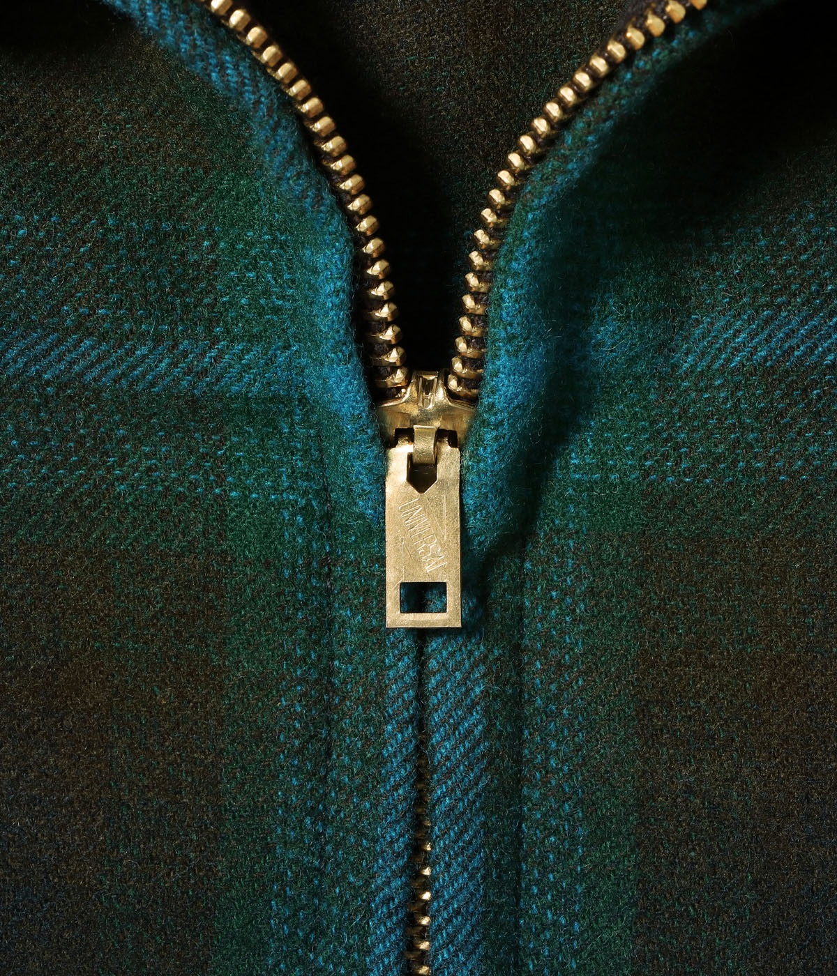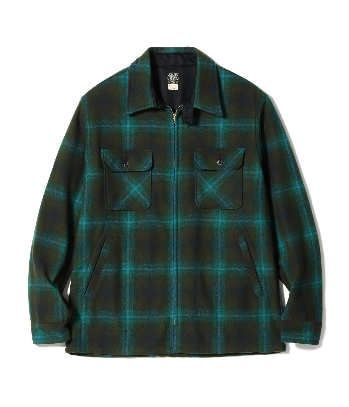 1960년대의 PENDLETON 지퍼 재킷을 베이스로 하고 있습니다. 원래는 허리 길이였지만 입기 쉬운 엉덩이 길이로 디자인되었습니다. 오리지널보다 품질이 높은 고품질 Super 100s 원사를 사용하고 있어 착용감이 좋습니다. 요크, 칼라, 커프스 단추 및 플랩의 뒷면은 블랙 새틴 패브릭으로 전환됩니다.