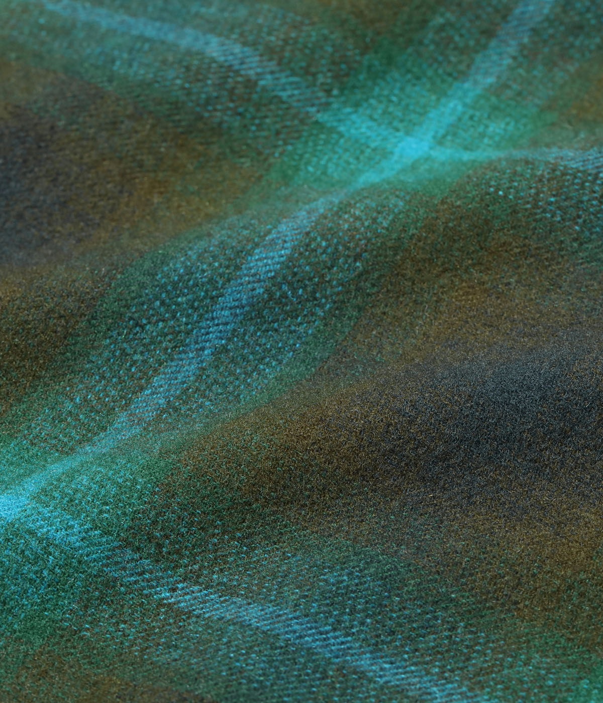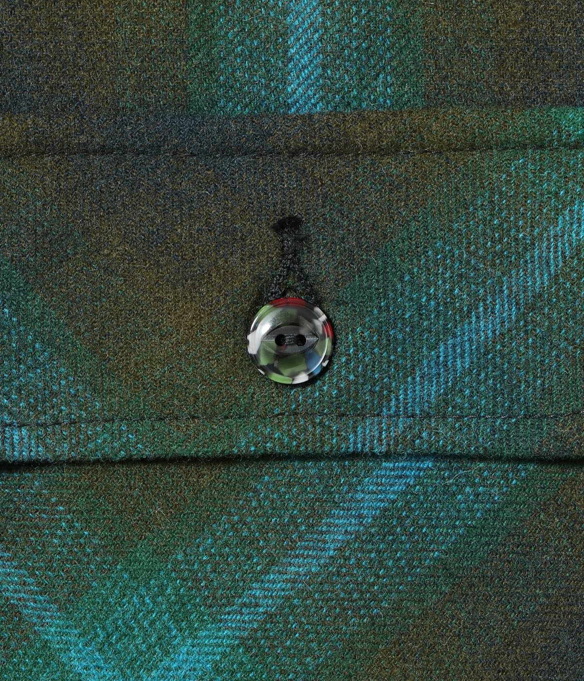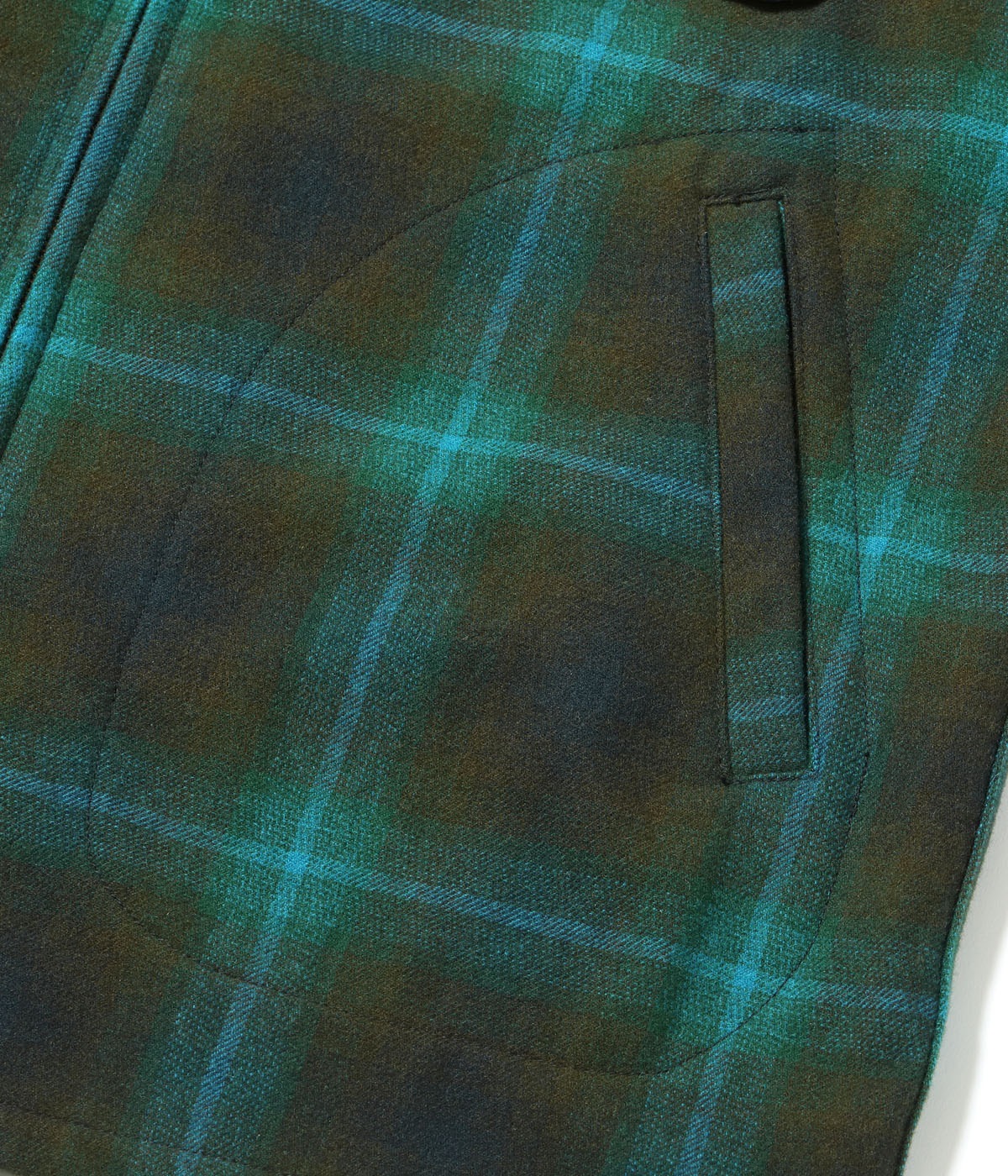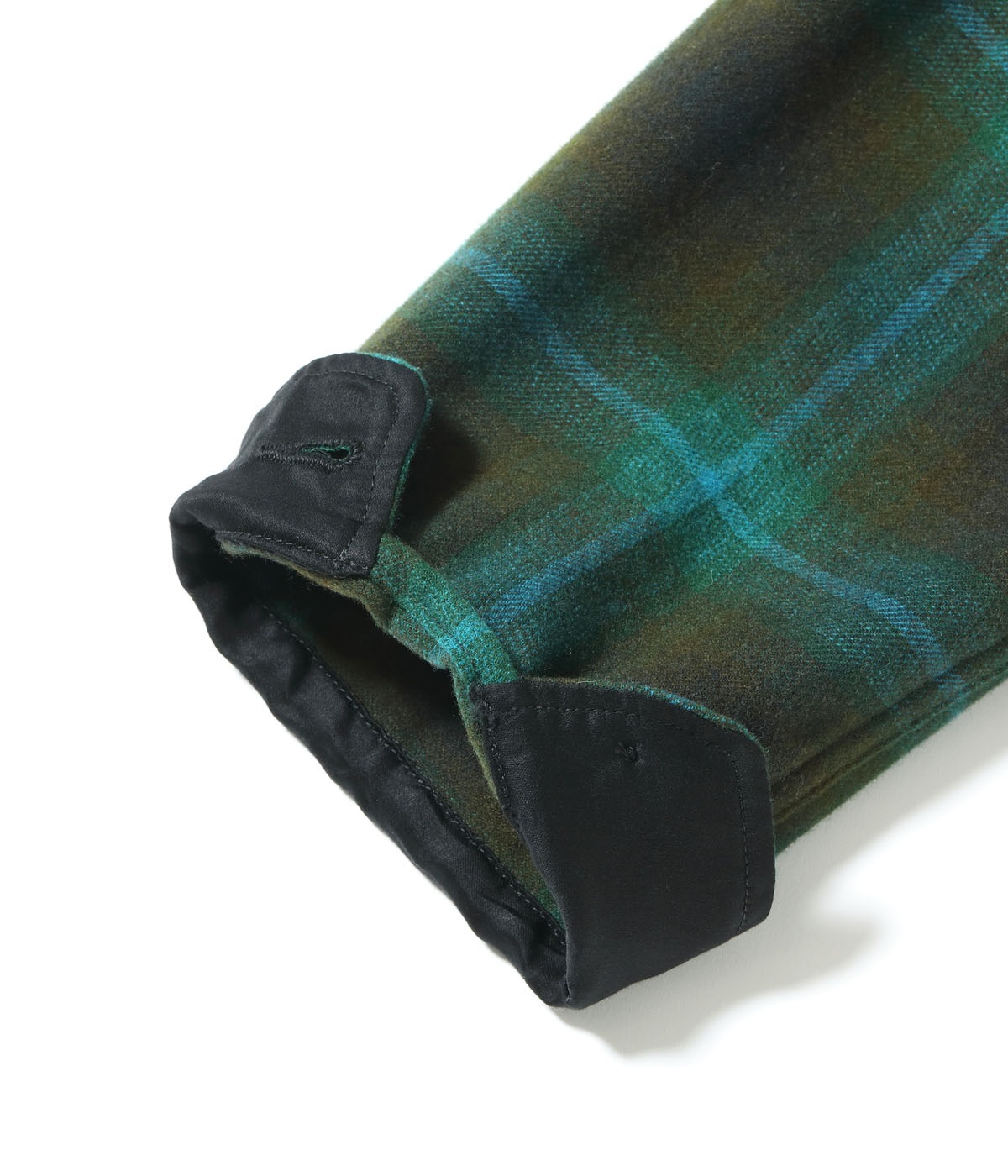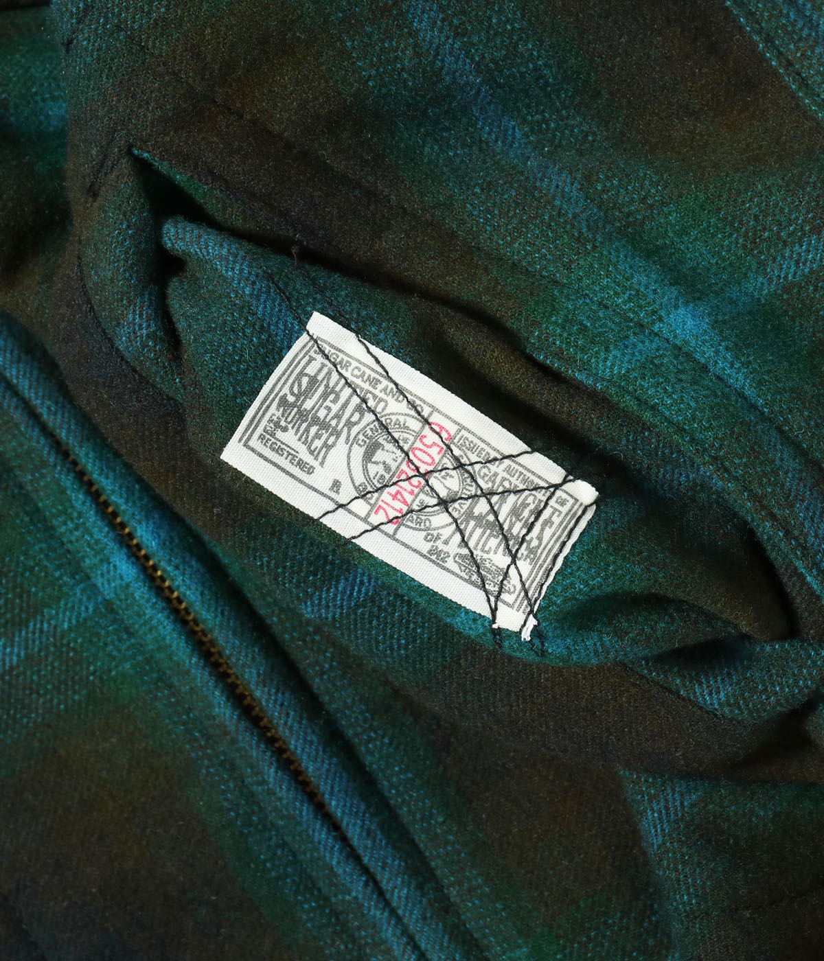1960년대의 PENDLETON 지퍼 재킷을 베이스로 하고 있습니다. 원래는 허리 길이였지만 입기 쉬운 엉덩이 길이로 디자인되었습니다. 오리지널보다 품질이 높은 고품질 Super 100s 원사를 사용하고 있어 착용감이 좋습니다. 요크, 칼라, 커프스 단추 및 플랩의 뒷면은 블랙 새틴 패브릭으로 전환됩니다.