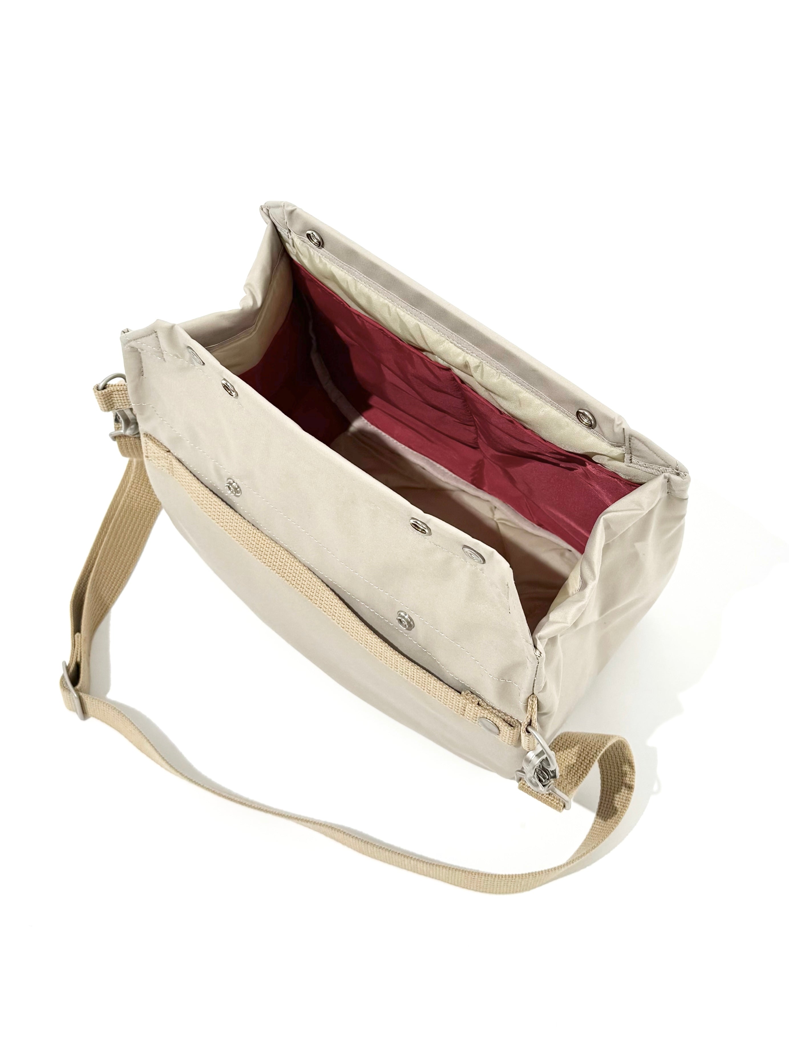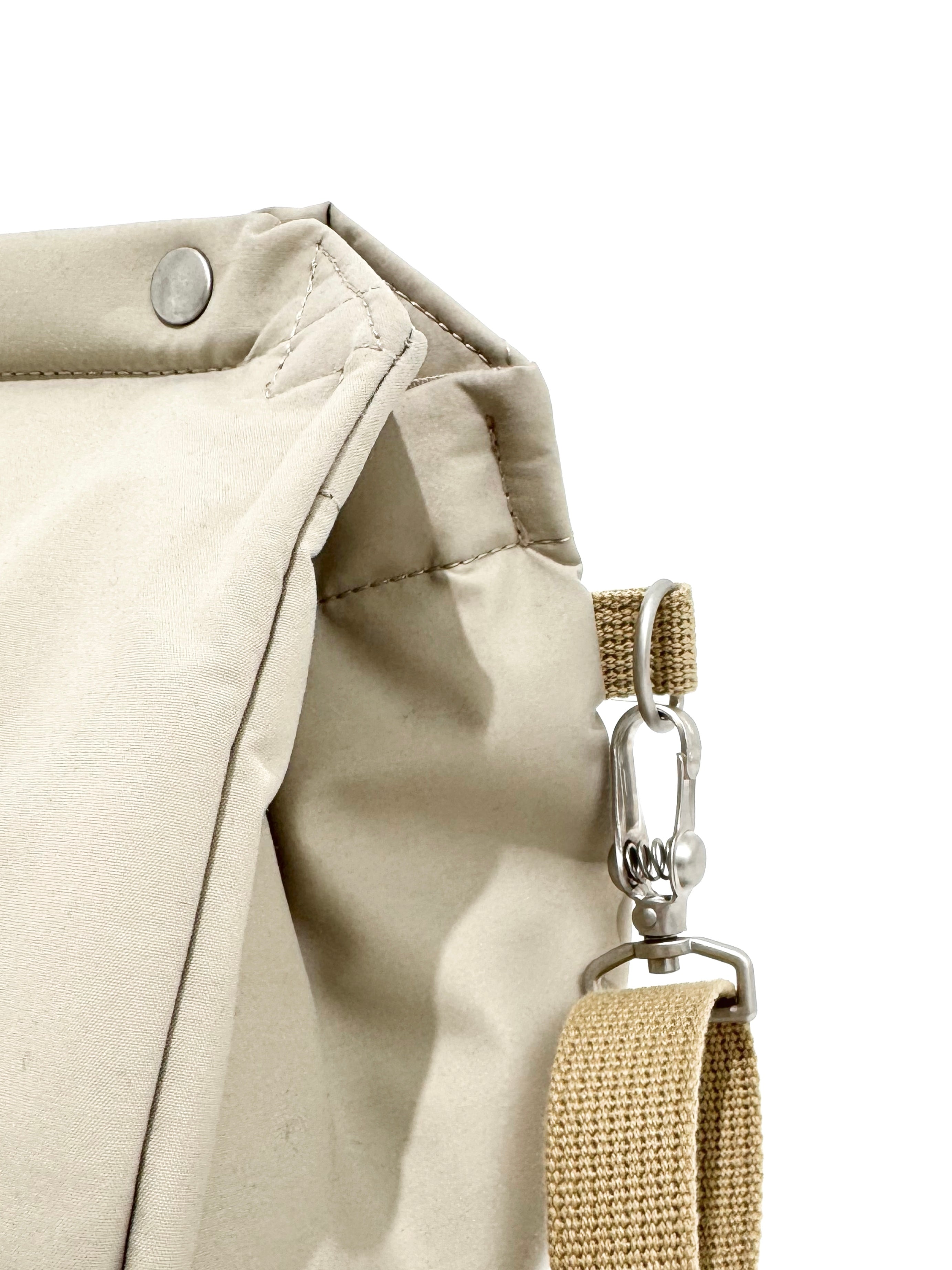 - 가방 상단을 접어서 스냅 버튼으로 고정하면, 비나 먼지의 유입을 막을 수 있는 구조입니다.