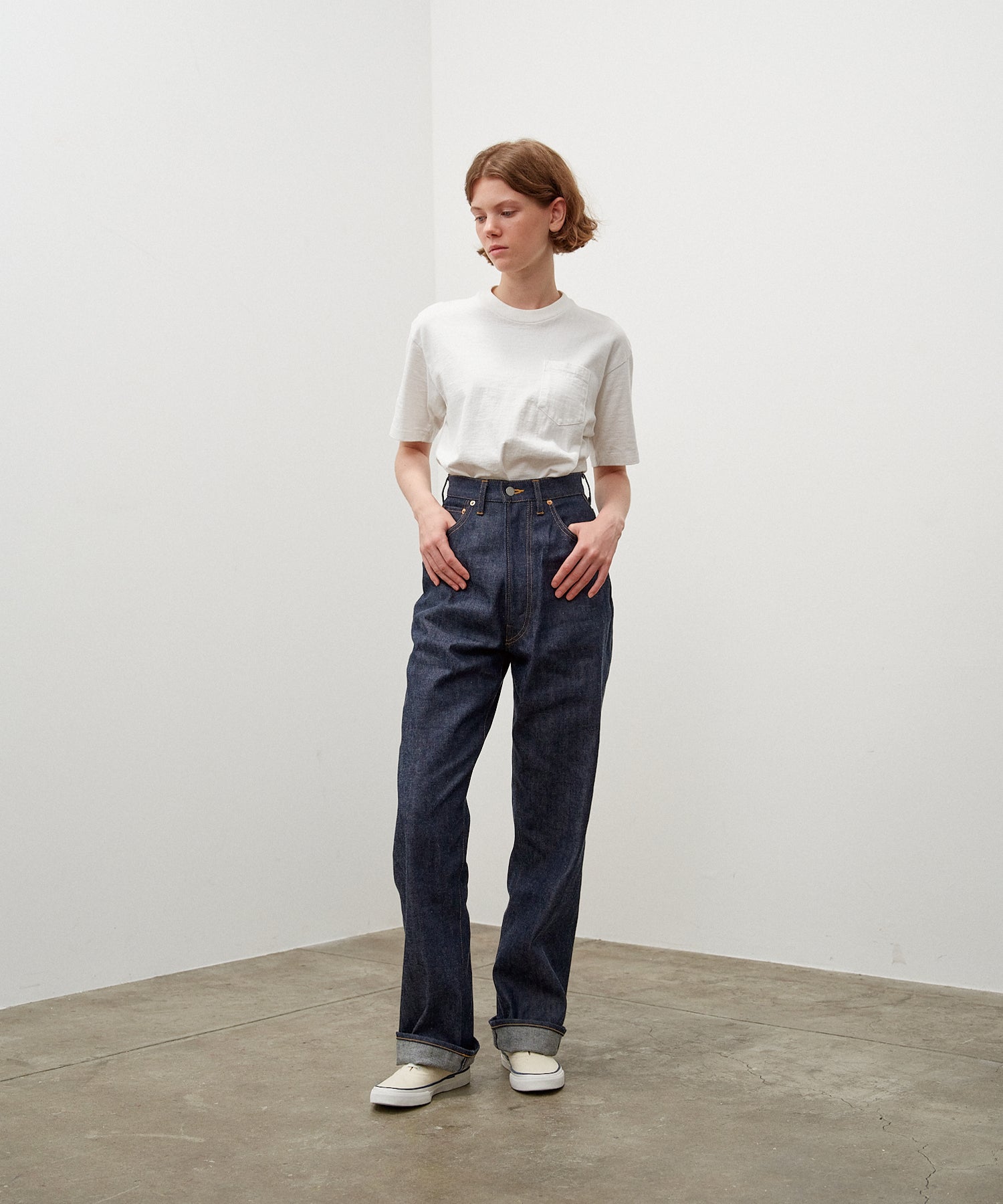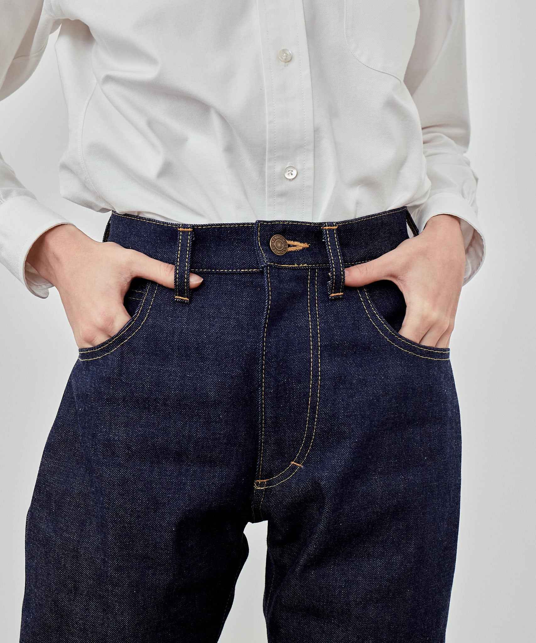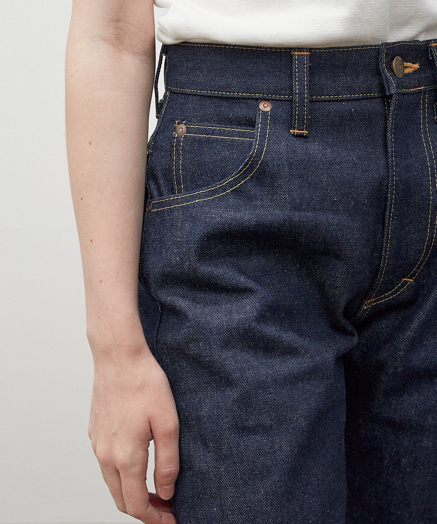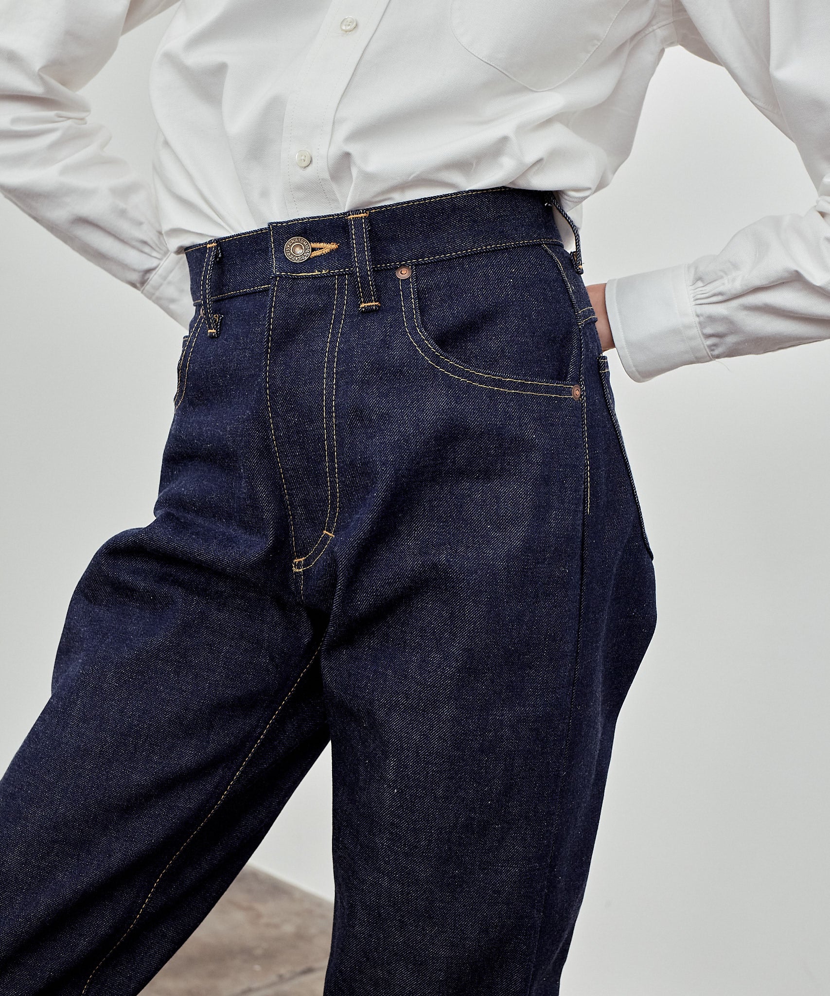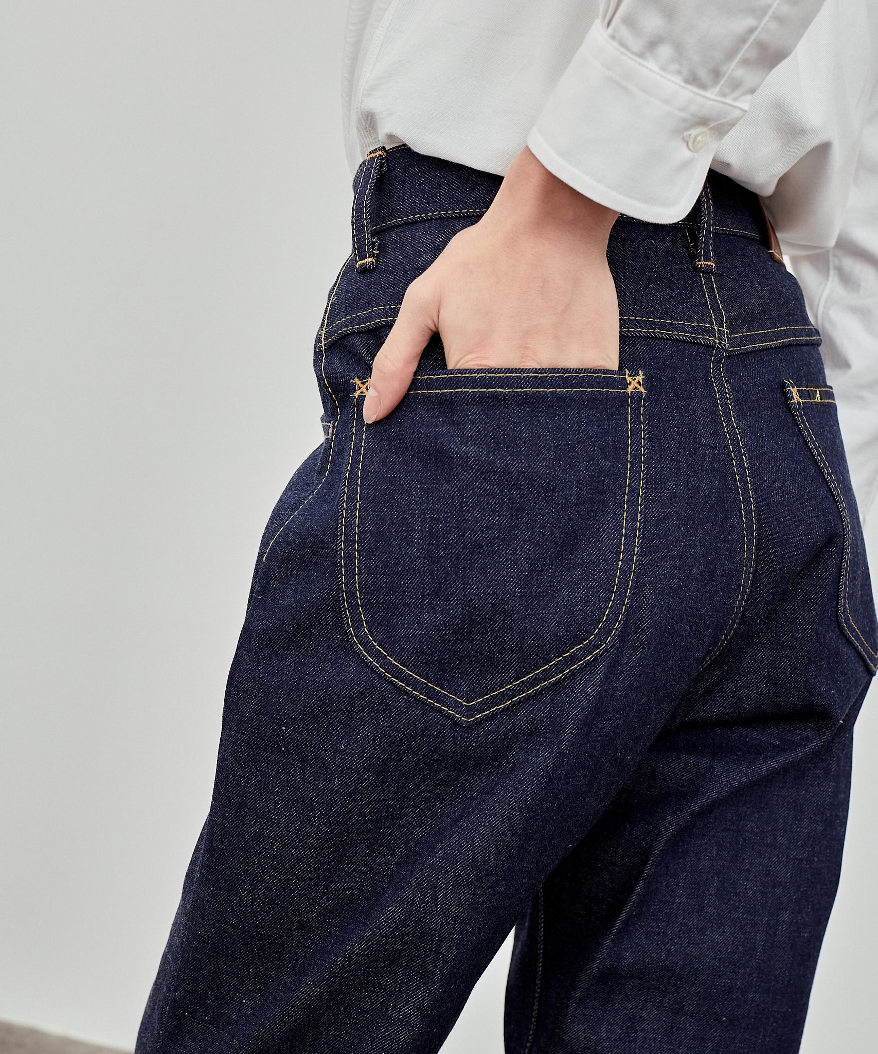마릴린 먼로가 사랑한 미국의 명품 팬츠를 디자인 모티브로, 뒷 주머니에 들어가는 다트가 청바지의 큰 특징입니다. 여성 특유의 둥근 엉덩이 라인을 강조하고 실루엣이 제대로 나오는 것이 마릴린 II의 가장 큰 매력이라고 할 수 있습니다. 원단은 13.5온스로 Marilyn I. Japan 데님보다 두껍고 단단합니다.