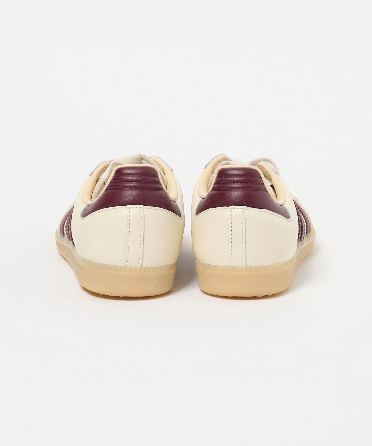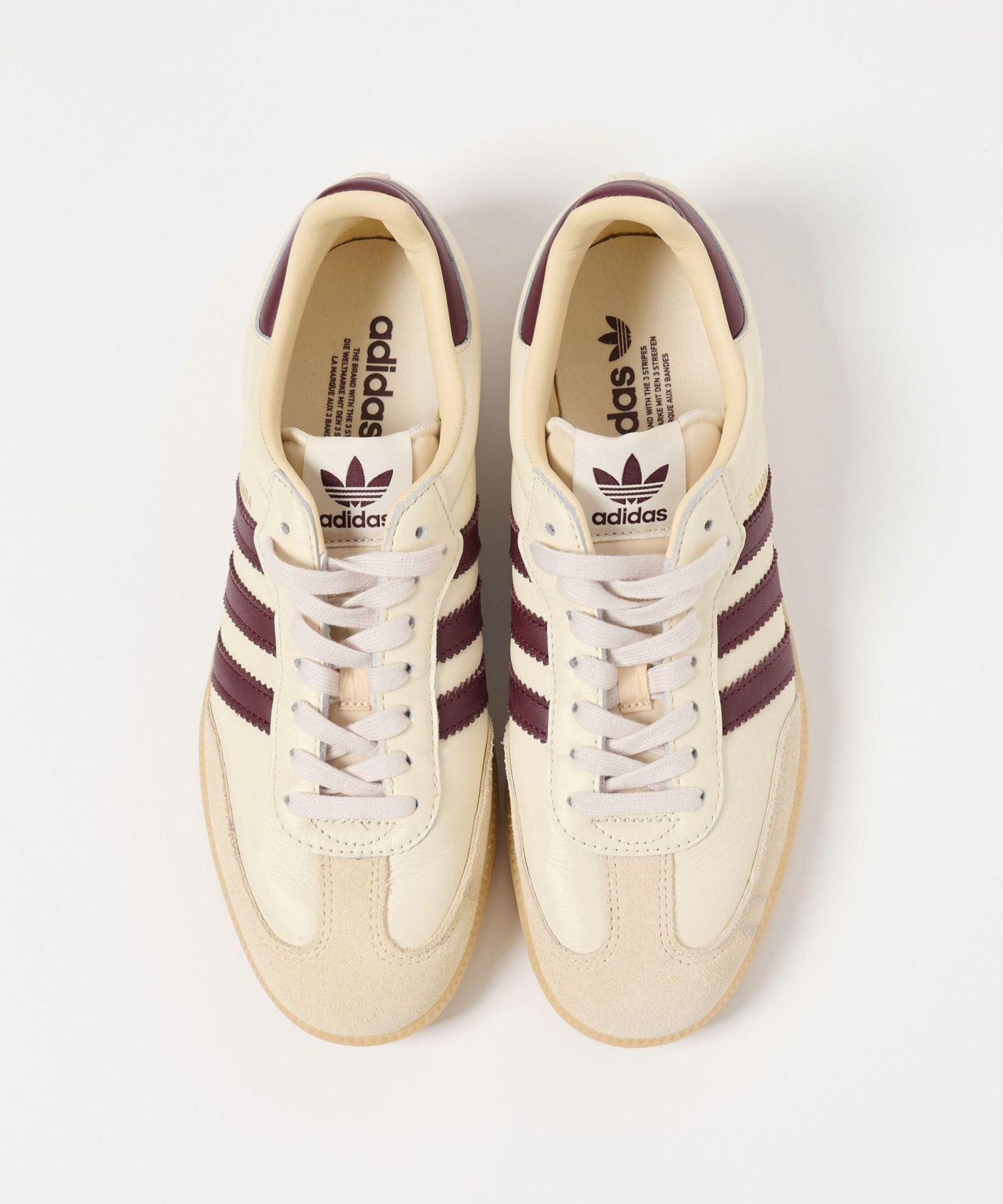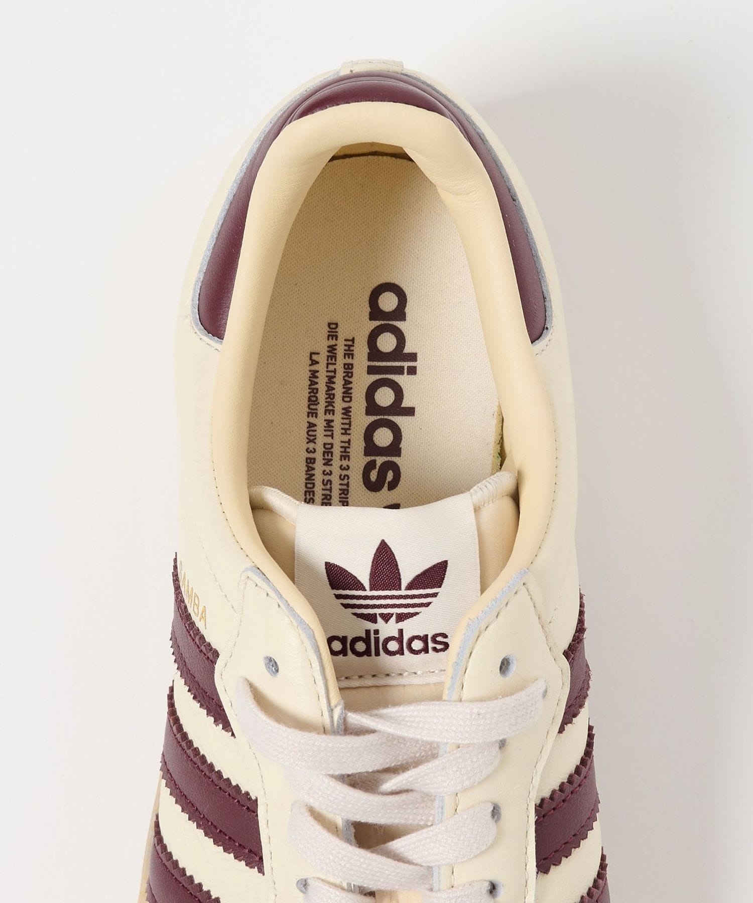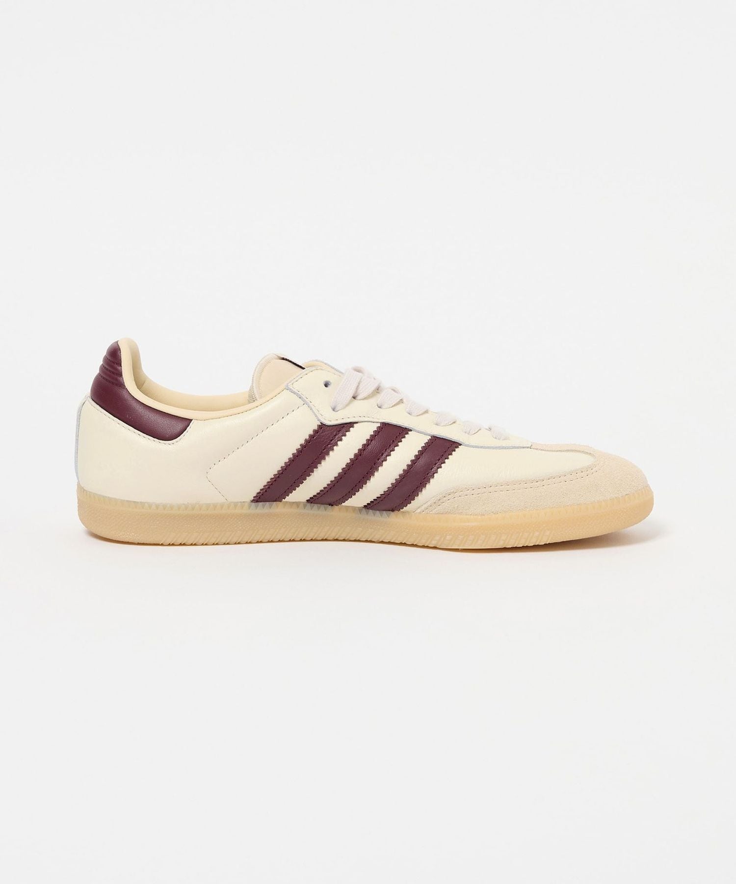 SAMBA OG는 오프화이트 컬러 베이스에 진한 레드 컬러의 쓰리 스트라이프가 더해진 디자인입니다. 토 부분에는 스웨이드 소재가 사용되어 포인트가 됩니다.