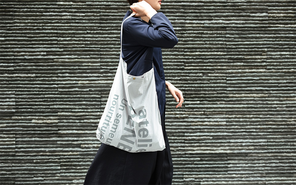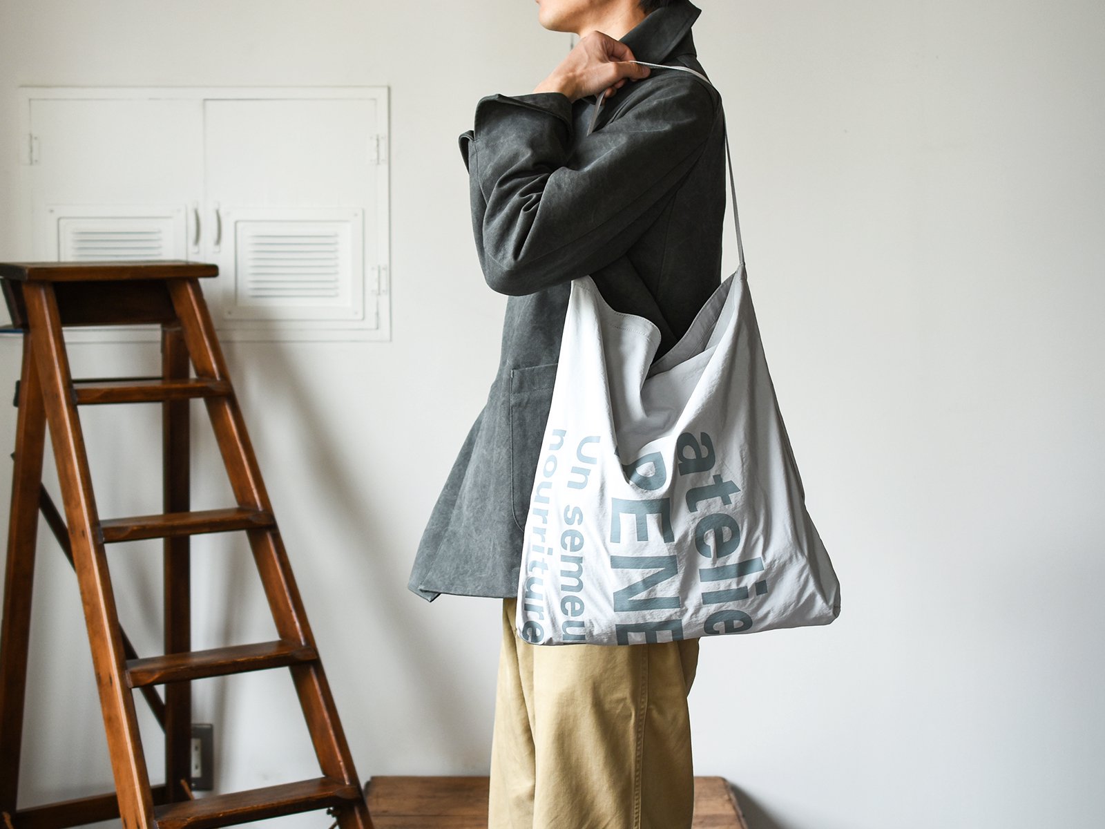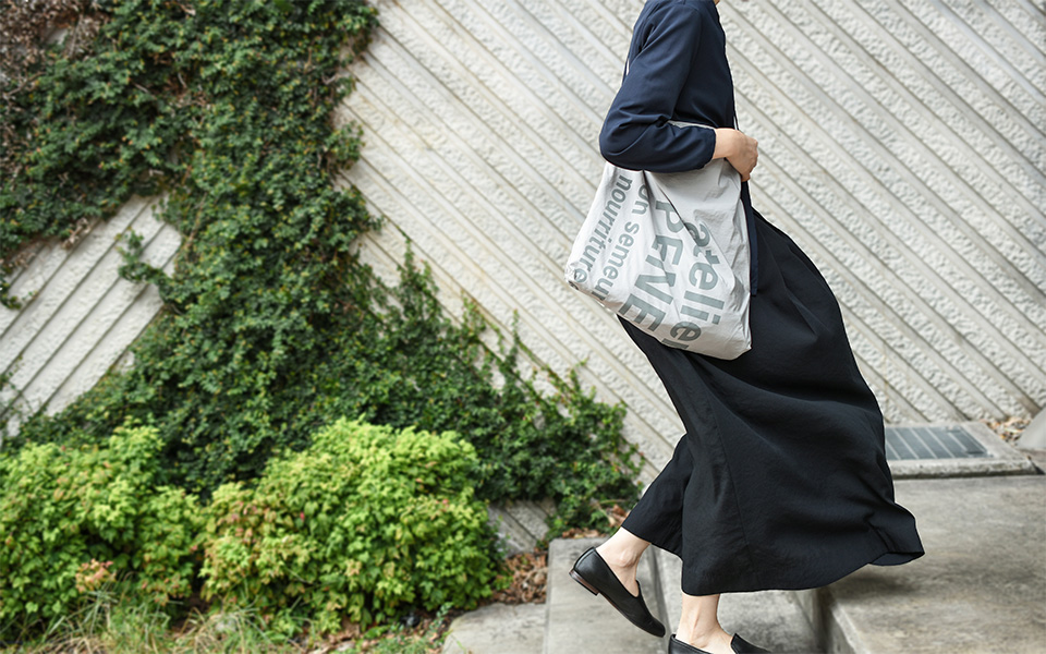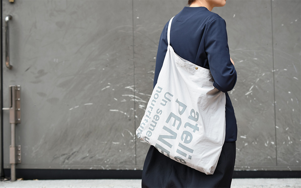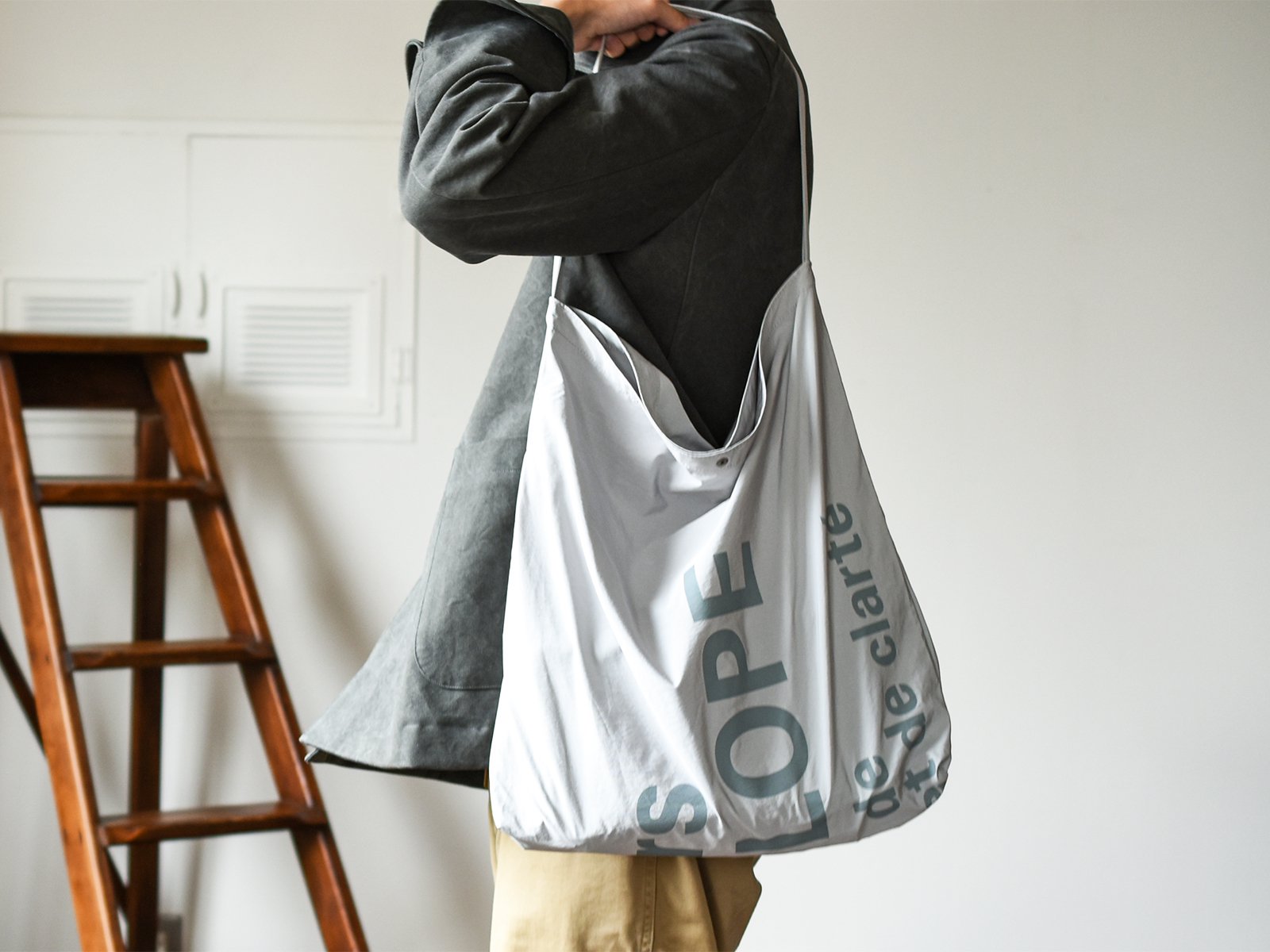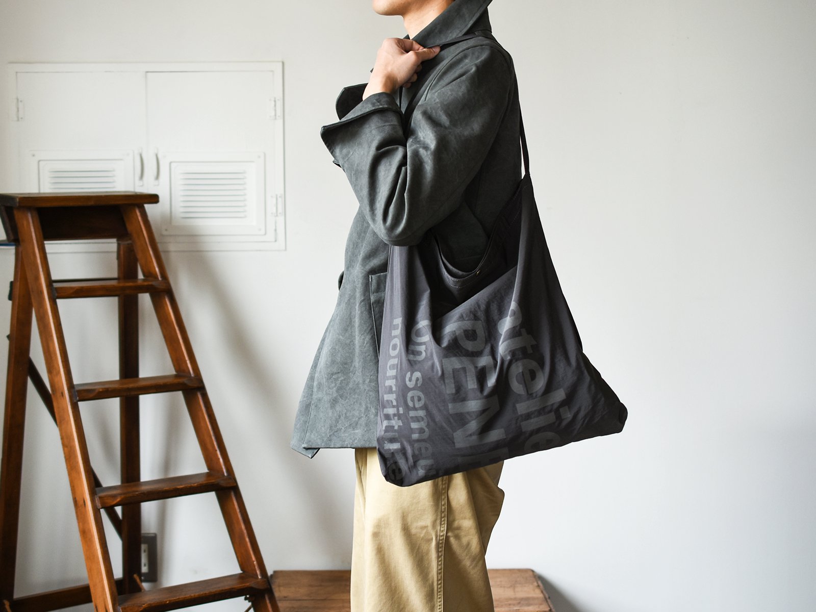적당한 신축성과 발수성을 겸비한 소재로 가볍고 주름이 잘 생기지 않아, 데일리는 물론 쇼핑백으로도 사용하기 좋은 가방입니다. 본체를 접는 사이드의 파우치 포켓에 수납하면 휴대도 편리합니다.