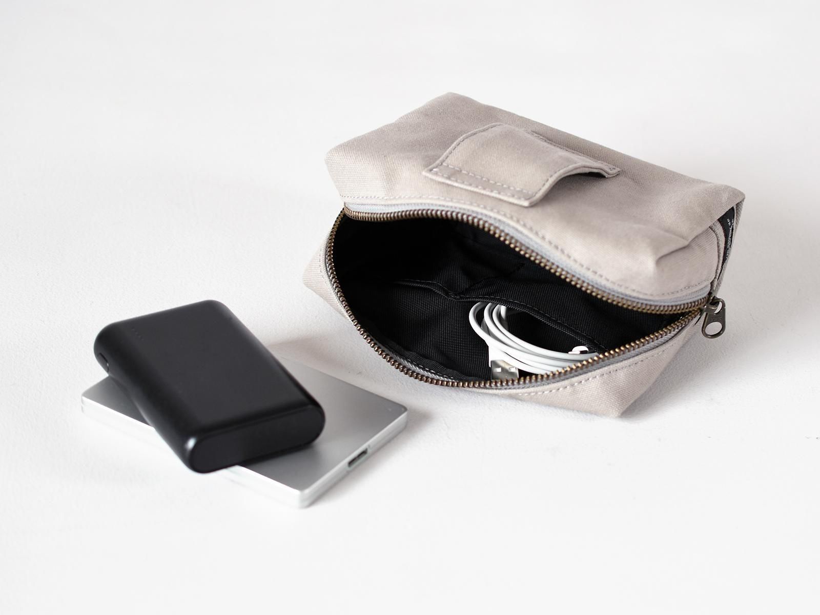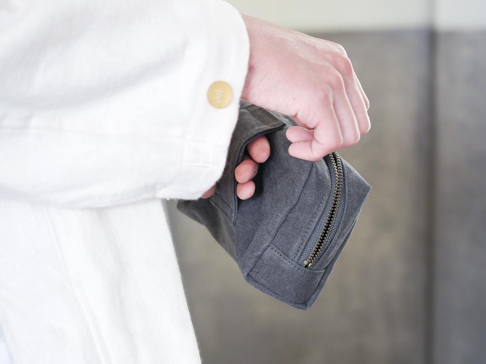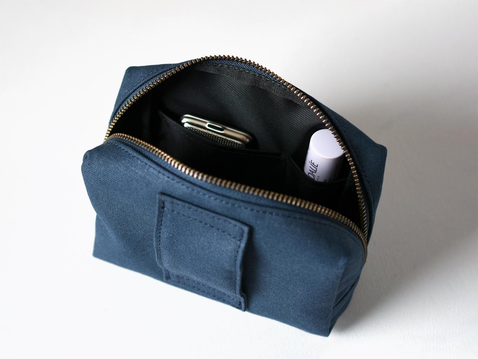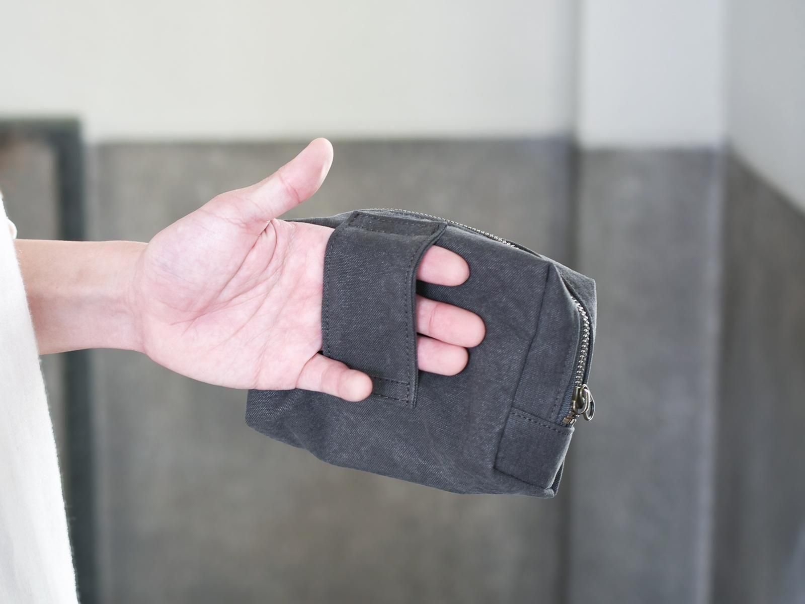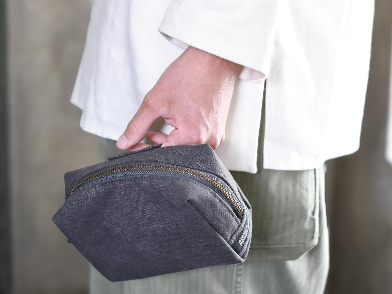 입체감 있는 실루엣 으로 완성된 멀티 유즈 캔버스 파우치 입니다.