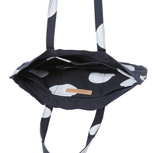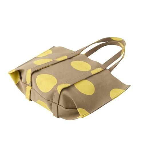 6호 코마사 캔버스 베이지 바탕에 큼직한 도트 프린트를 더하고, 세탁 가공을 통해 자연스러운 질감을 살렸습니다.