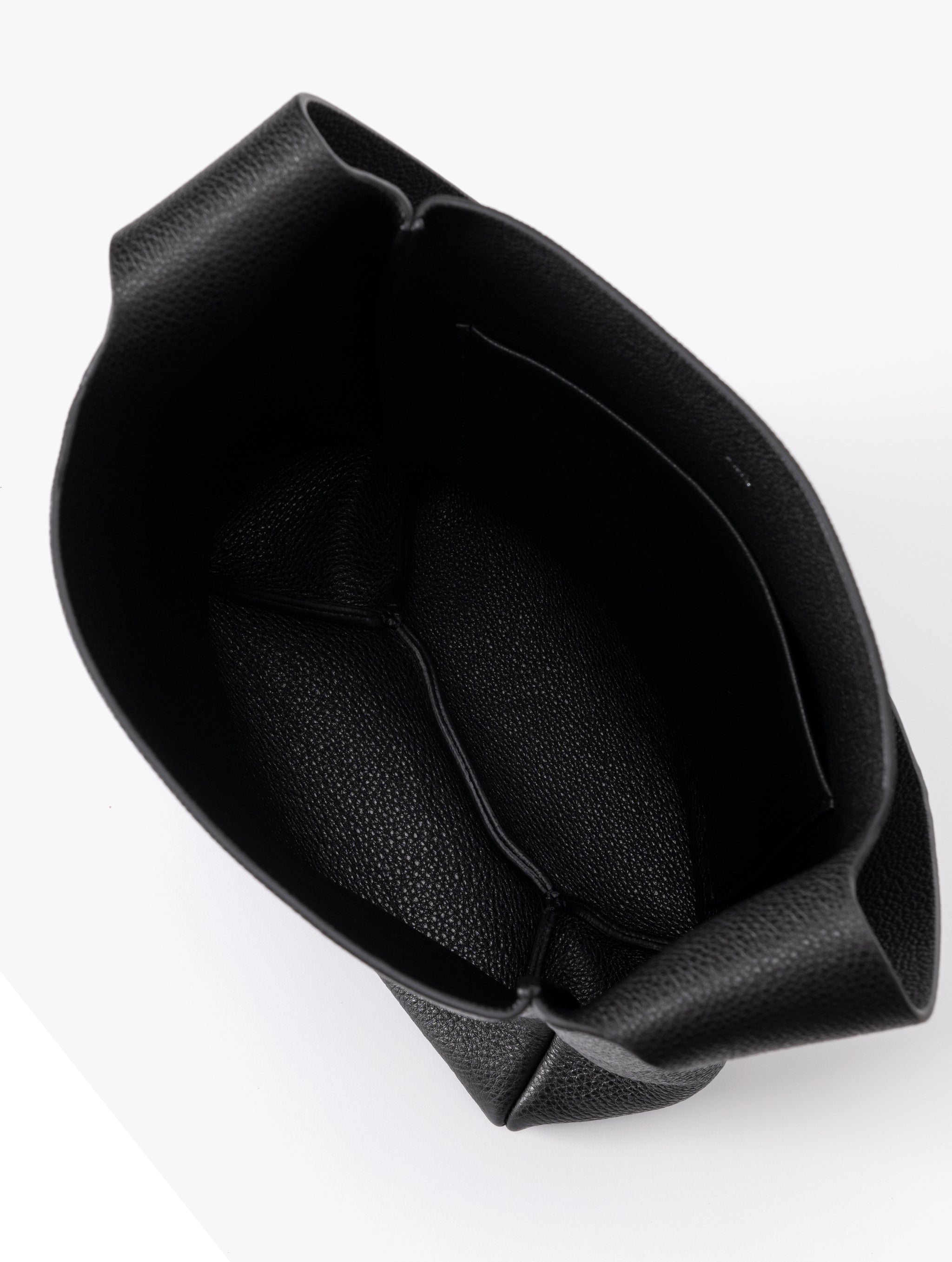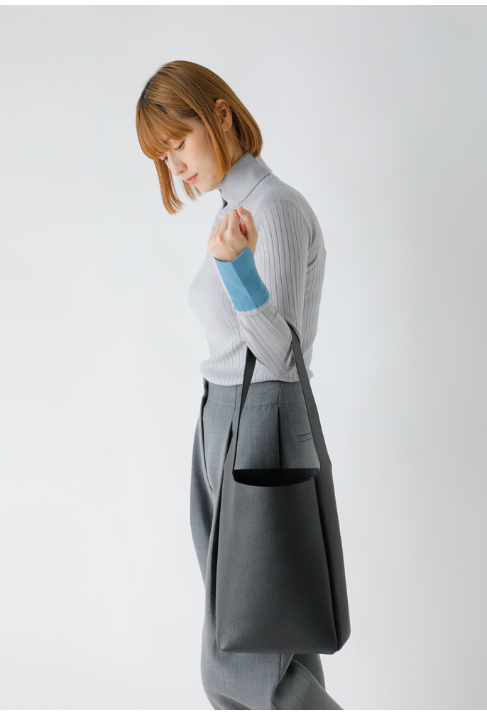 손잡이와 본체는 하나의 가죽으로 연결되어 있으며 약간 각진 형태가 특징입니다. 이너 포켓이 1개 있습니다.