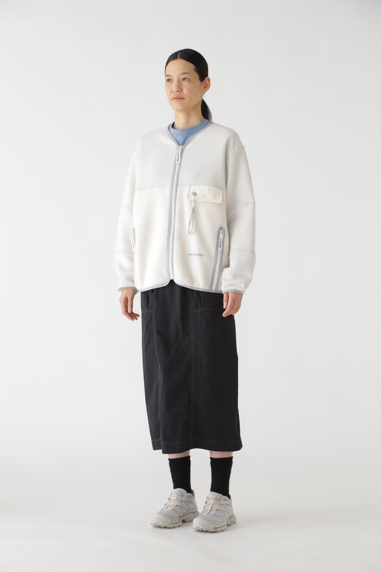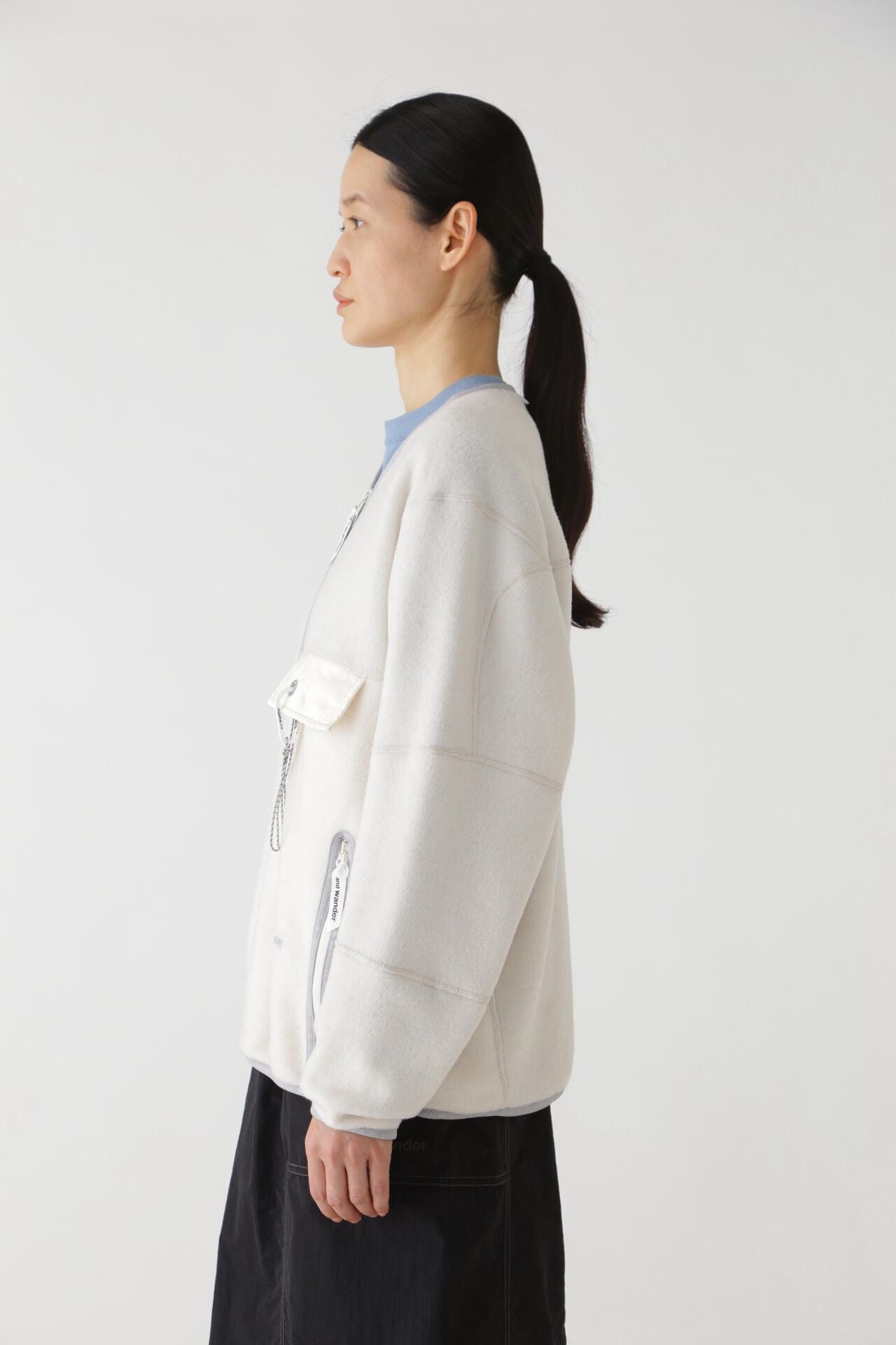 CALAMAI TECHNICAL FABRICS 울 플리스는 부드럽고 신축성이 있으며 보온성, 단열성 및 통기성과 같은 특성을 가지고 있습니다. 느긋한 실루엣의 지퍼 업 가디건입니다.