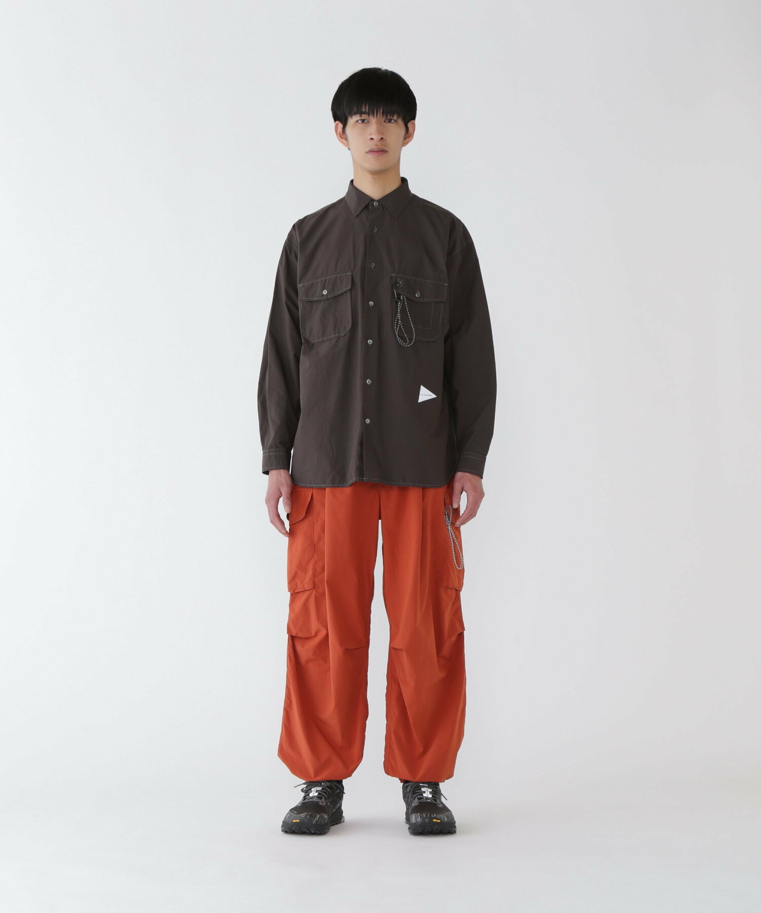 오가닉 코튼과 코듀라 나일론을 사용해 내구성이 뛰어난 셔츠. 백팩에 방해가 되지 않는 위치에 포켓이 있고 플랩에는 카라비나가 부속되어 있습니다.