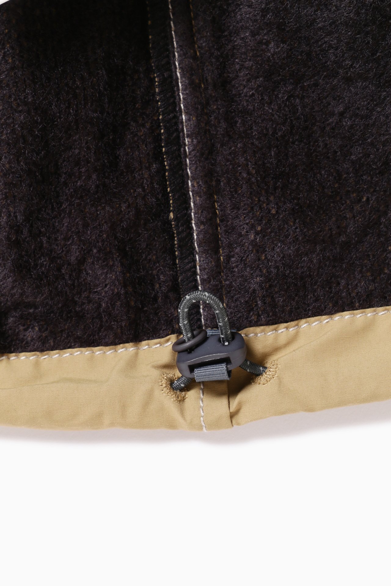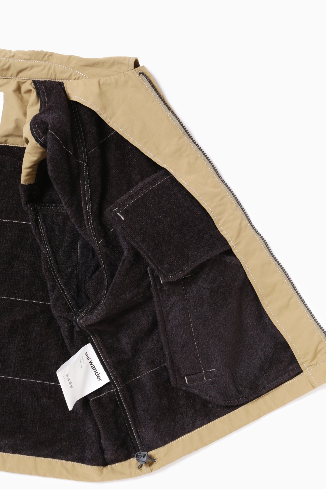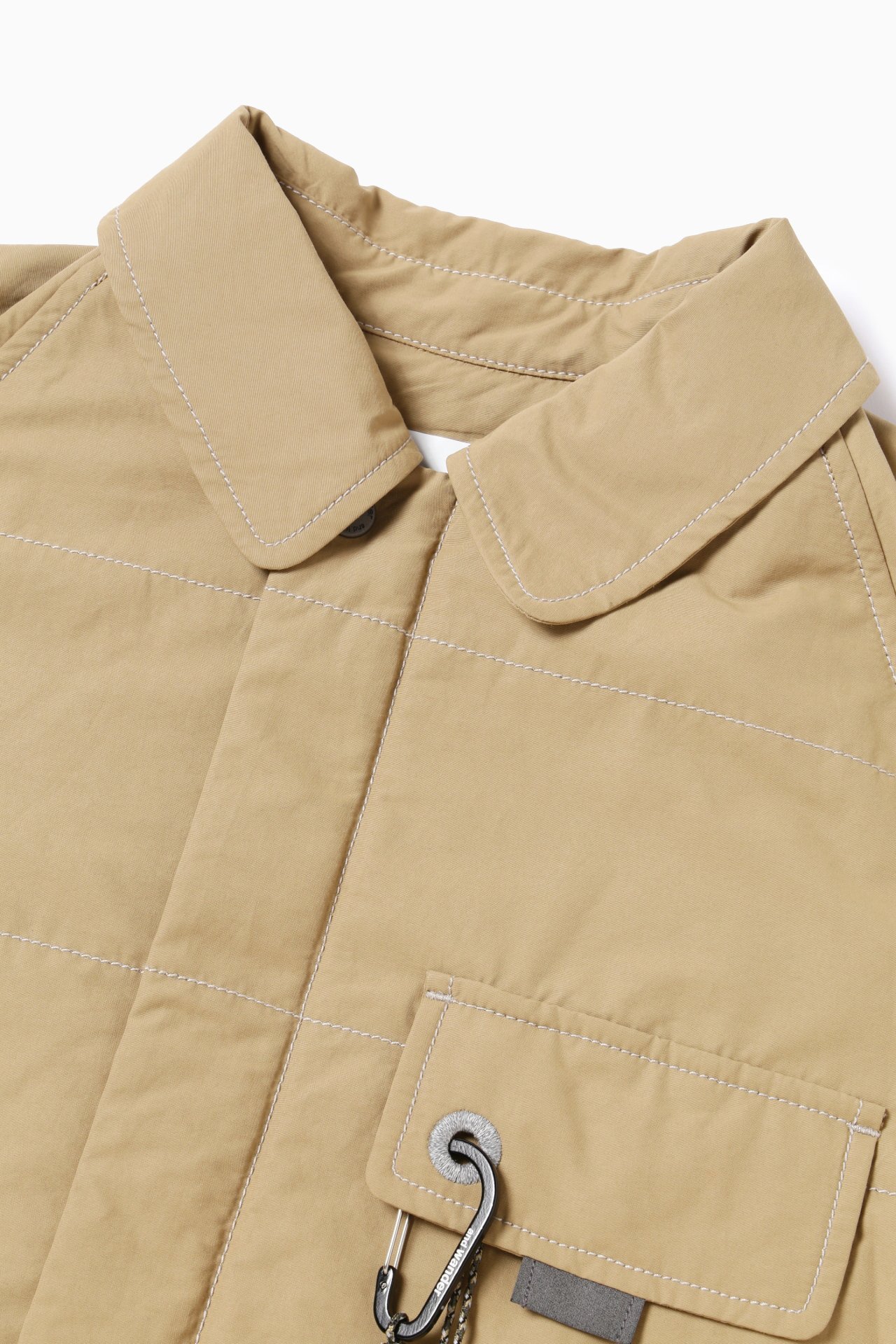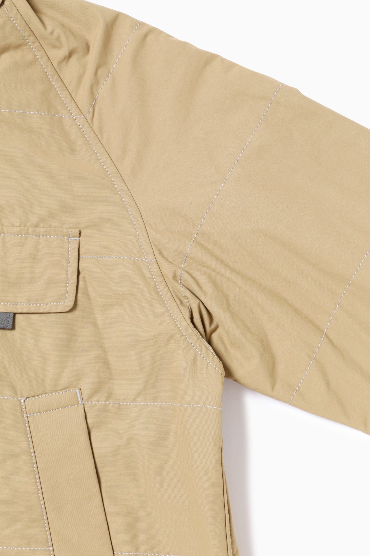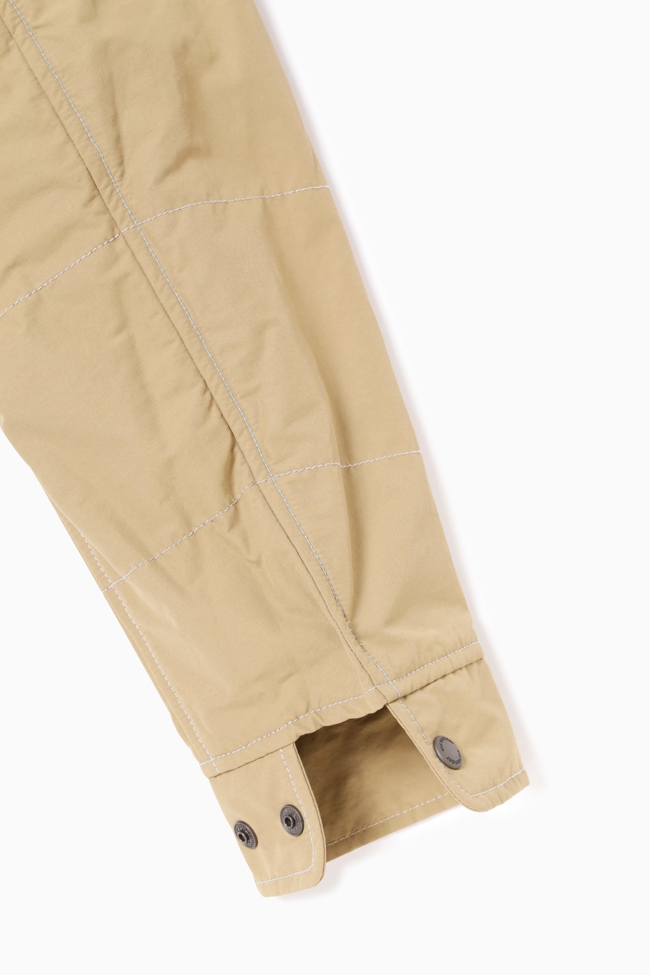경사에 나일론, 위사에 코튼을 사용한 고밀도 원단을 사용하여 구김이 잘 생기지 않습니다. 발수 가공 처리로 생활방수가 가능합니다. 안감에 옥타 소재를 사용하여 가볍고 보온성이 있습니다.