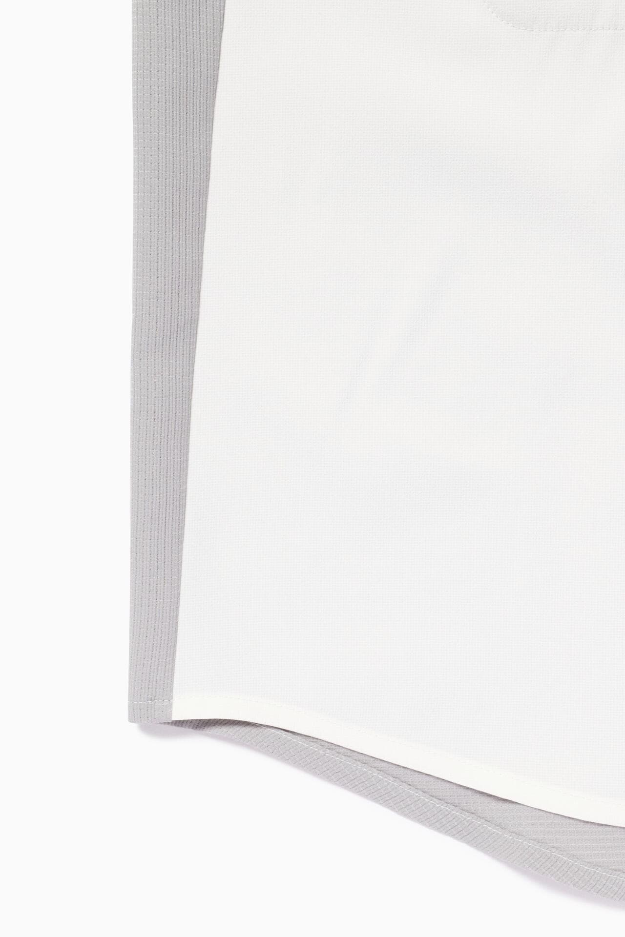 신축성, 자외선 차단성을 갖춘 마이크로 화이버로 제작되었습니다. 편안함을 위해 래글런 라인에 매끄럽게 테이프 마감 처리 되었습니다. 수분 흡수를 위해 부분적으로 메쉬원단을 사용했으며 주며니 입구에 반사 테이프를 사용했습니다.