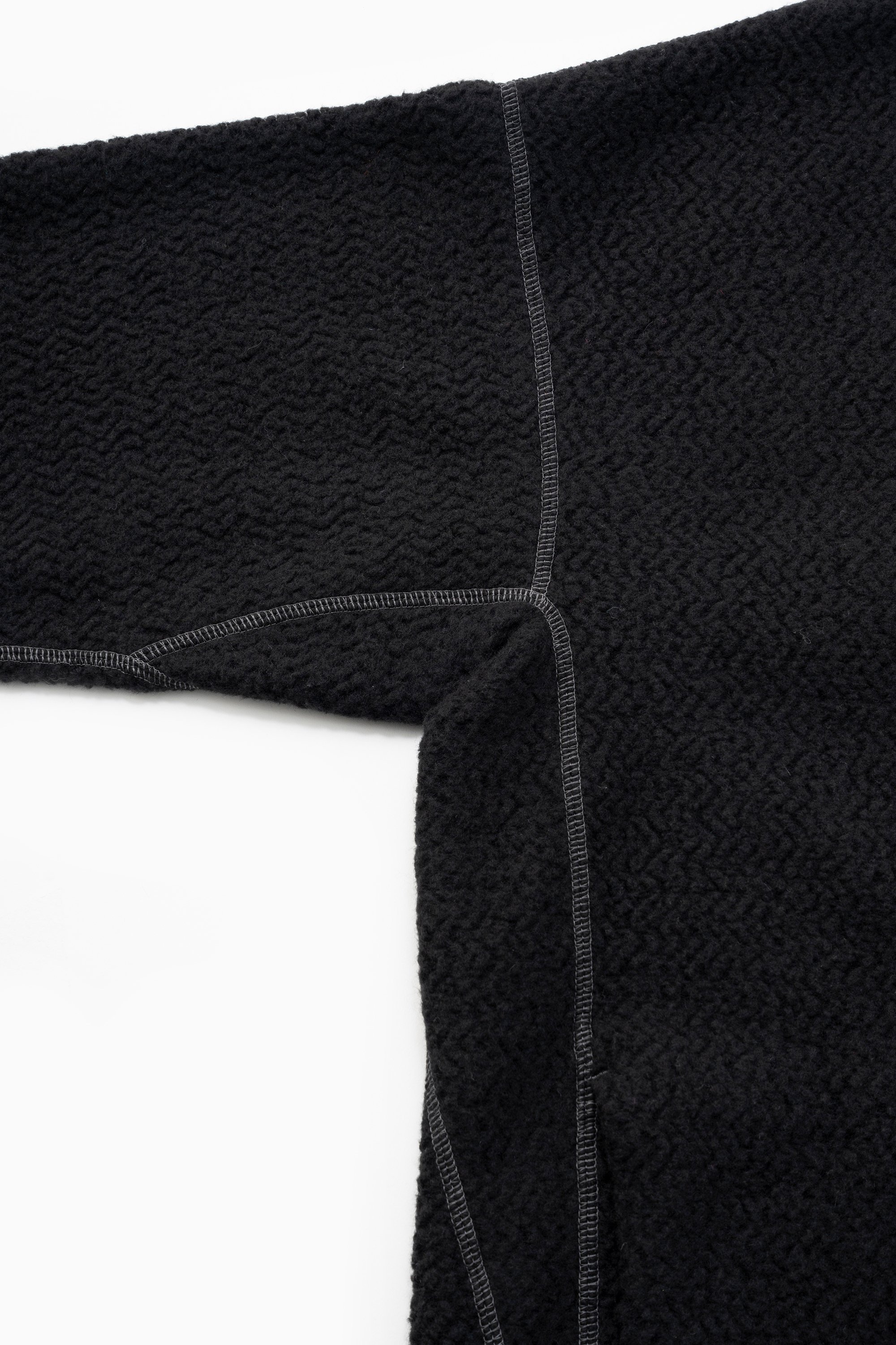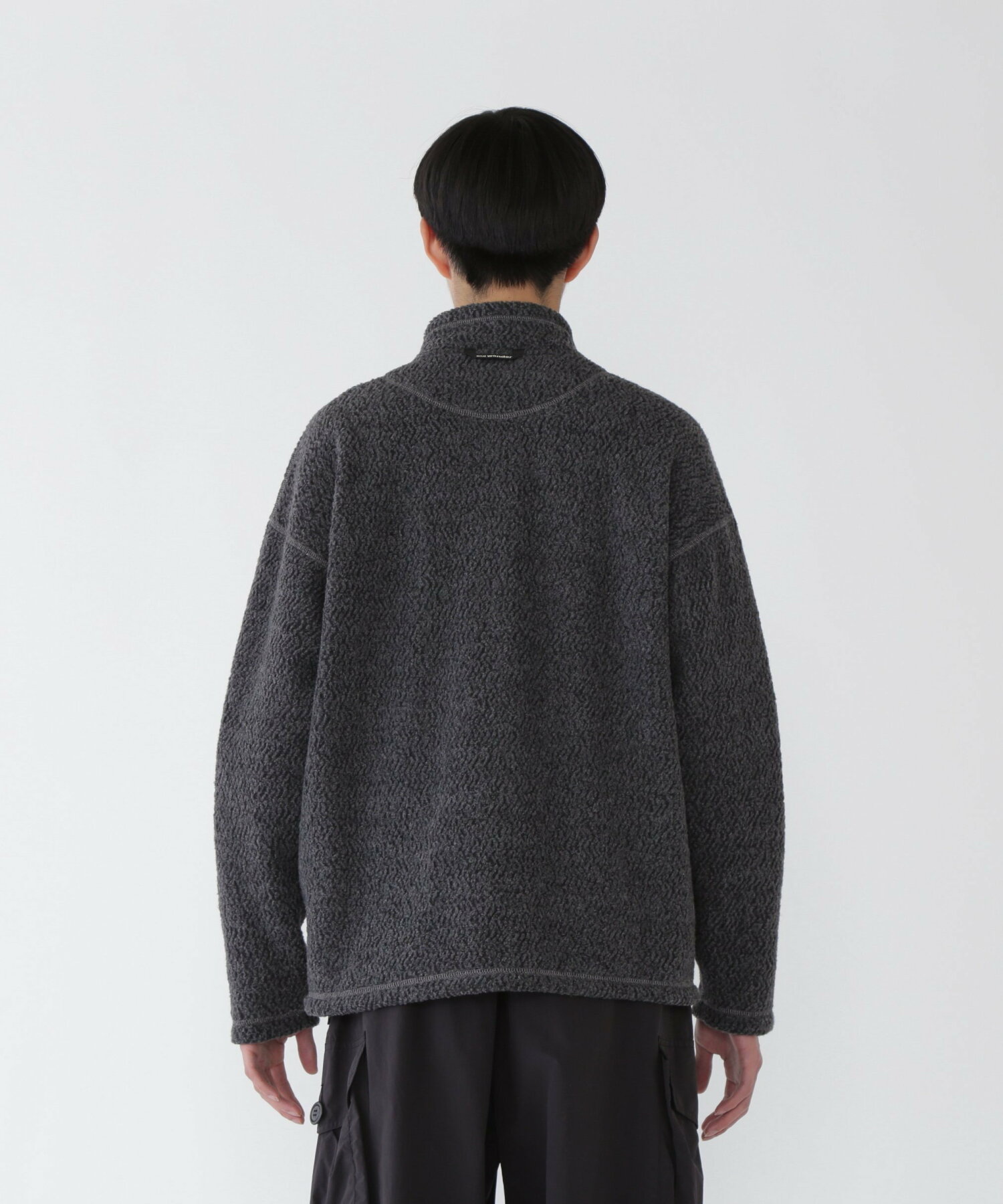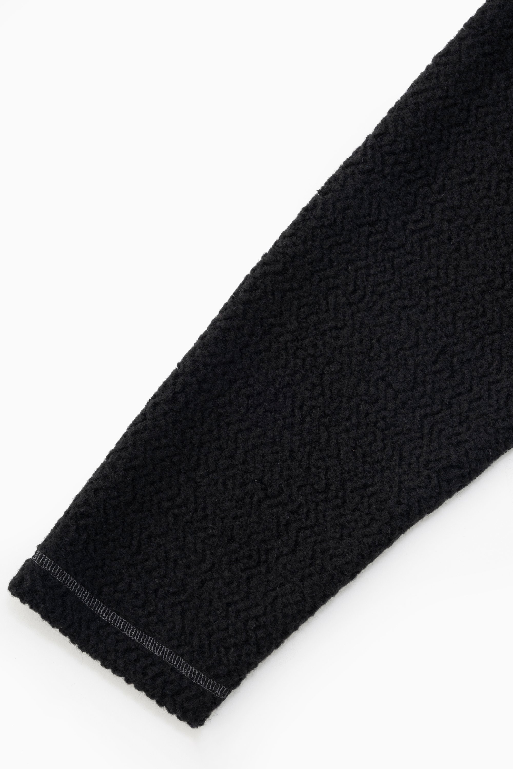 CALAMAI TECHNICAL FABRICS 울 자카드는 울, 나일론, 폴리에스테르의 재활용 혼방으로 입체적으로 편직되어 가볍고 따뜻합니다.