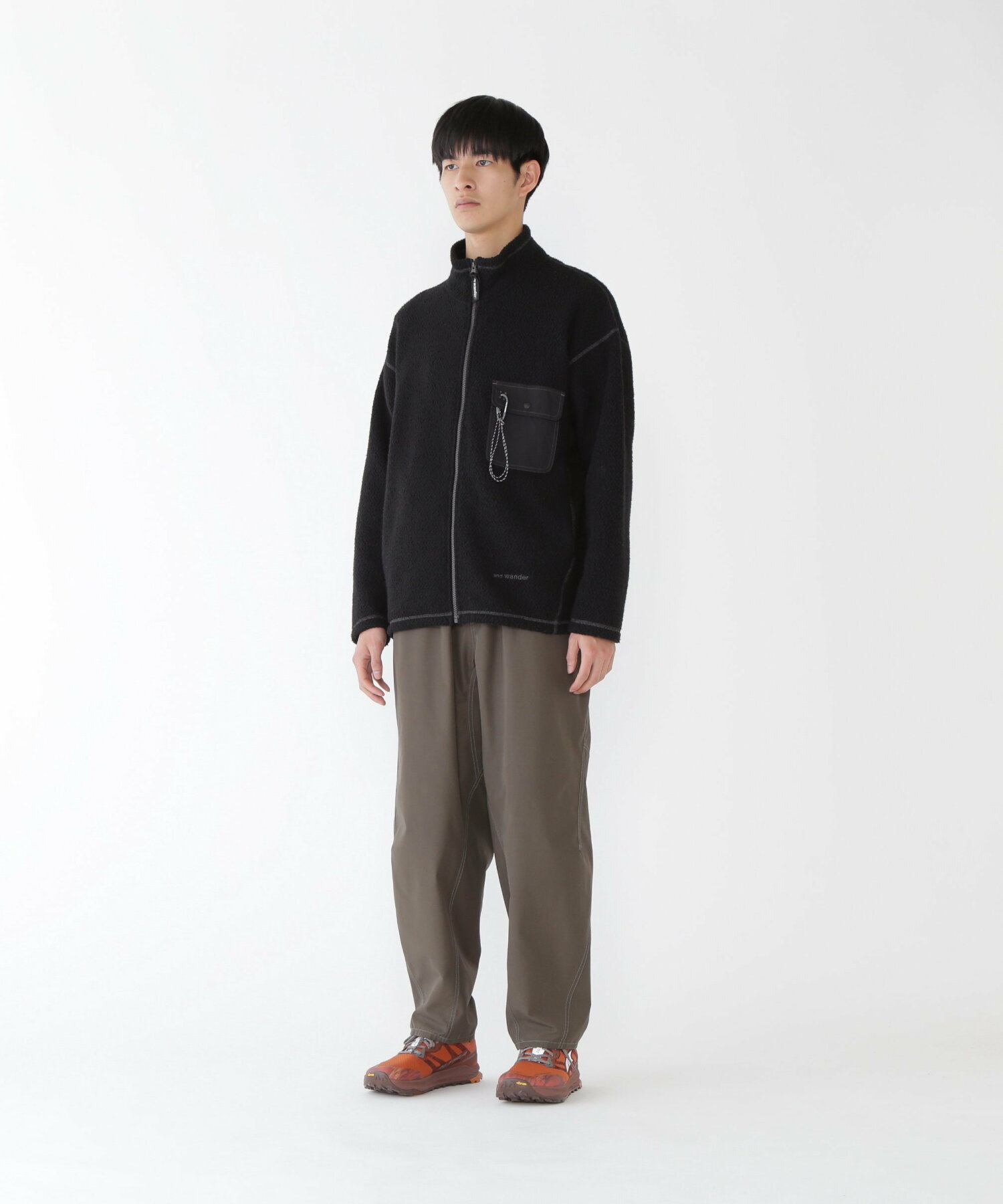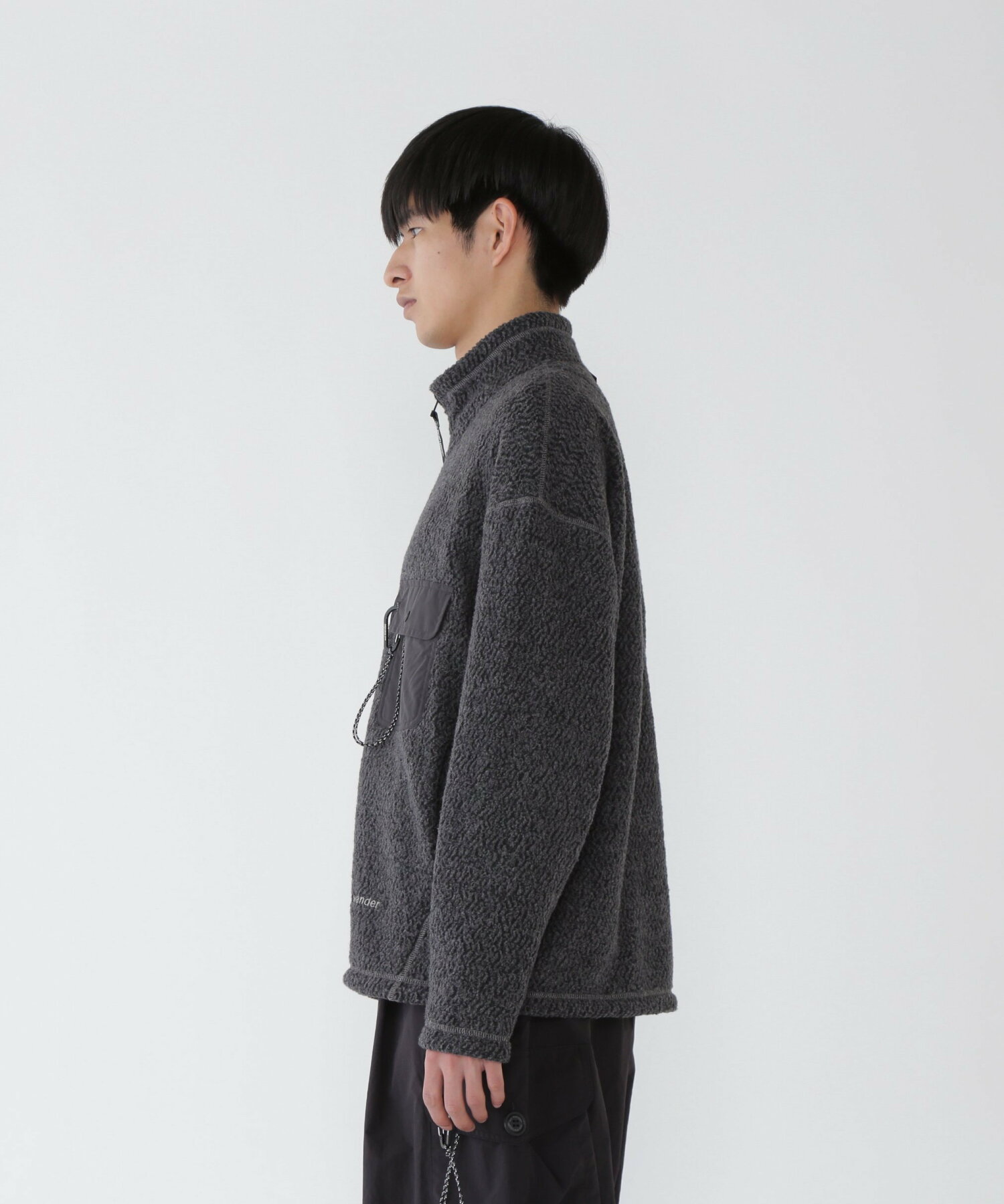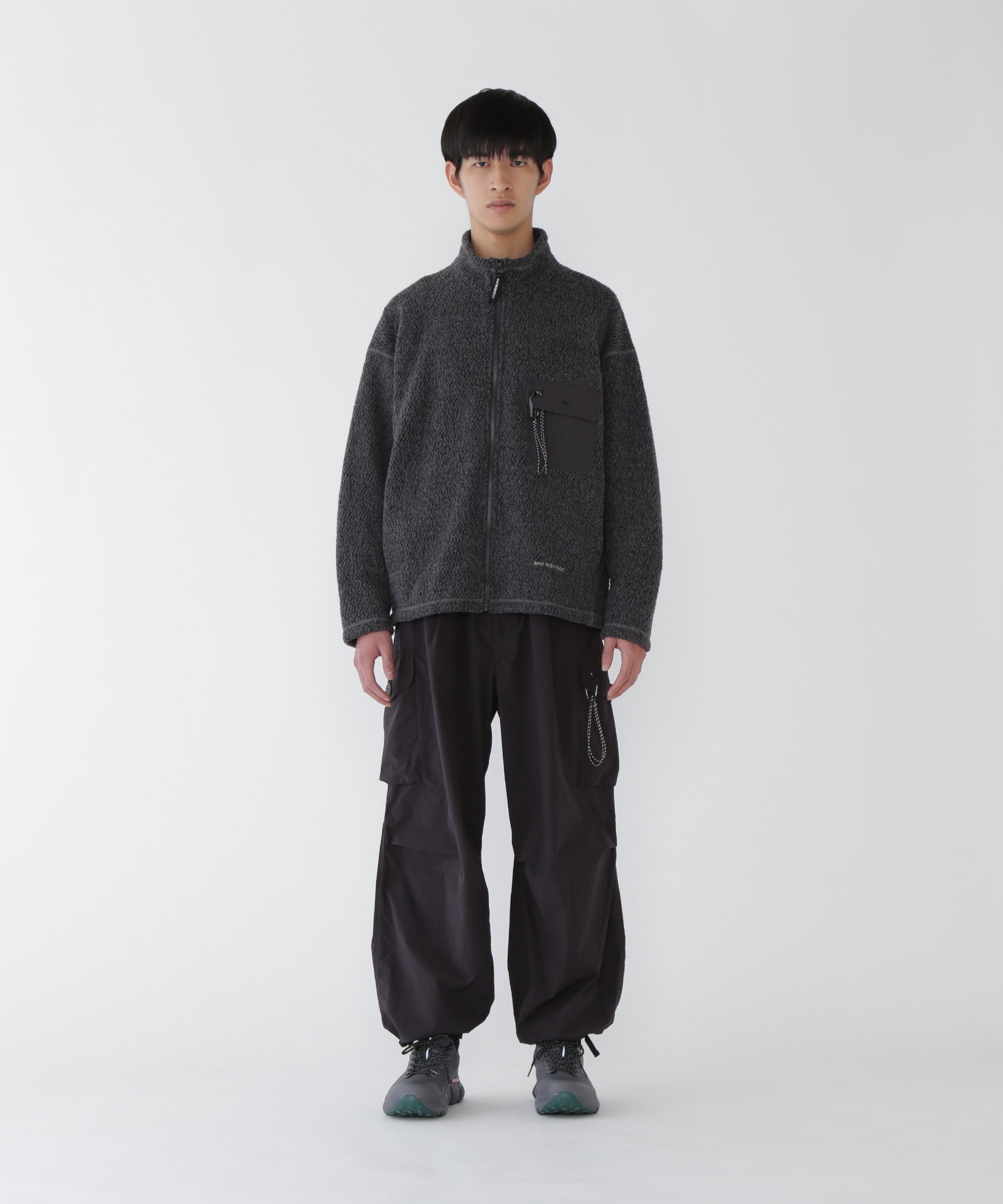 CALAMAI TECHNICAL FABRICS 울 자카드는 울, 나일론, 폴리에스테르의 재활용 혼방으로 입체적으로 편직되어 가볍고 따뜻합니다.