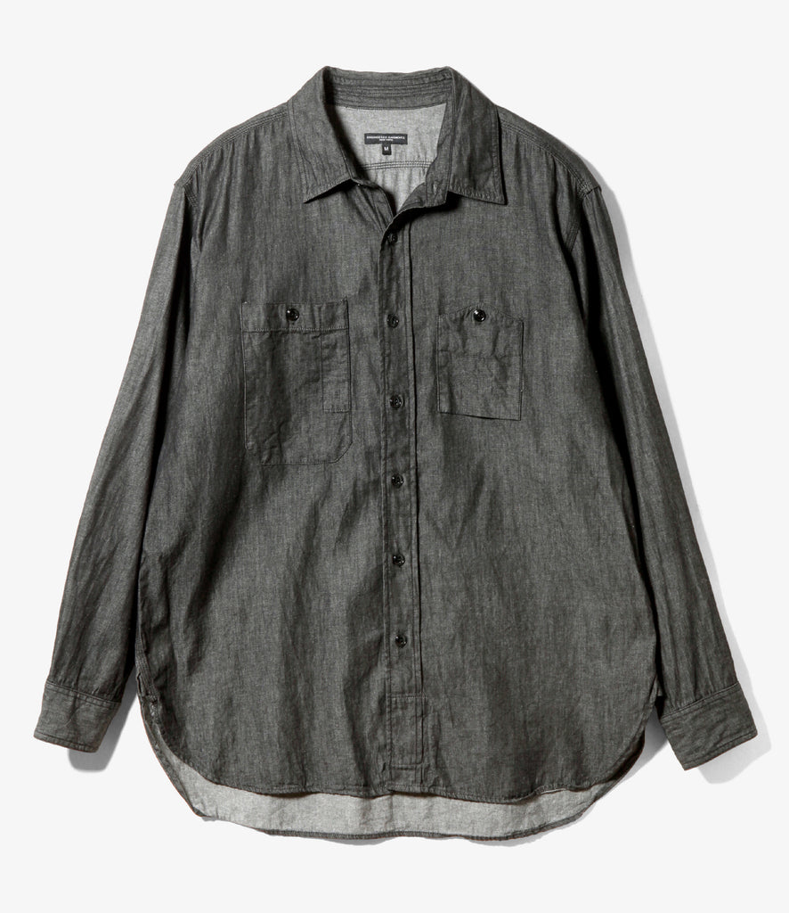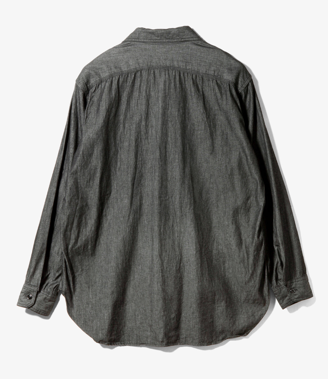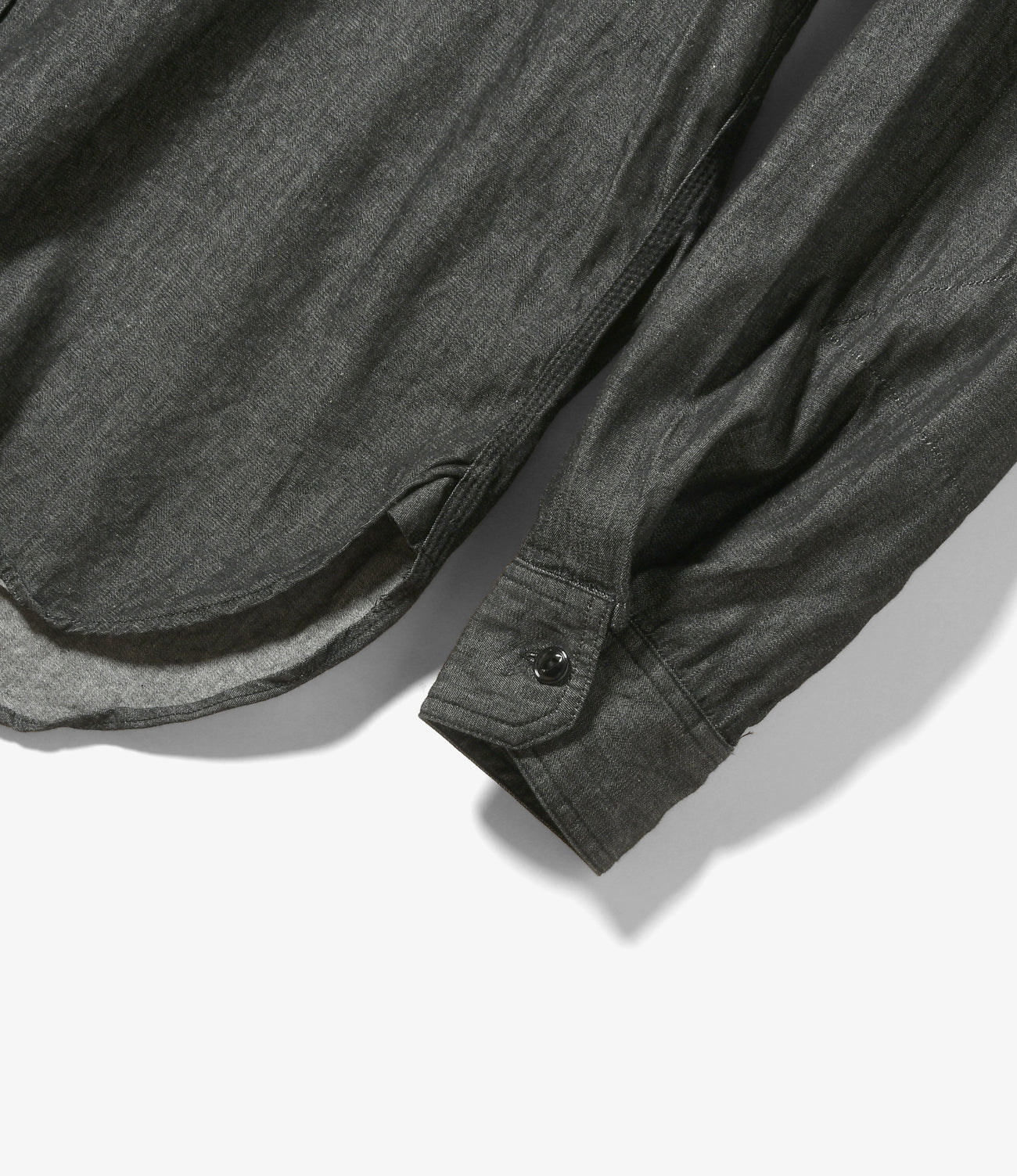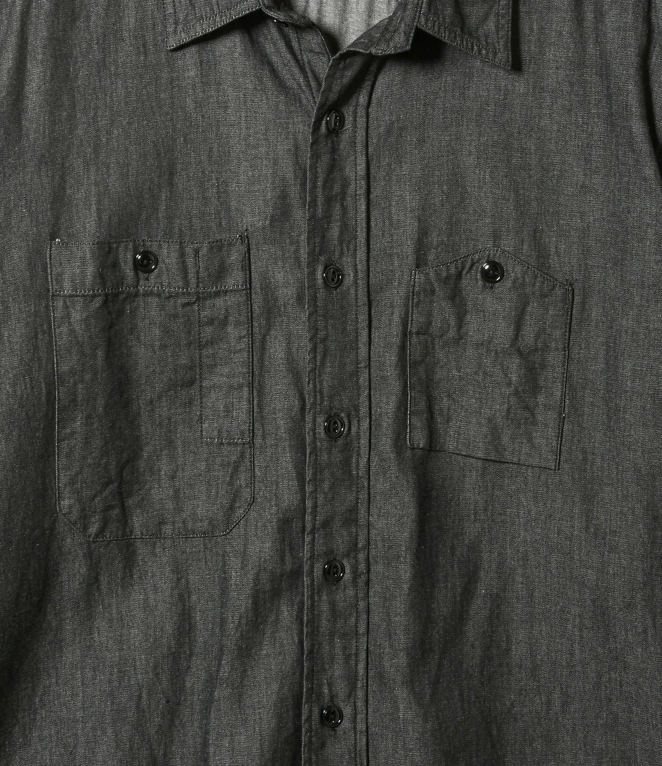 좌우 비대칭의 가슴 포켓(산형 포켓 & 펜꽂이 포함), 팔꿈치 보강 패치, 빈티지 셔츠에서 볼 수 있는 고양이 눈 모양 버튼 등 다양한 디테일을 적용했습니다.