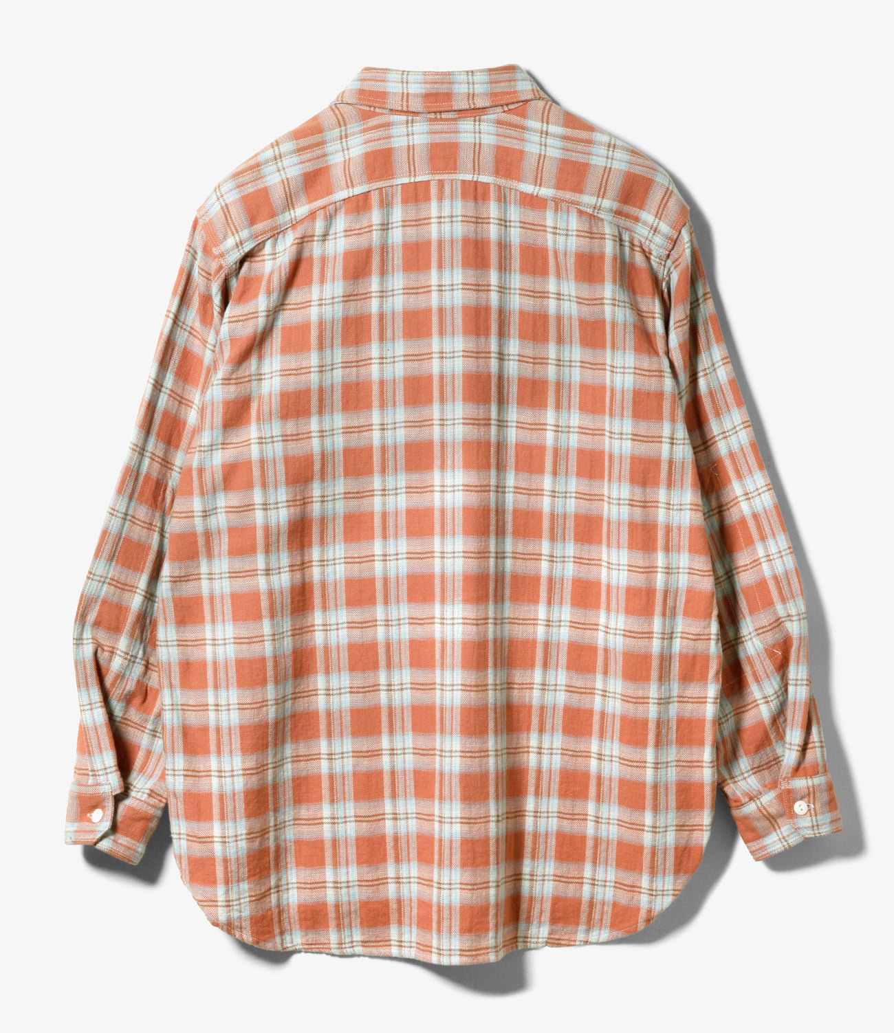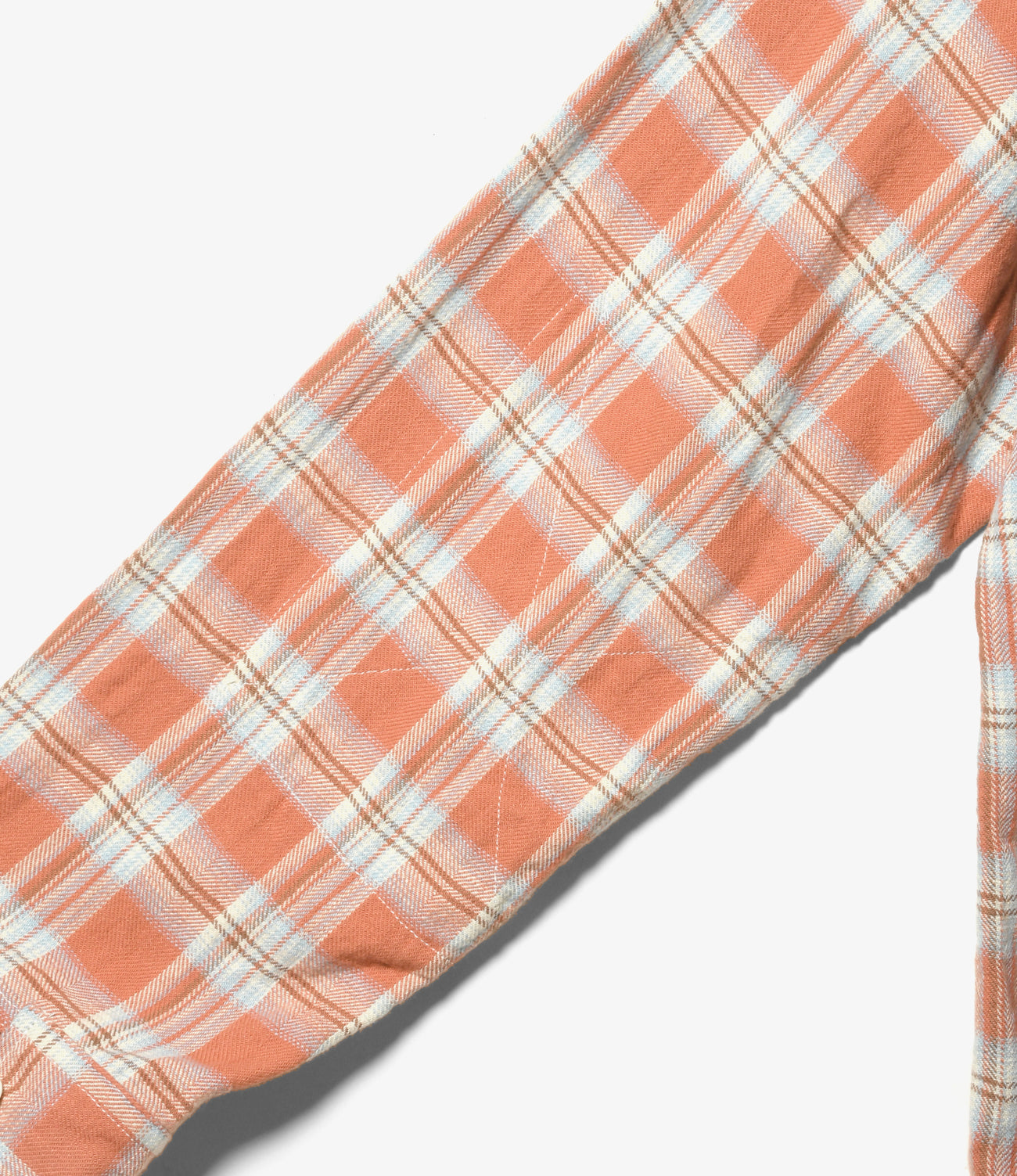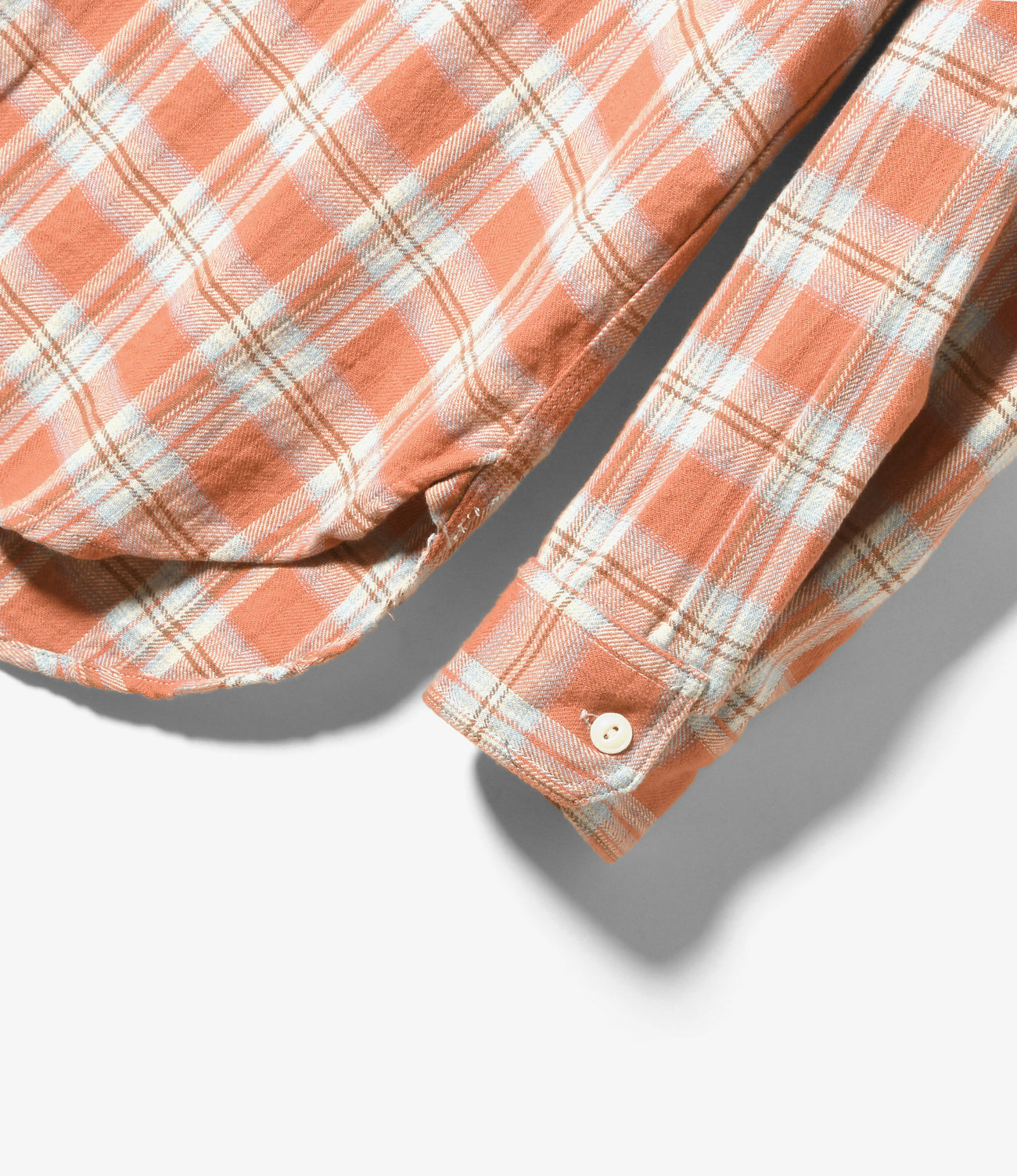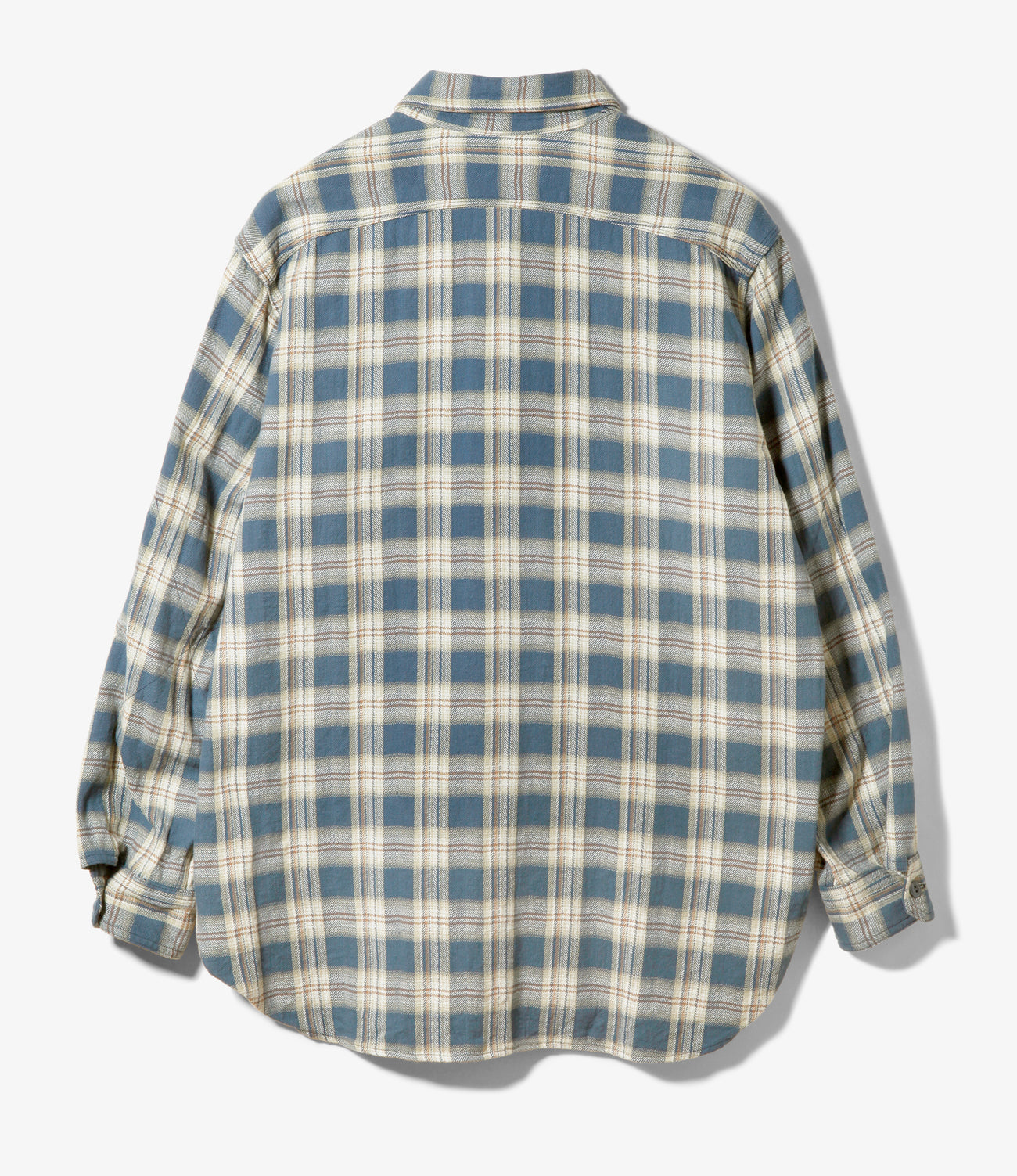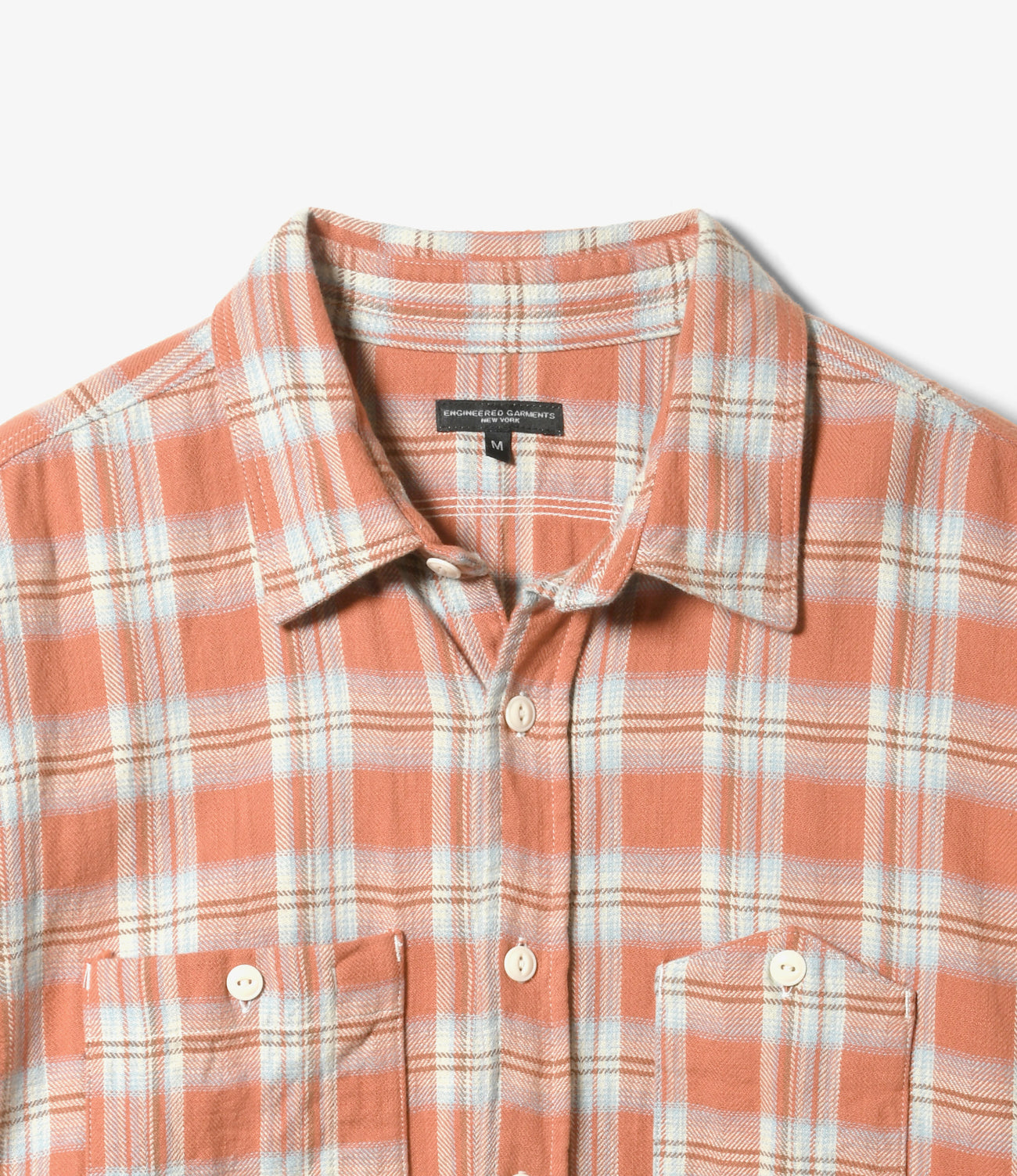 좌우 비대칭의 가슴 포켓, 팔꿈치 보강 원단, 빈티지 셔츠에서 볼 수 있는 고양이 눈 모양 버튼 등 디테일이 살아있는 디자인이 특징입니다.
