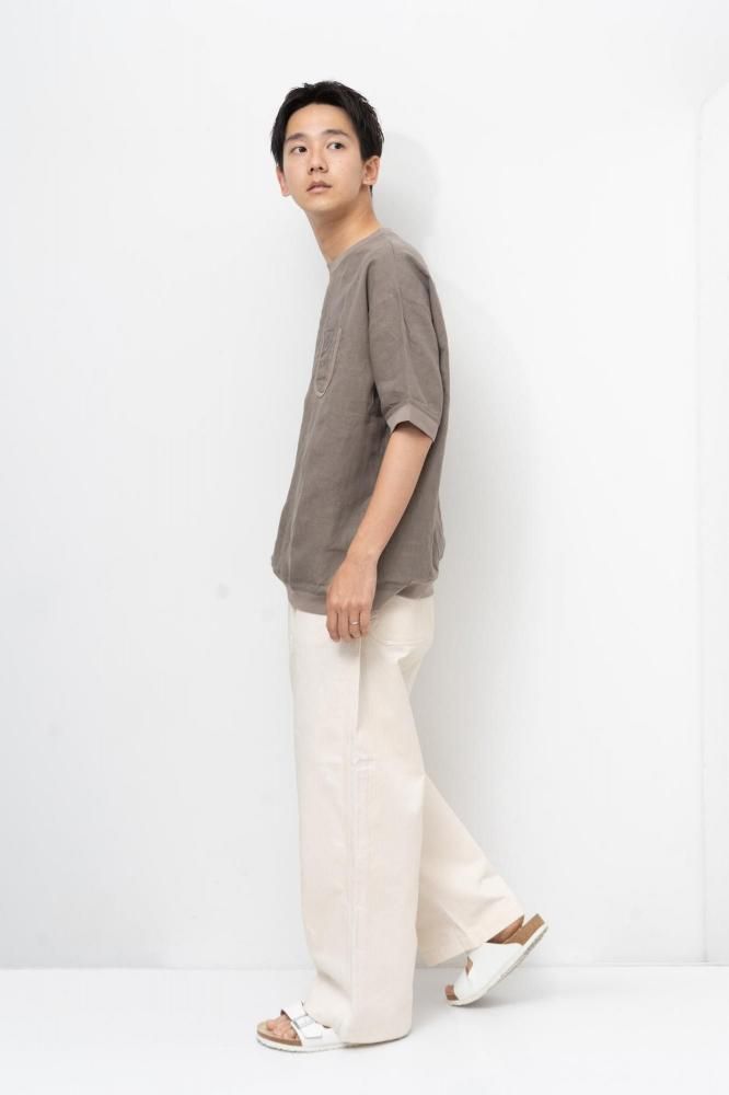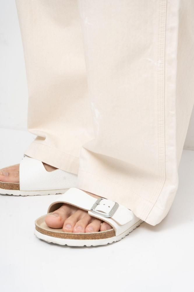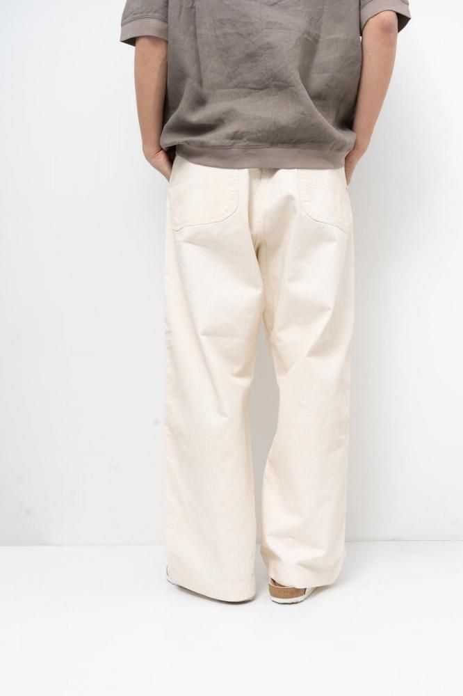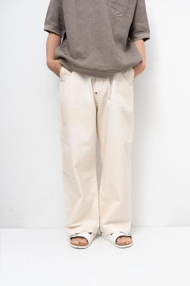 팬츠 전체는 오버올의 하의 부분이 분리된 듯한 독특한 구조로, 힙부터 밑단까지 여유 있는 와이드 실루엣을 유지합니다. 허리에는 스냅 어드저스터가 부착되어 사이즈 조절이 가능합니다.
