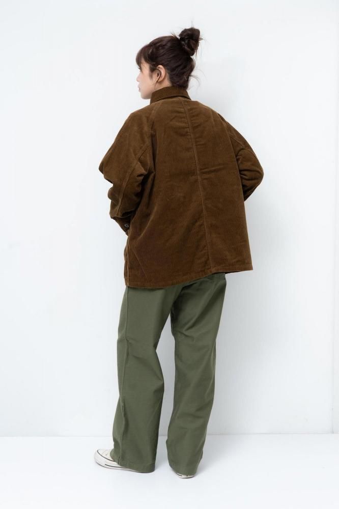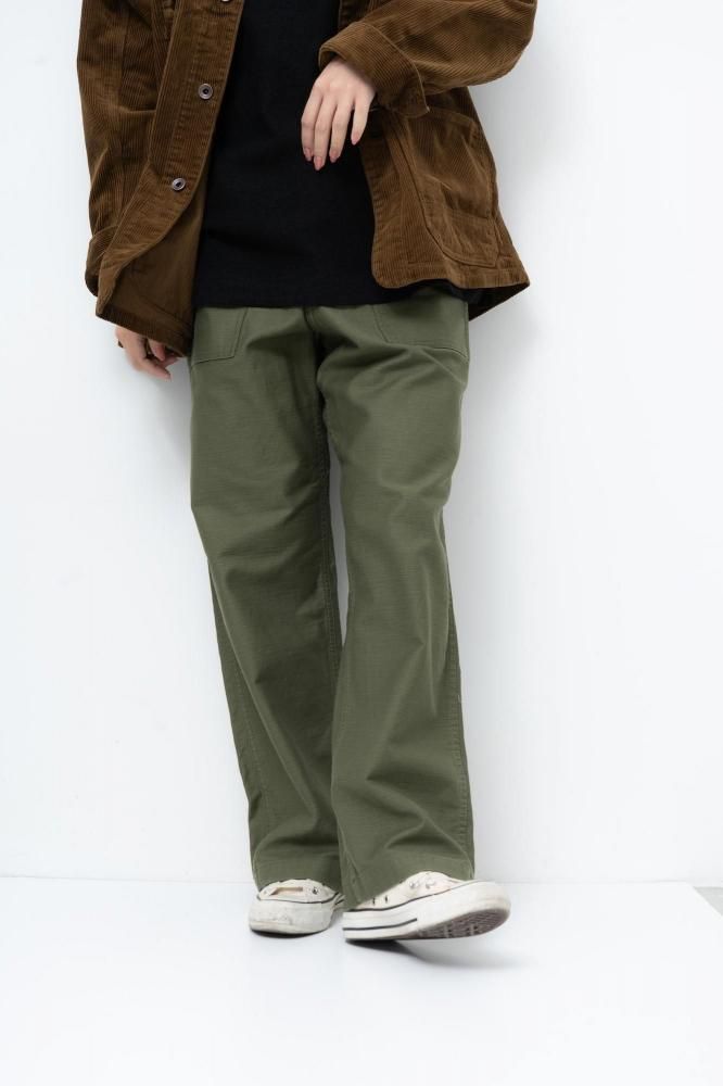 전체적으로 여유로운 실루엣이지만 과하지 않은 볼륨감으로 깔끔한 인상을 주며, 빈티지 밀리터리 팬츠의 느낌을 현대적으로 재해석했습니다.