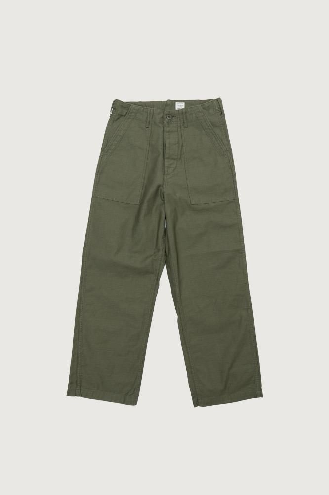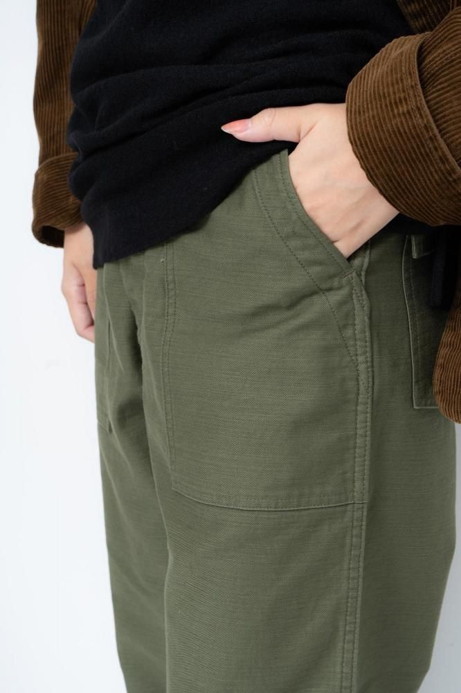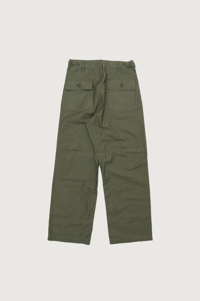 아메리칸 밀리터리 백사틴 원단을 재현한 적당한 두께감의 원단으로 제작된 스트레이트 팬츠입니다.