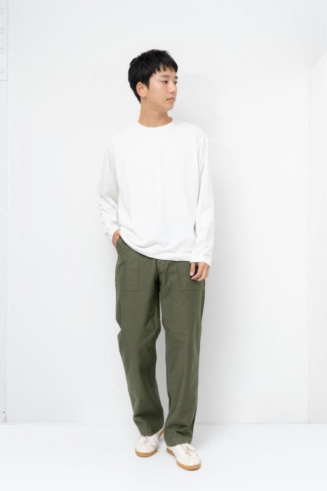 미군의 빈티지 필드 팬츠를 모티프로 제작된 백새틴 팬츠입니다.