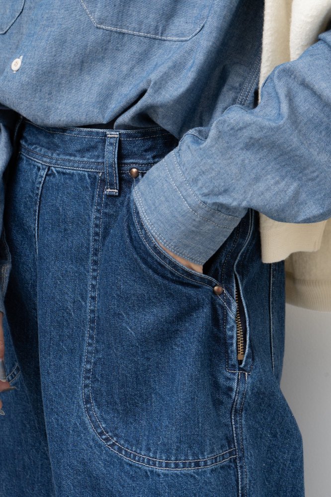 11.5oz 내추럴 슬래브 데님 소재로 사이드 지퍼 사양입니다.