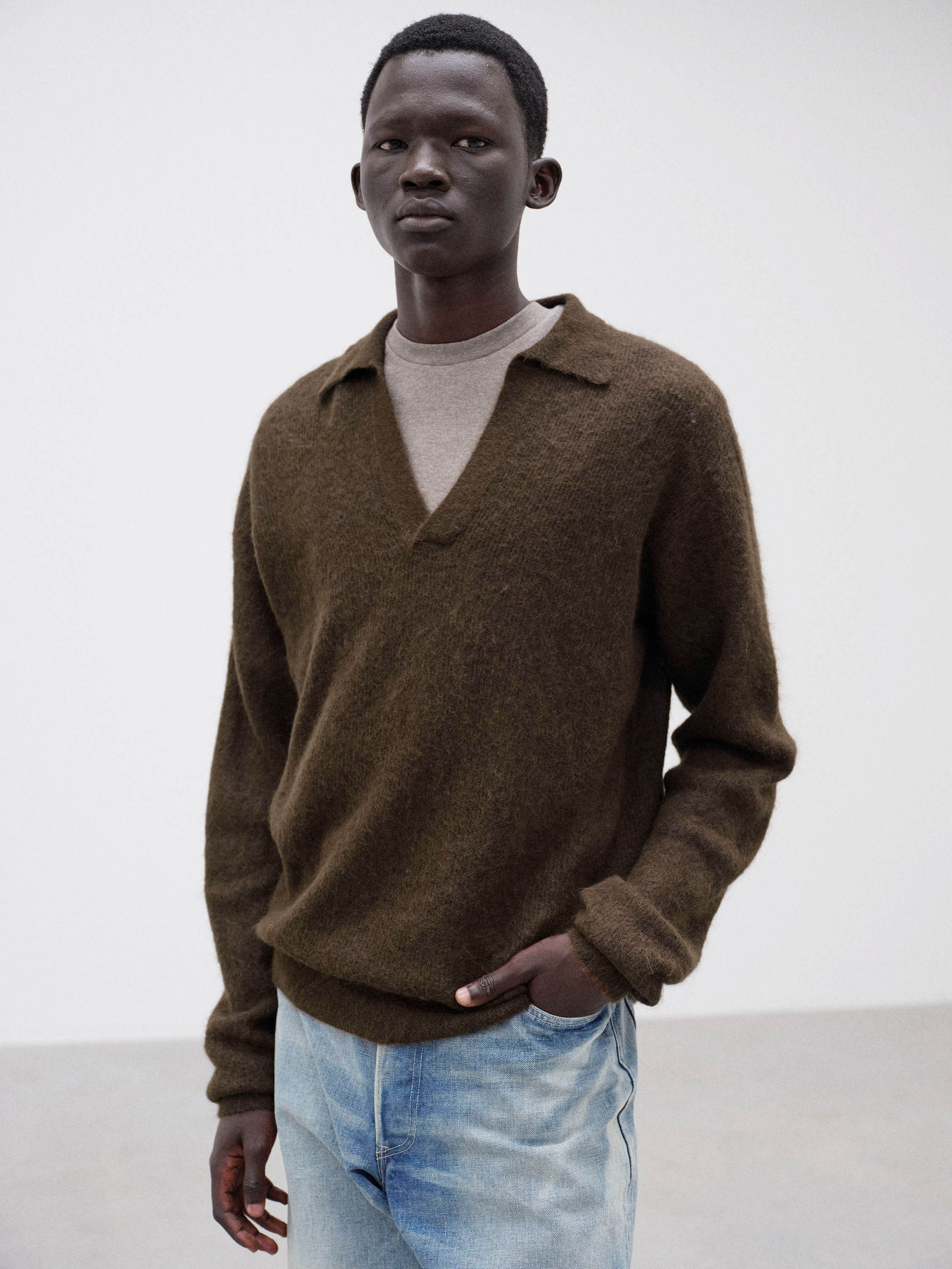 베이비 알파카 소재를 사용한 니트. 섬세한 모질을 살리기 위해 시간을 들여 정성스럽게 마감했습니다. 극상의 부드러움과 매끈한 터치감을 동시에 갖춘 소재입니다. 여유 있는 릴렉스핏입니다.