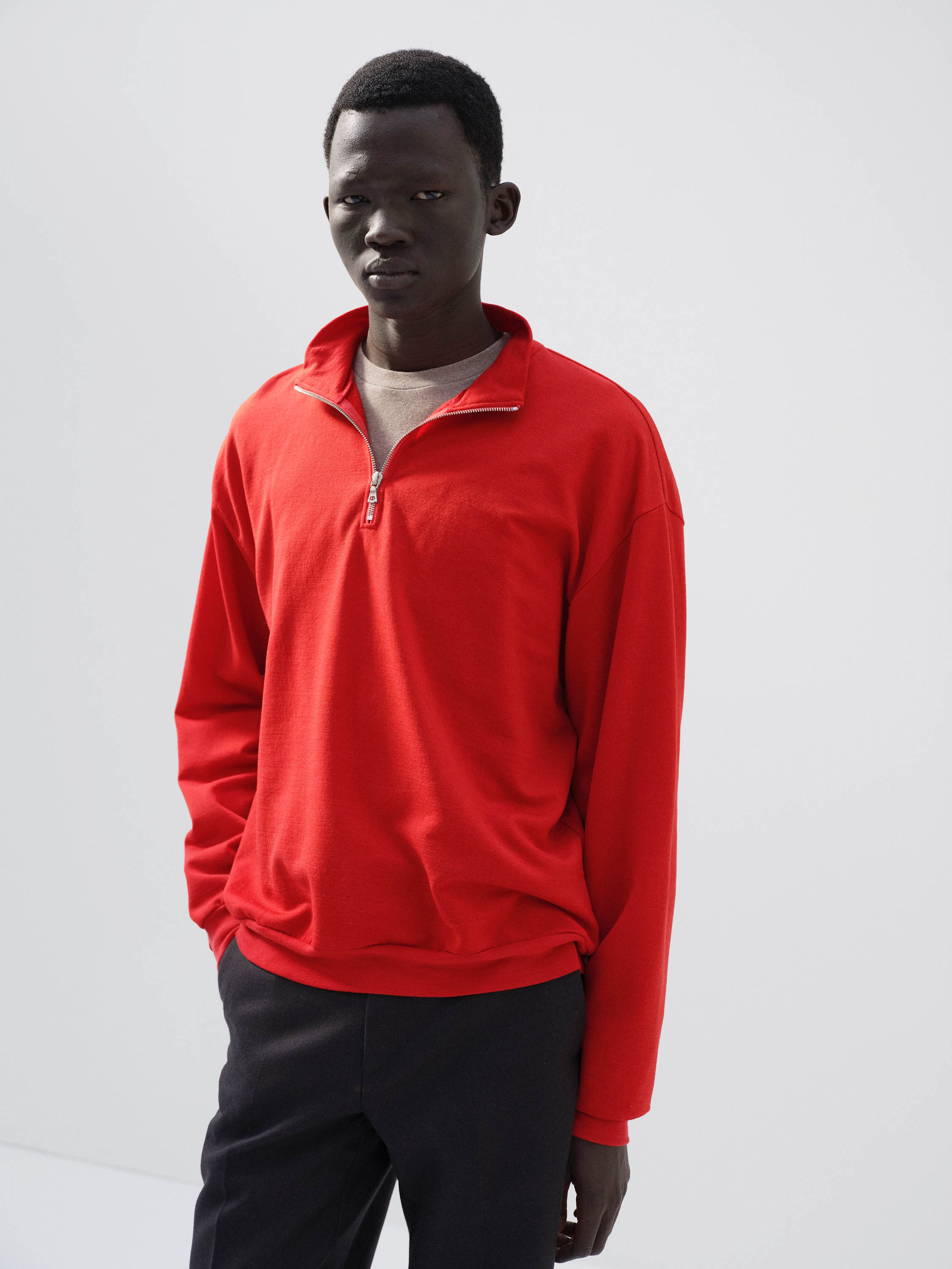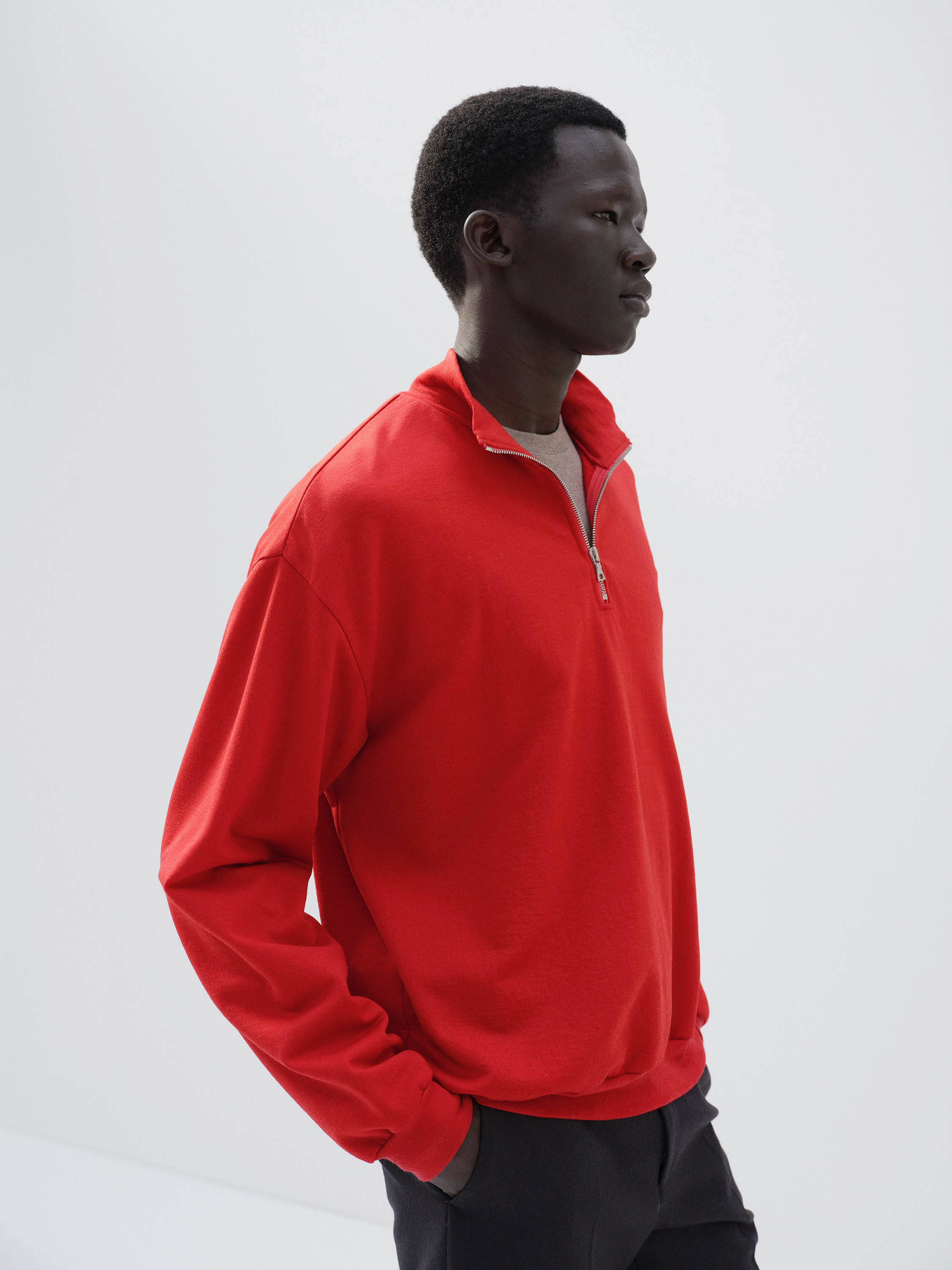 부드러운 울사와 나일론을 혼합해 만든 스웨트셔츠입니다. 겉감과 안감에는 잔털을 깔끔하게 정리한 울 실을 사용하고, 중간 실에는 나일론을 더해 신축성과 가벼움을 구현했습니다.