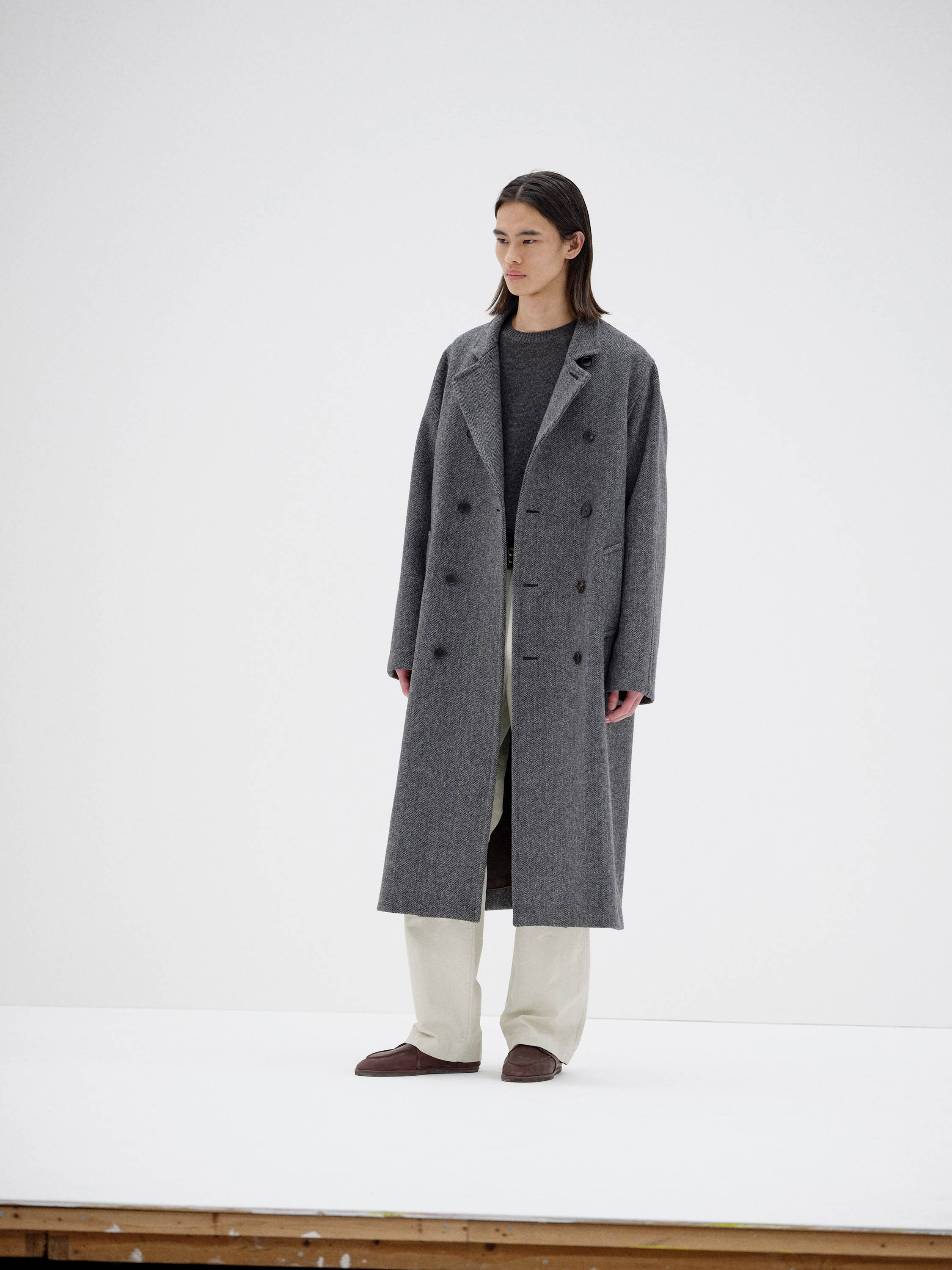 영국사나 셔틀랜드 울을 블렌드한 소재를 사용하여 산뜻한 촉감, 따뜻한 질감의 코트.