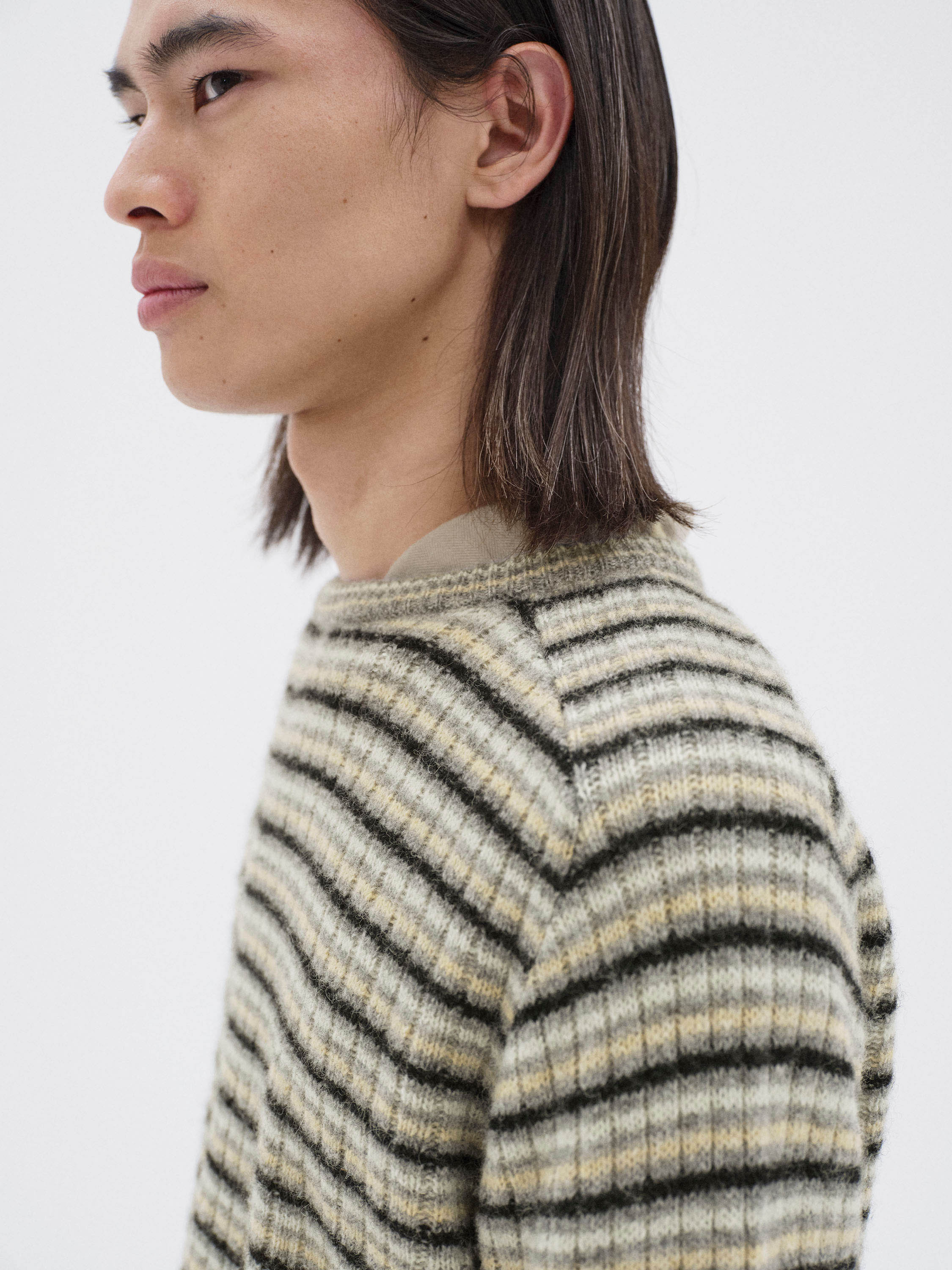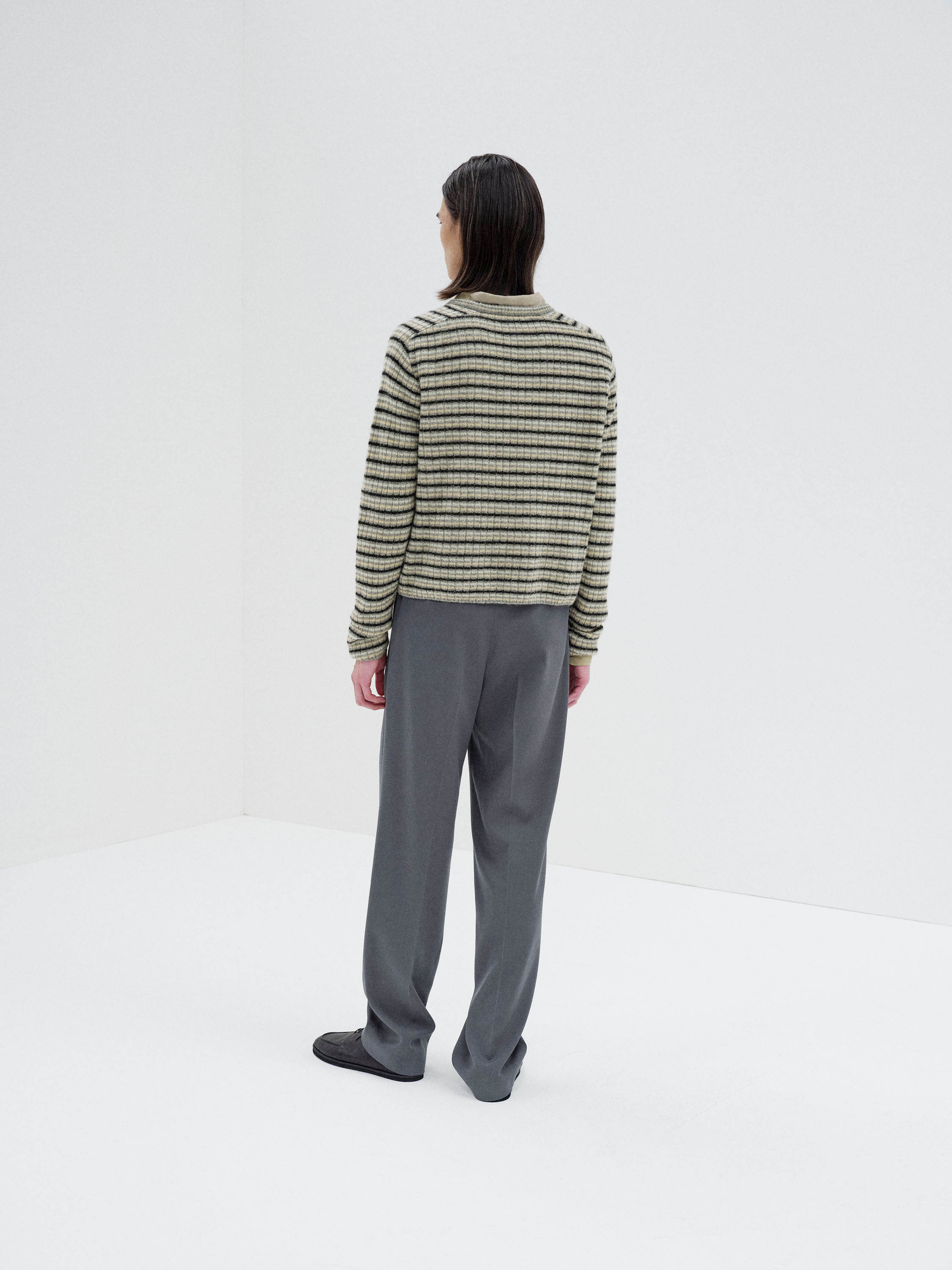 셔틀랜드 울과 캐시미어를 혼방하어 로우게이지로 짠 니트입니다.