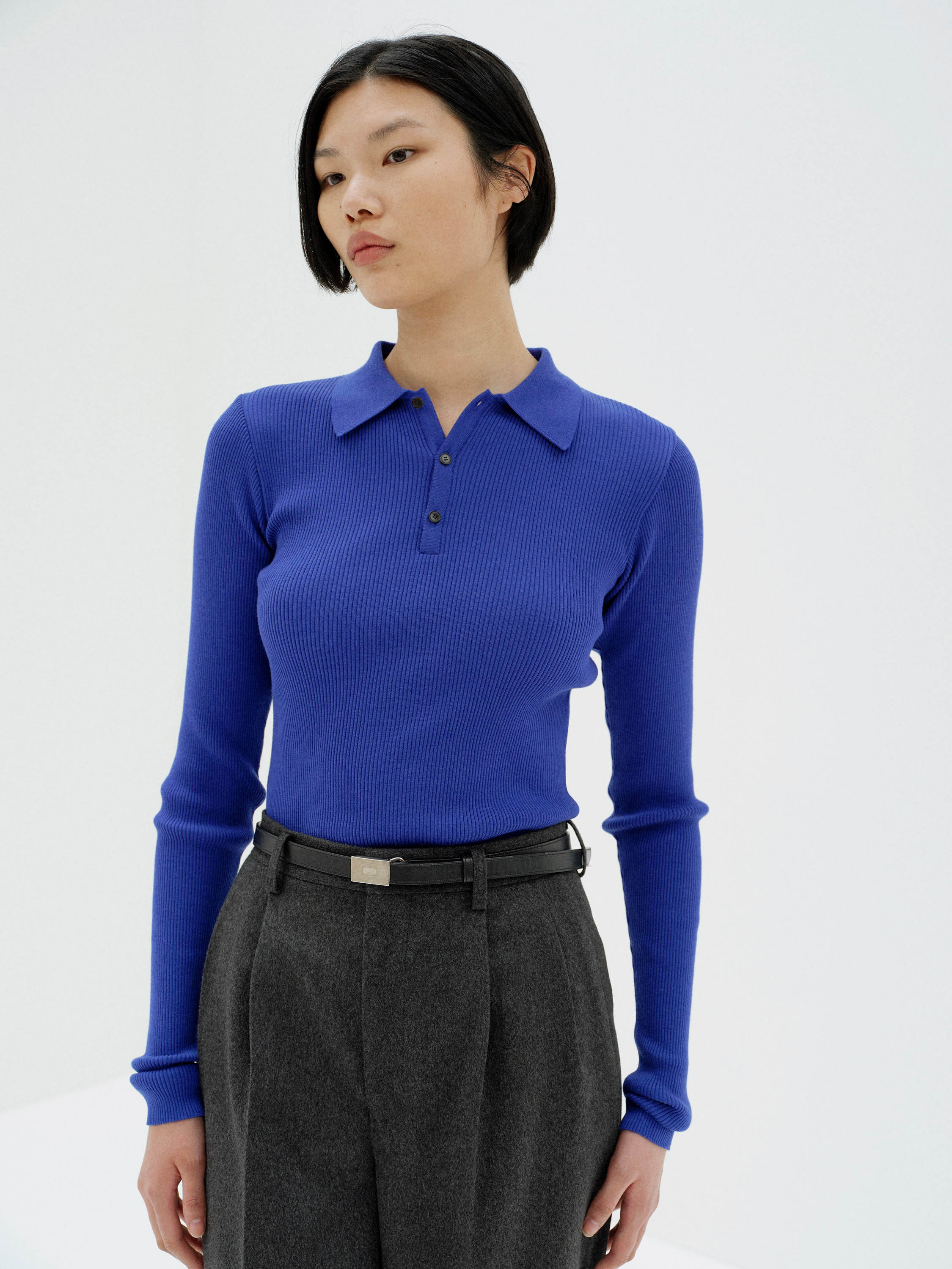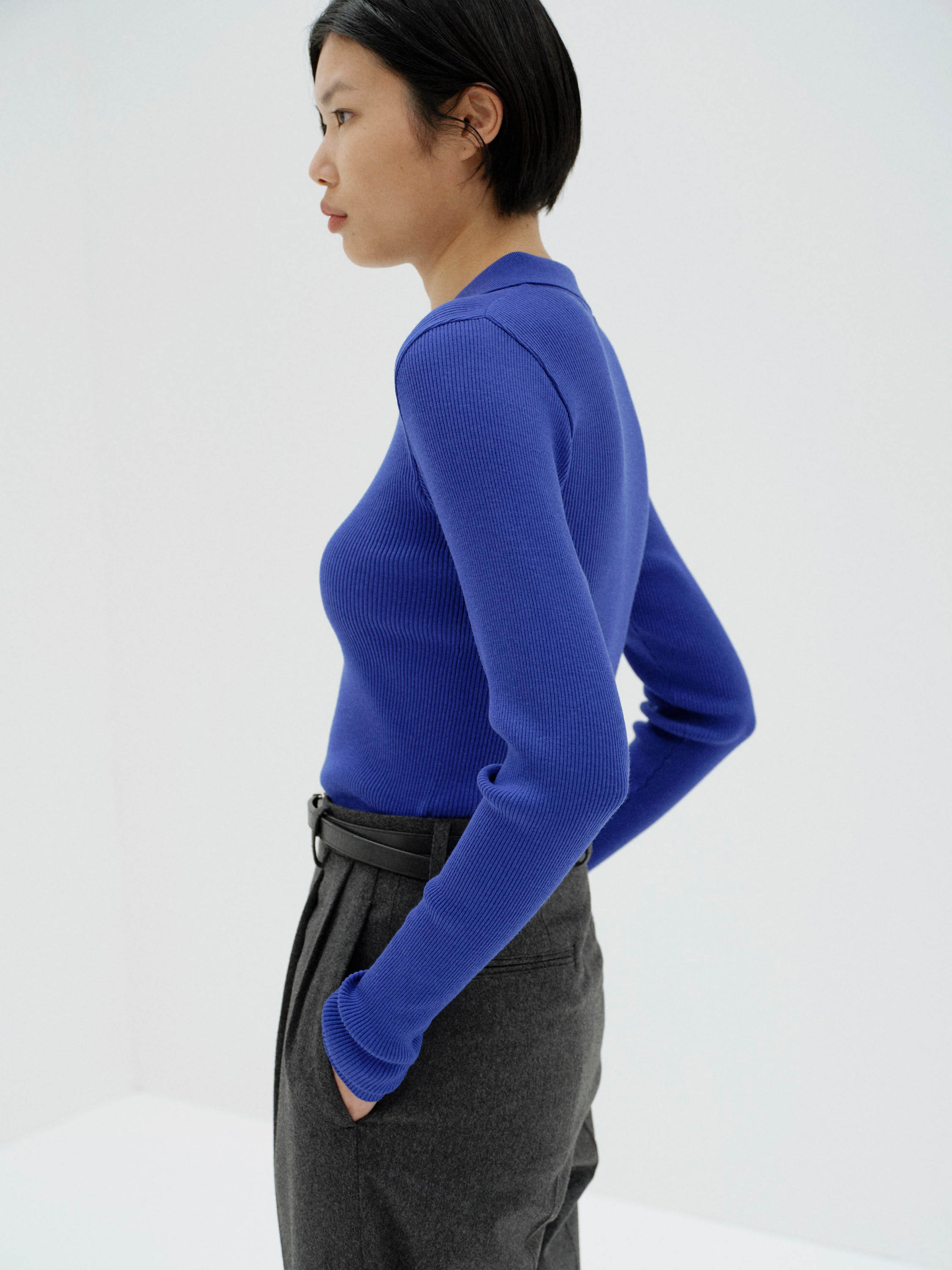 오라리 SUPER FINE WOOL HIGH GAUGE RIB KNIT POLO