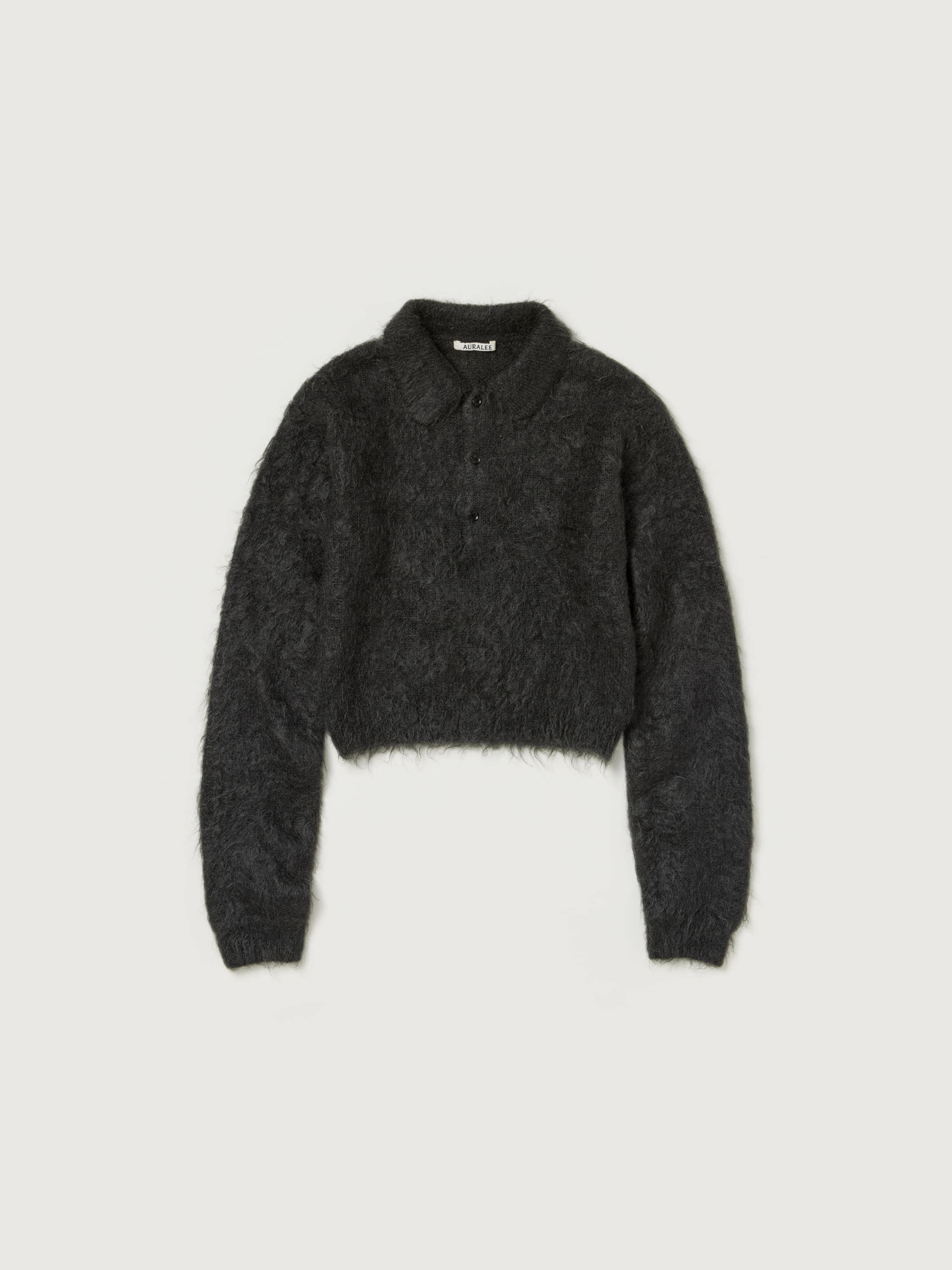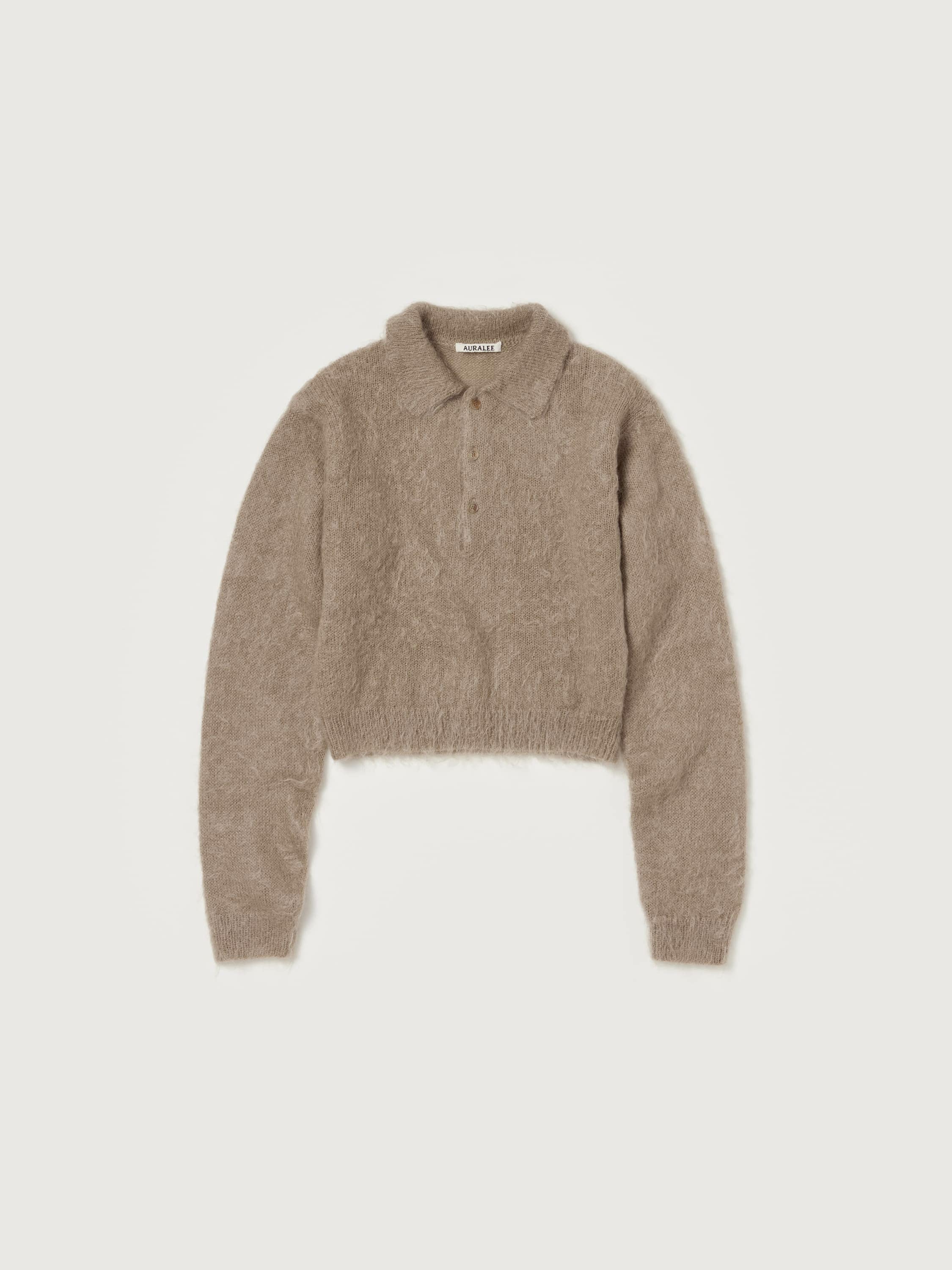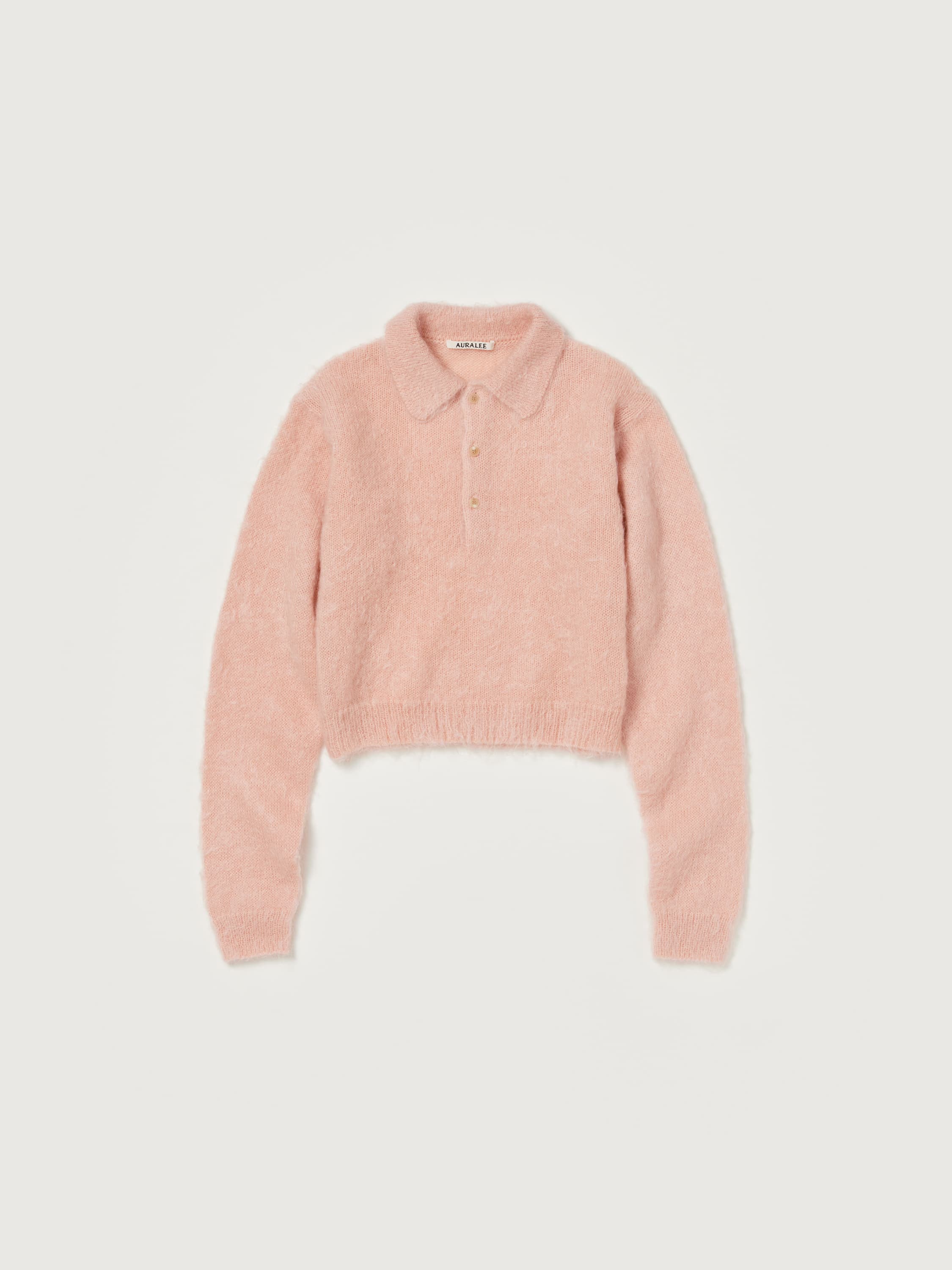 오라리 BRUSHED SUPER KID MOHAIR KNIT SHORT POLO