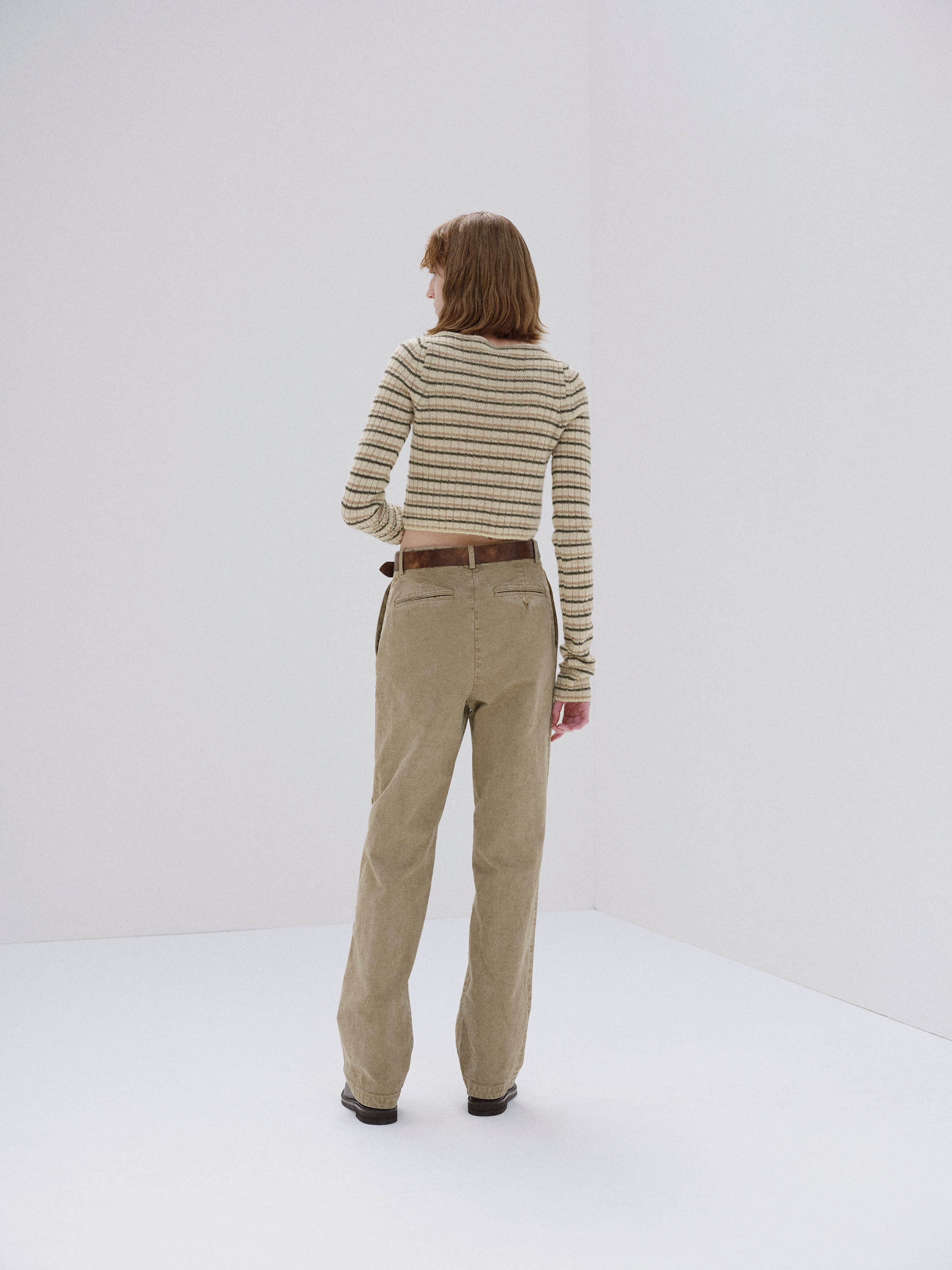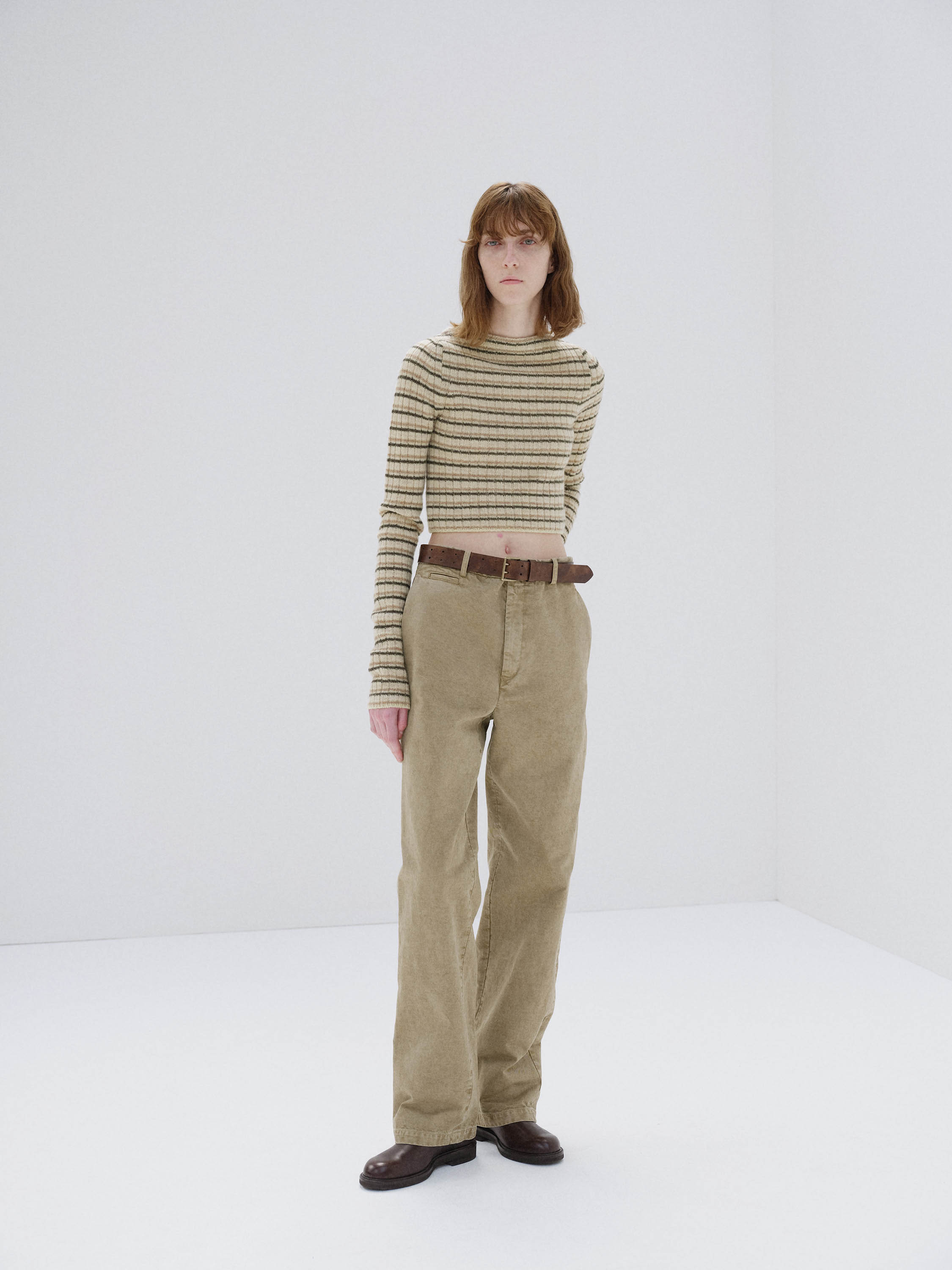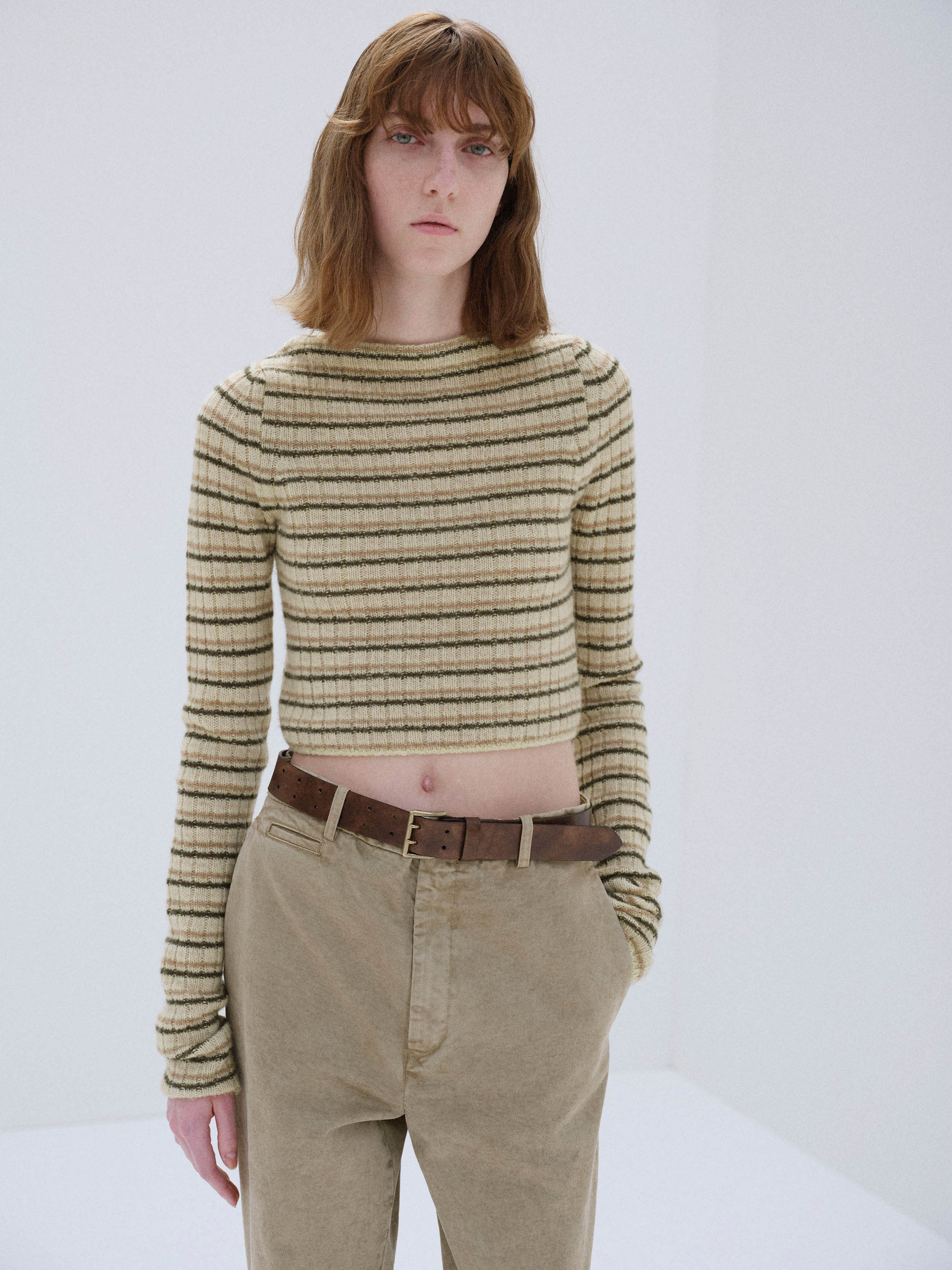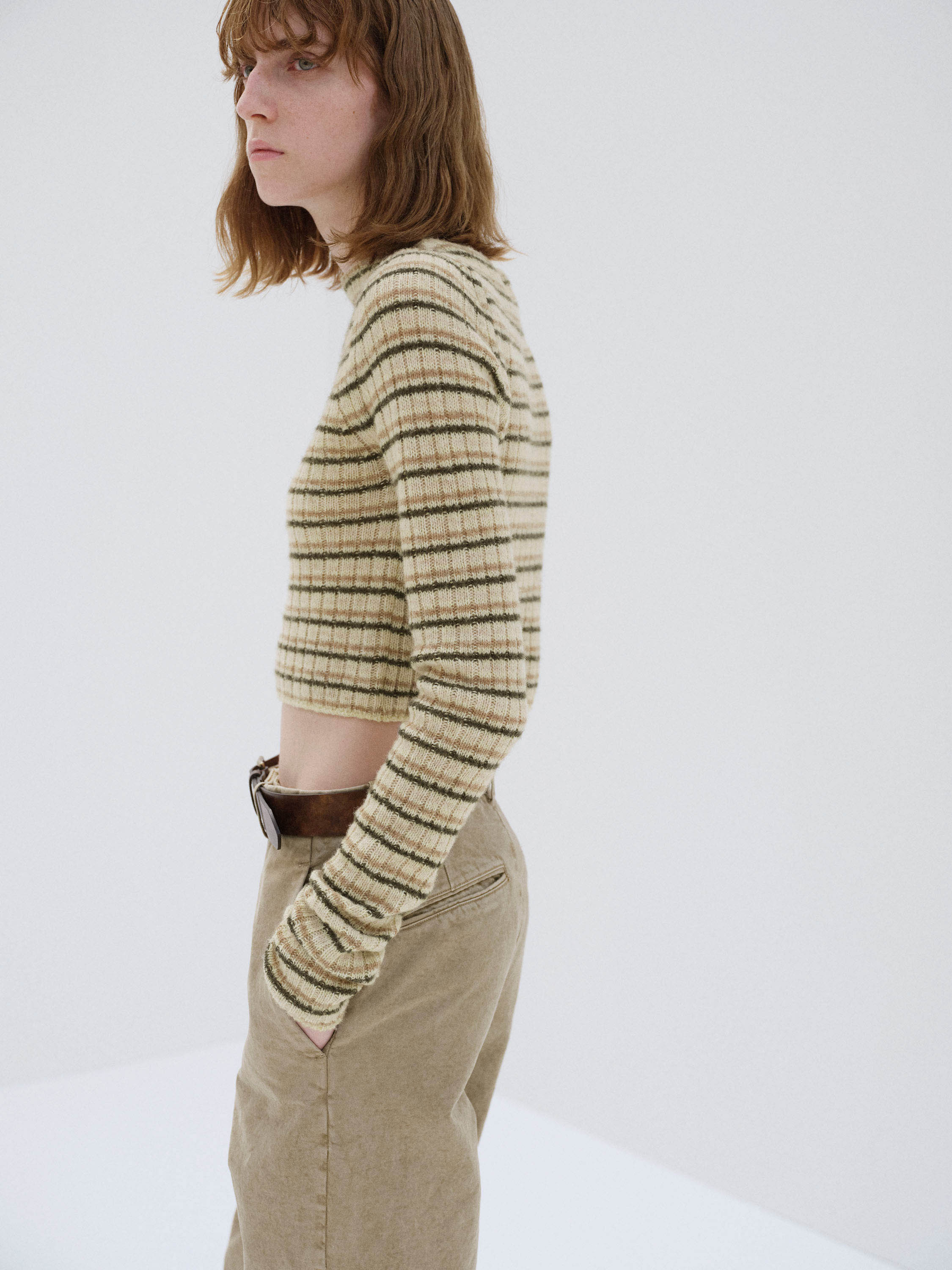 셔틀랜드 울과 캐시미어를 혼방하여 로게이지로 짠 니트입니다. 탄탄한 질감과 캐시미어의 부드럽고 매끄러운 촉감을 모두 갖춘 소재로, 가볍고 유연하면서도 따뜻한 착용감을 제공합니다.