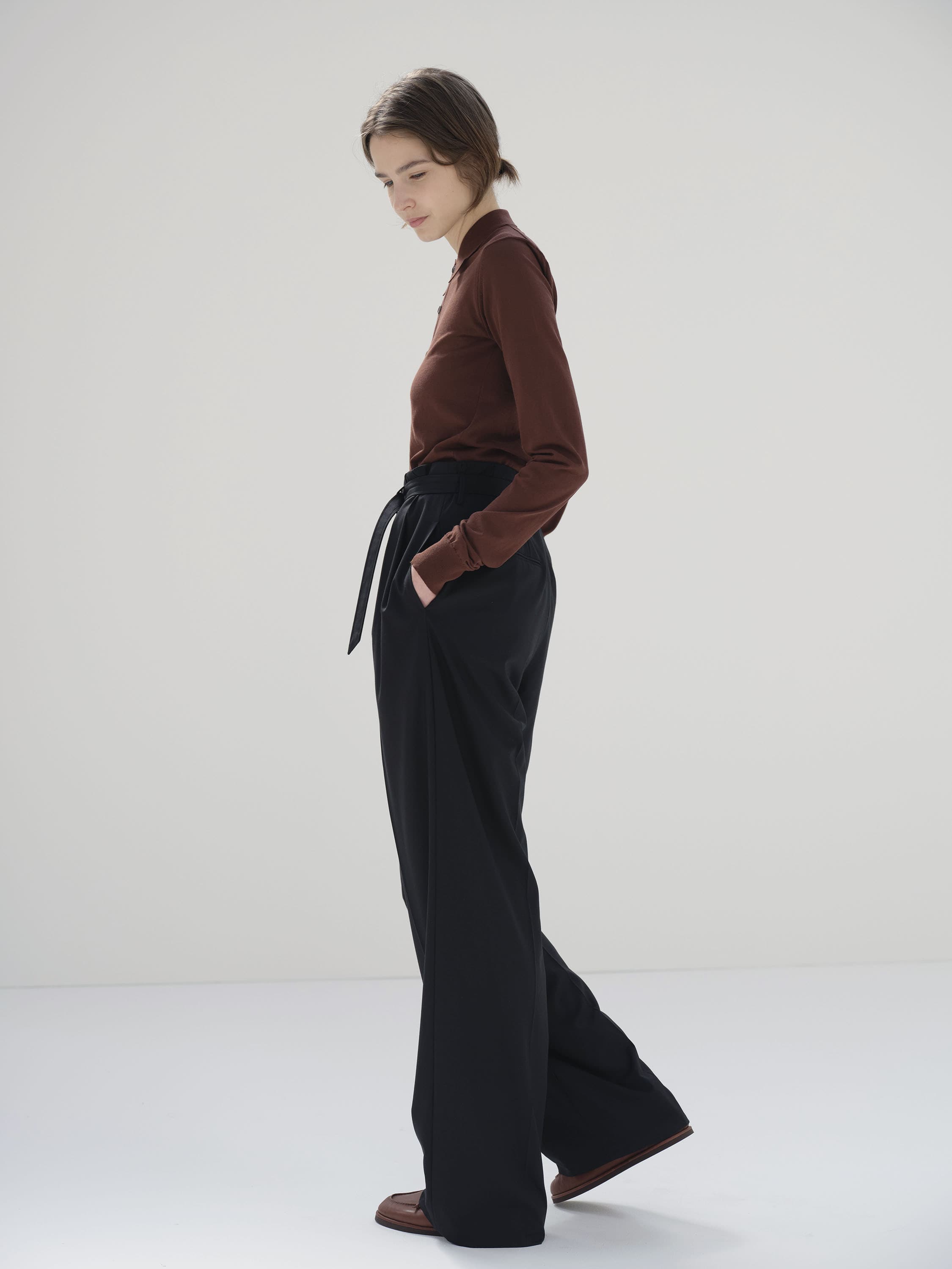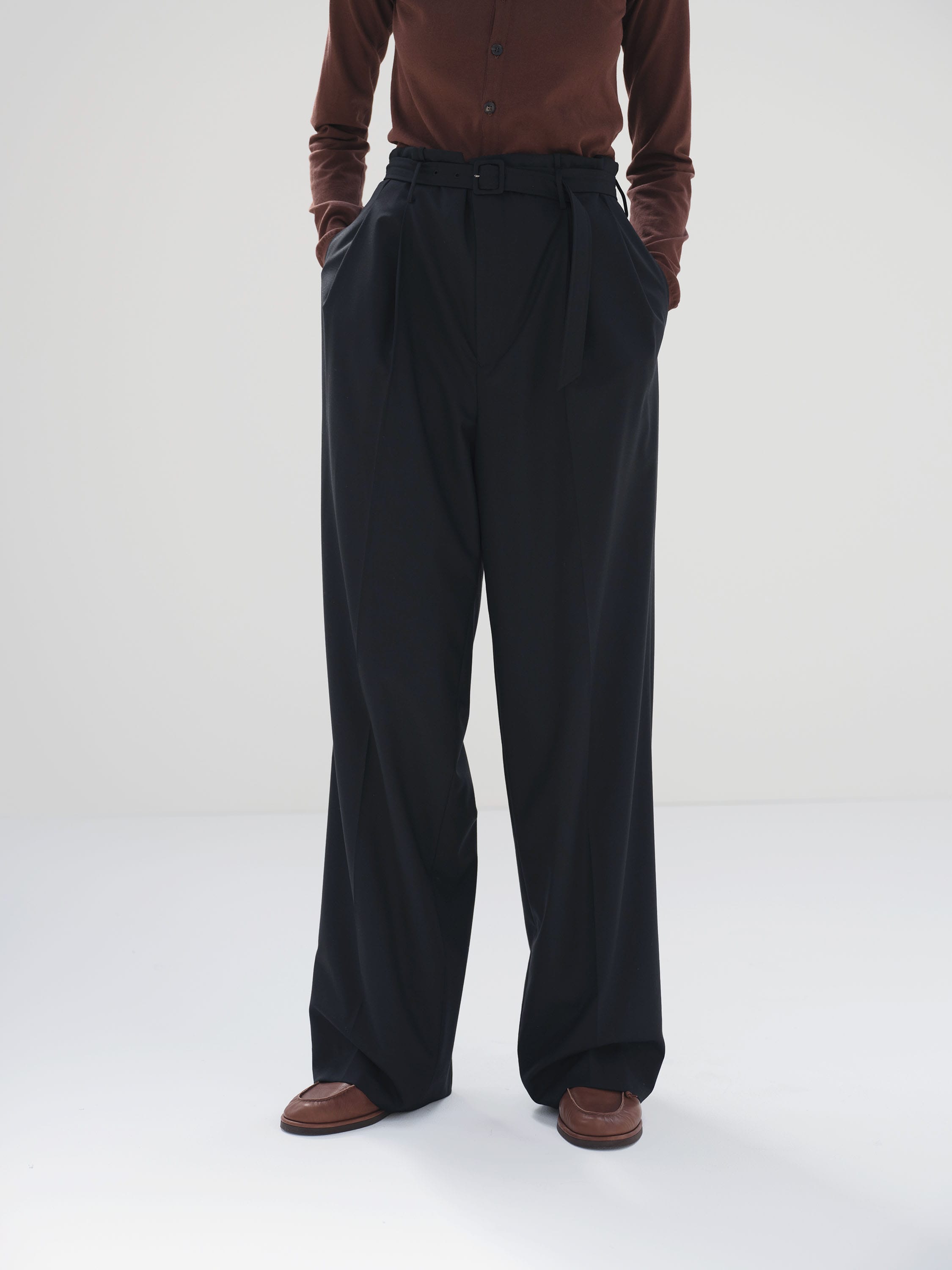 와이드 핏 / 와이드 레그 / 2 플리츠 / 하드라이닝 / 탈부착 가능한 벨트