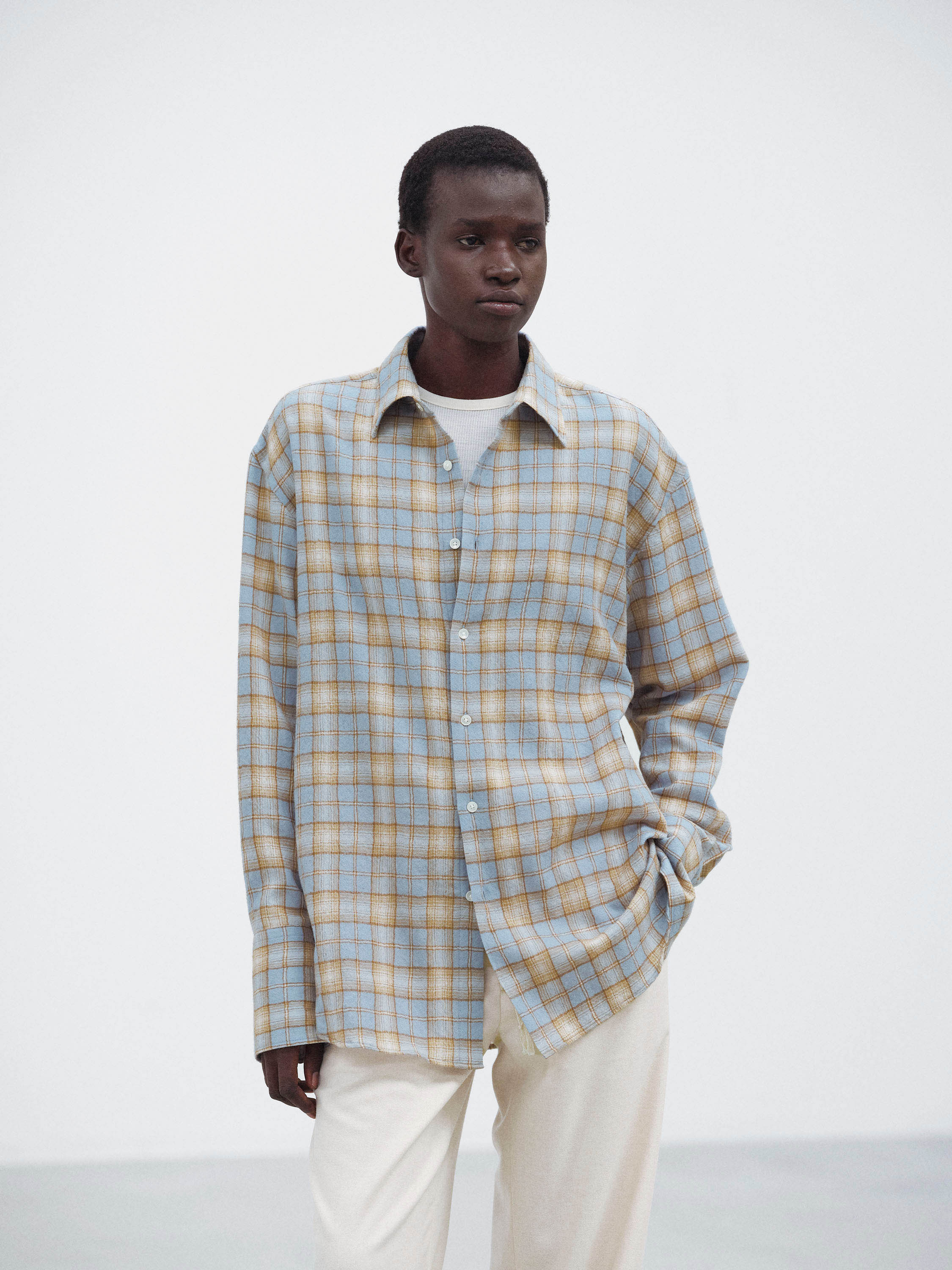 오라리 AIRY WOOL CHECK SHIRT