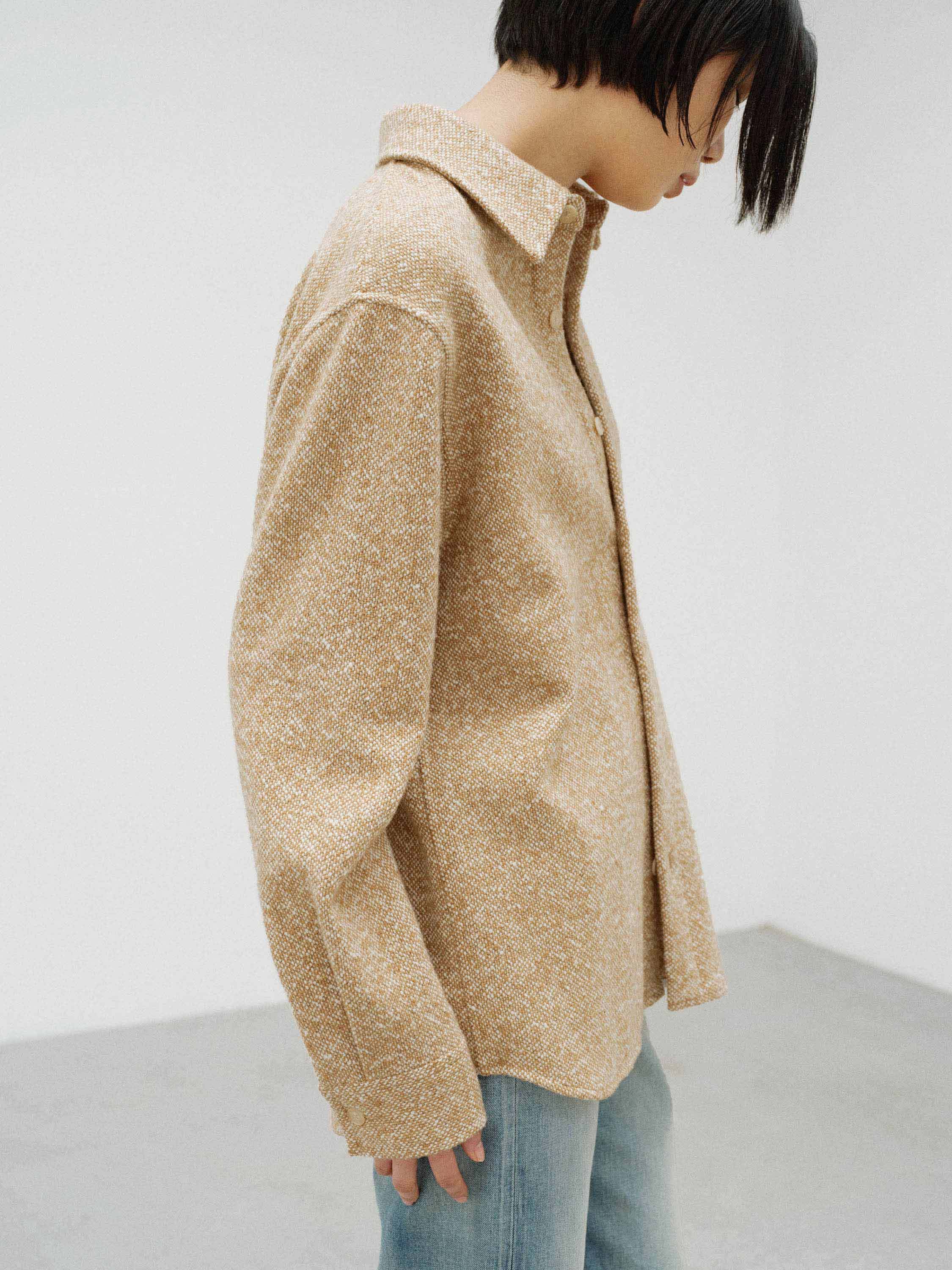 매끄럽고 따뜻한 분위기를 지닌 홈스펀 스타일 트위드가 특징입니다.