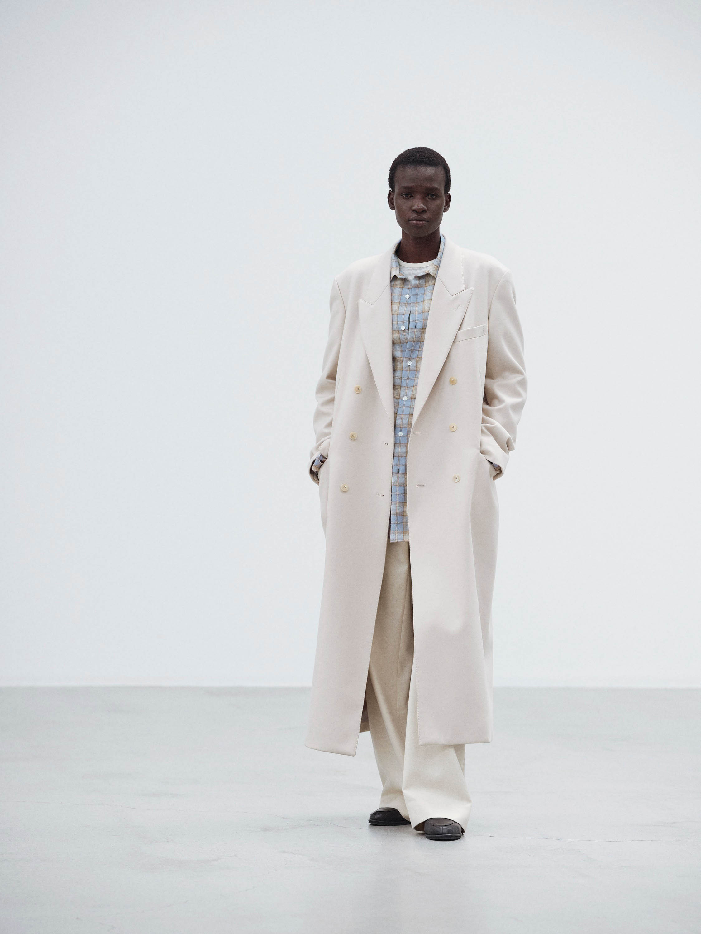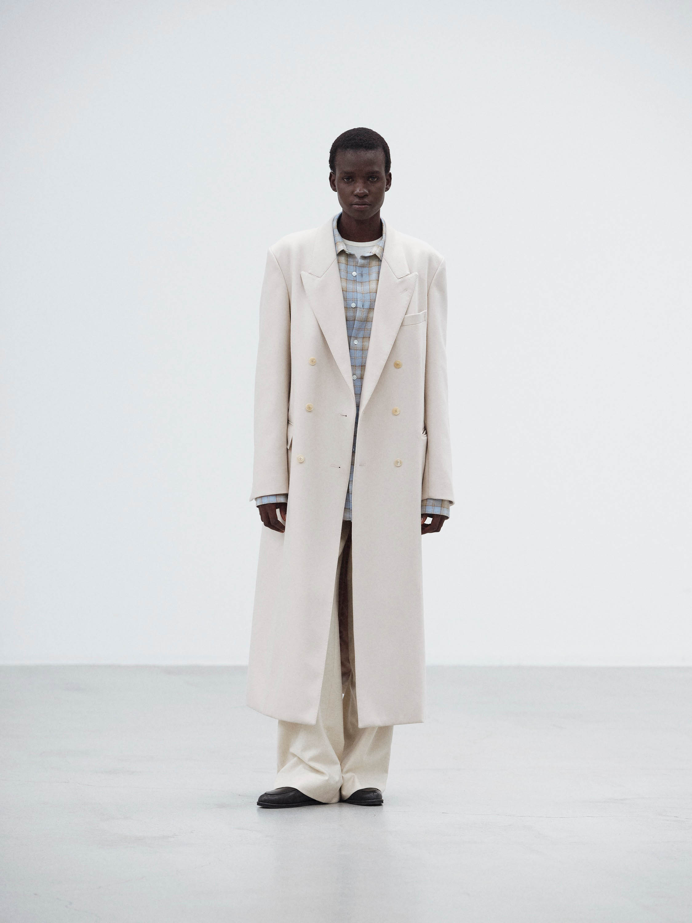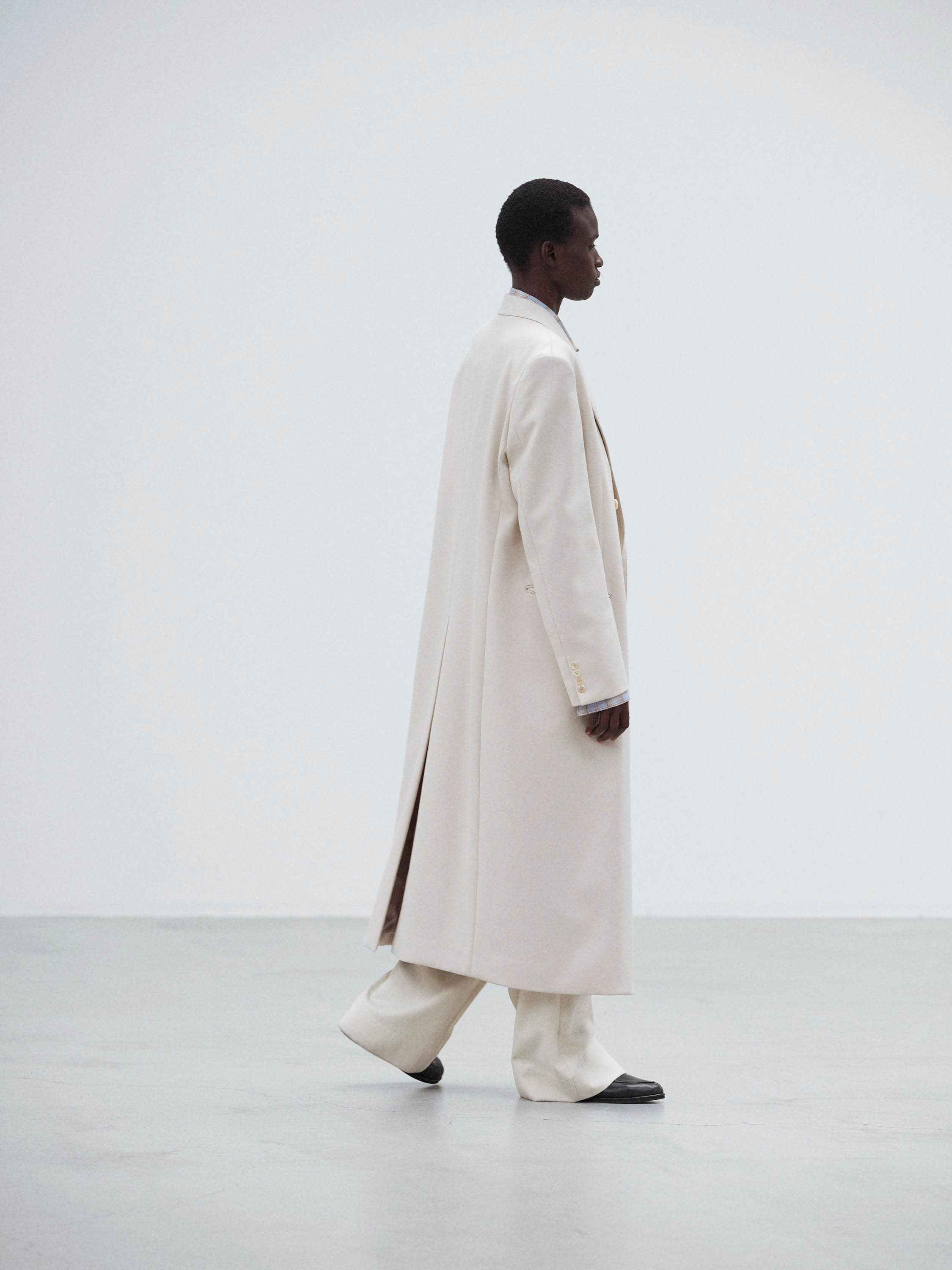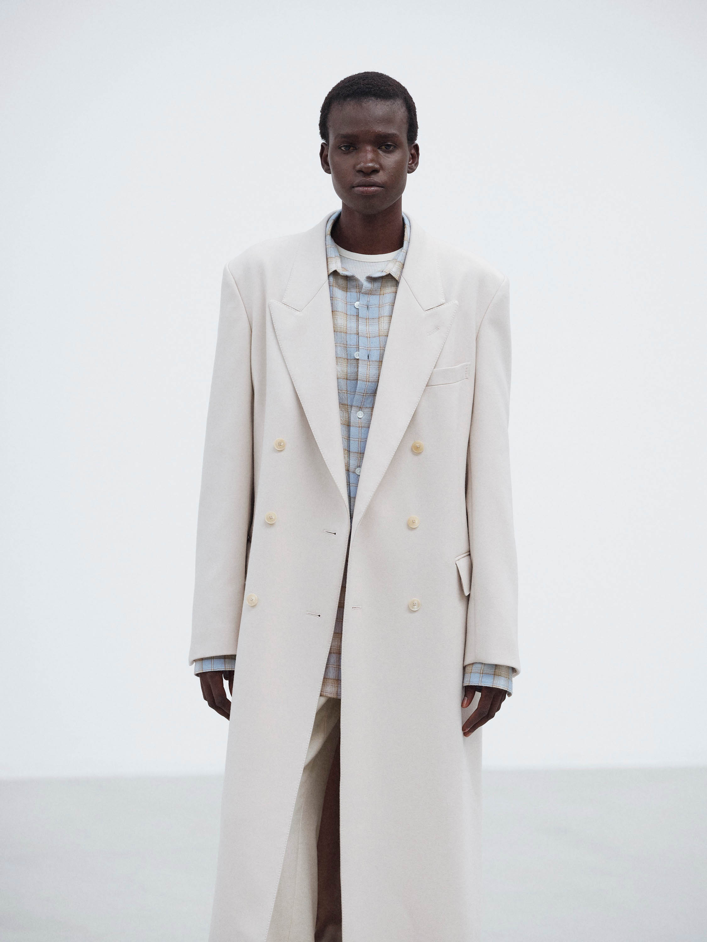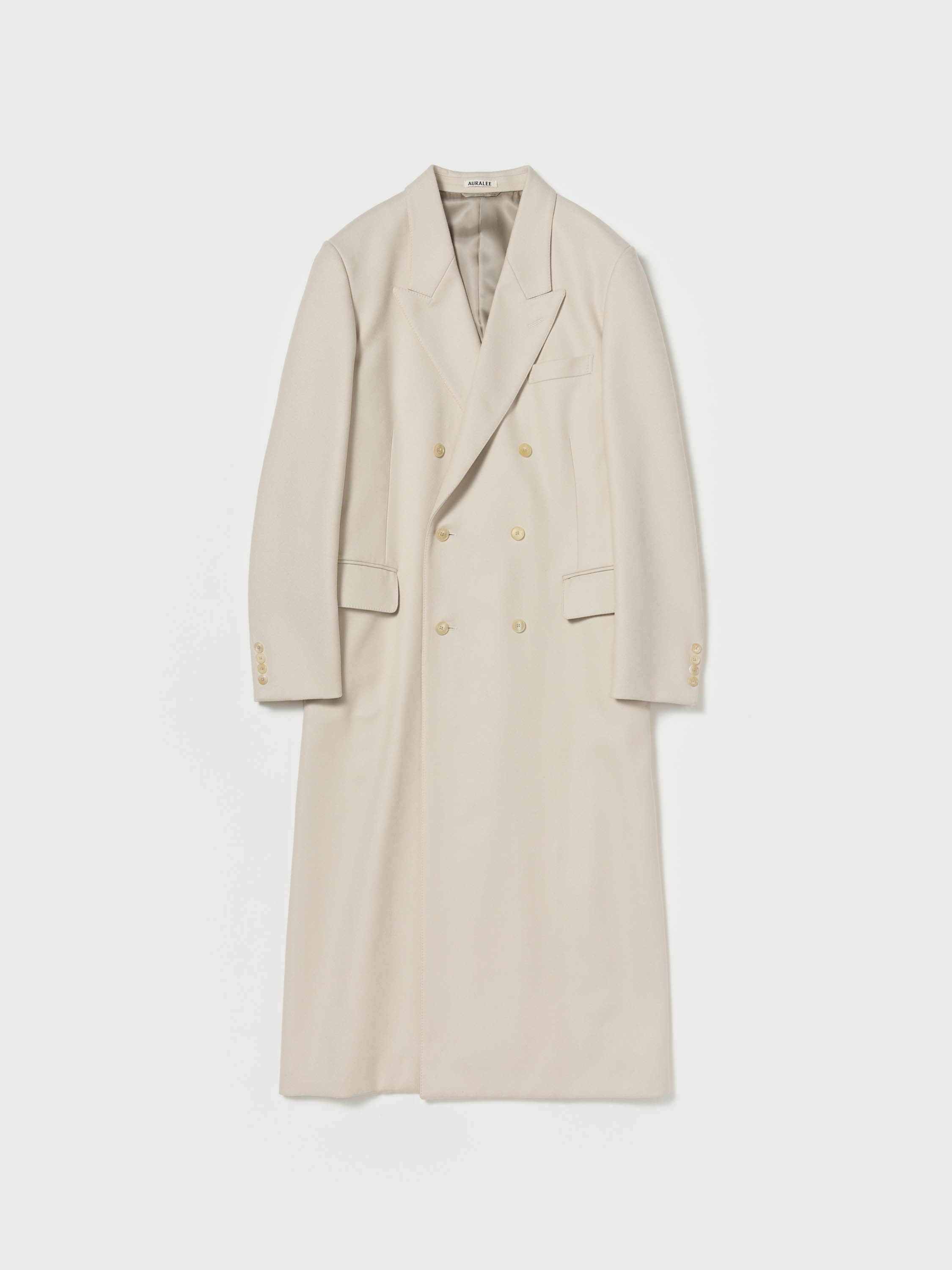 Super130’s급의 최고급 원모를 사용해 방모사로 짜 올린 뒤, 정교한 더블 페이스 조직으로 단단하게 직조한 고급 울 코트입니다.