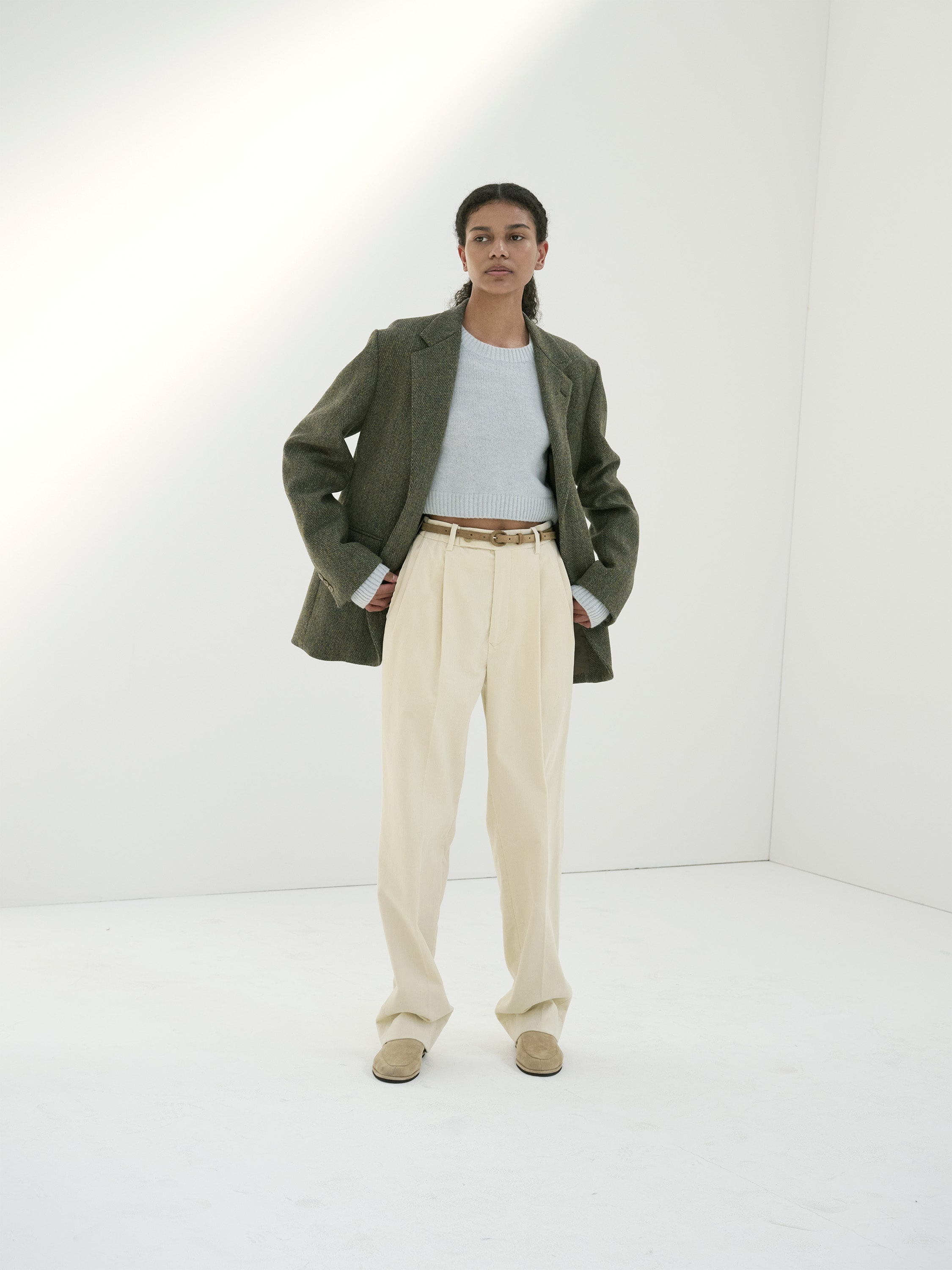 고급스러운 100% 이집트산 롱 핀스 면으로 만든 코듀로이 팬츠.