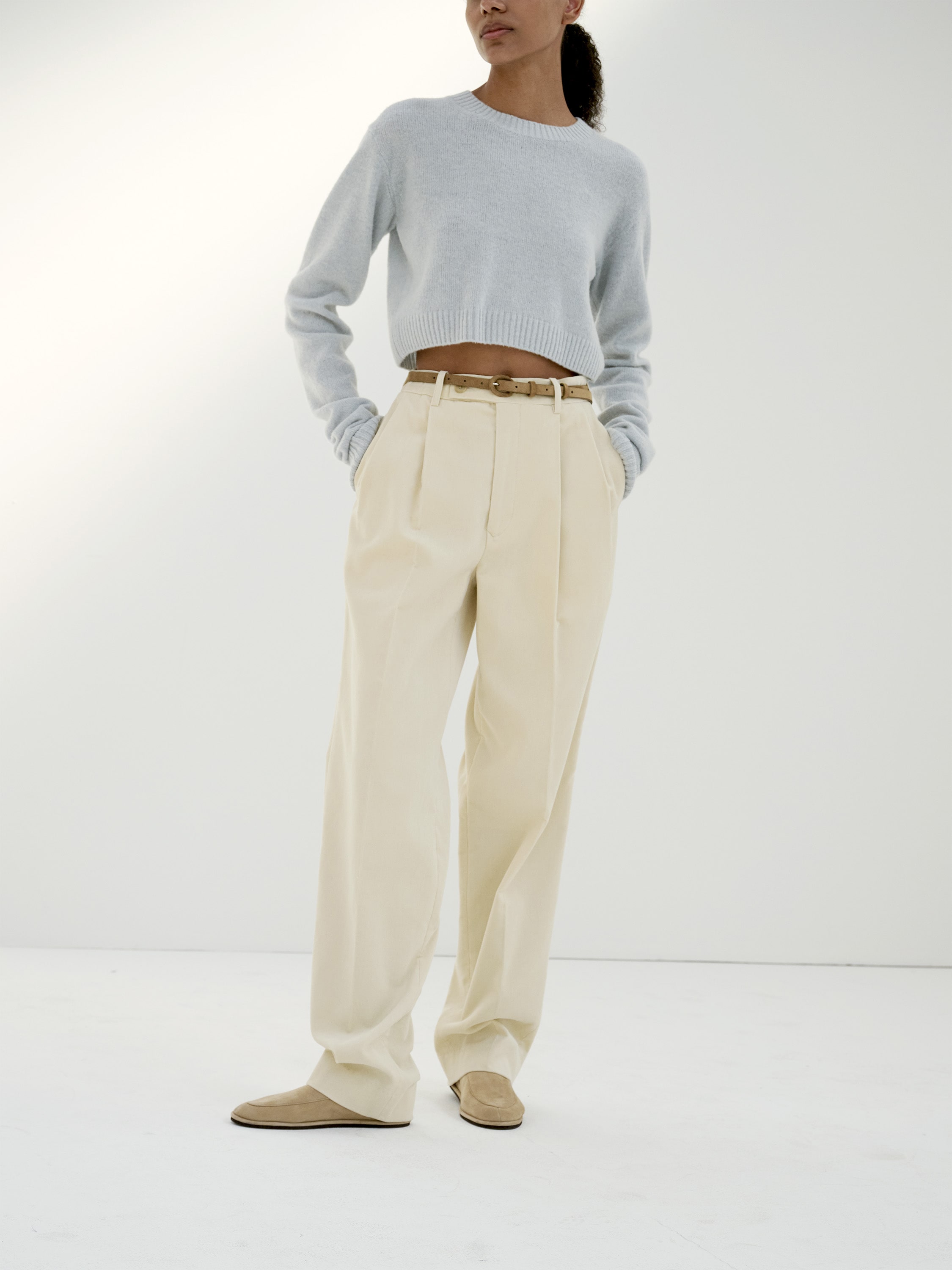 편안한 핏 / 와이드 테이퍼드 / 2플리츠 / 옆면 솔기 포켓