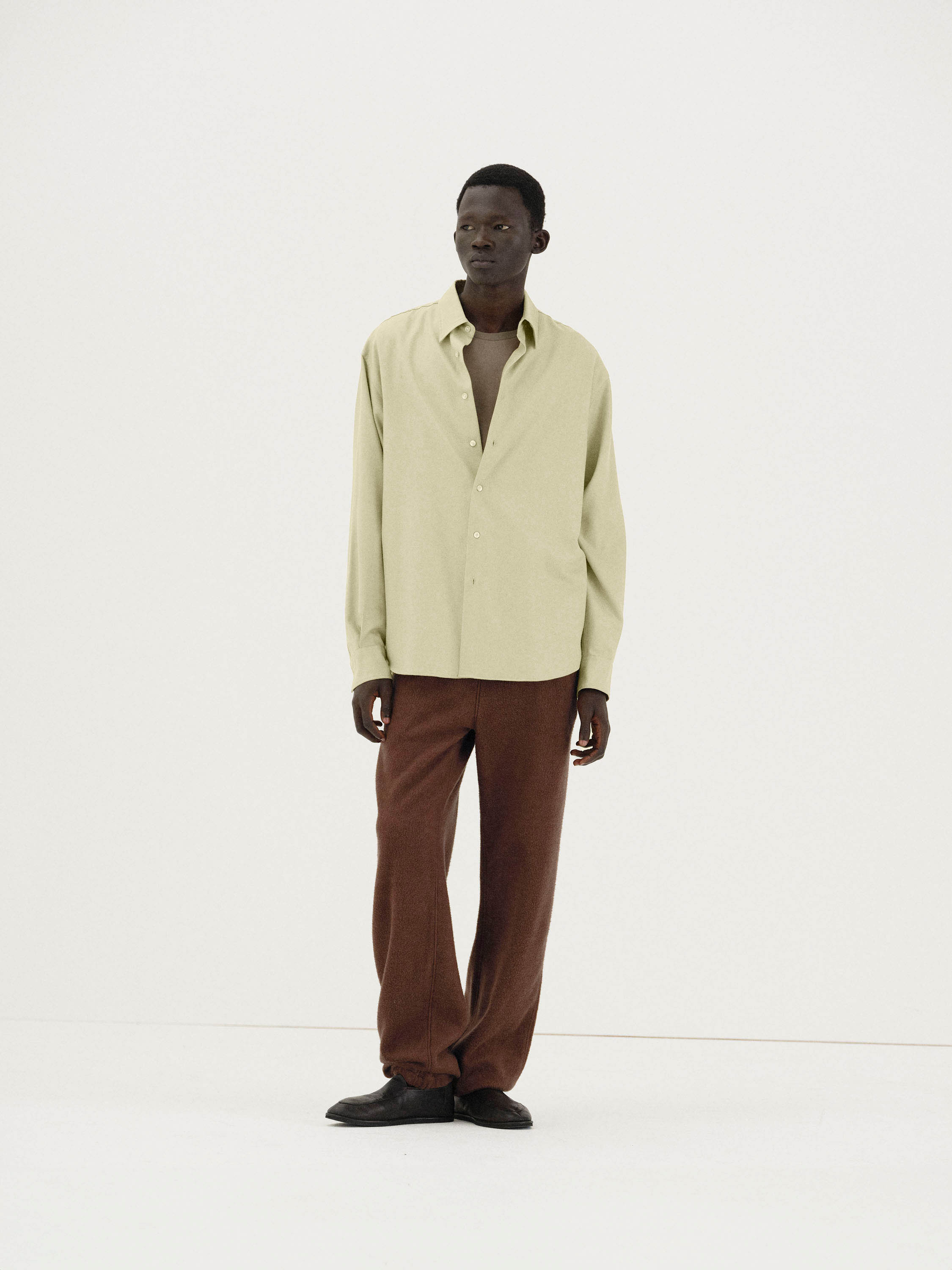 고품질의 울을 초극세수 털에 방적한 실을 사용하여 친환경적이고 특수한 방축가공을 한 울비에라 소재입니다. 독특한 차분한 질감과 광택, 부드럽고 가벼운 소재감이 특징입니다.