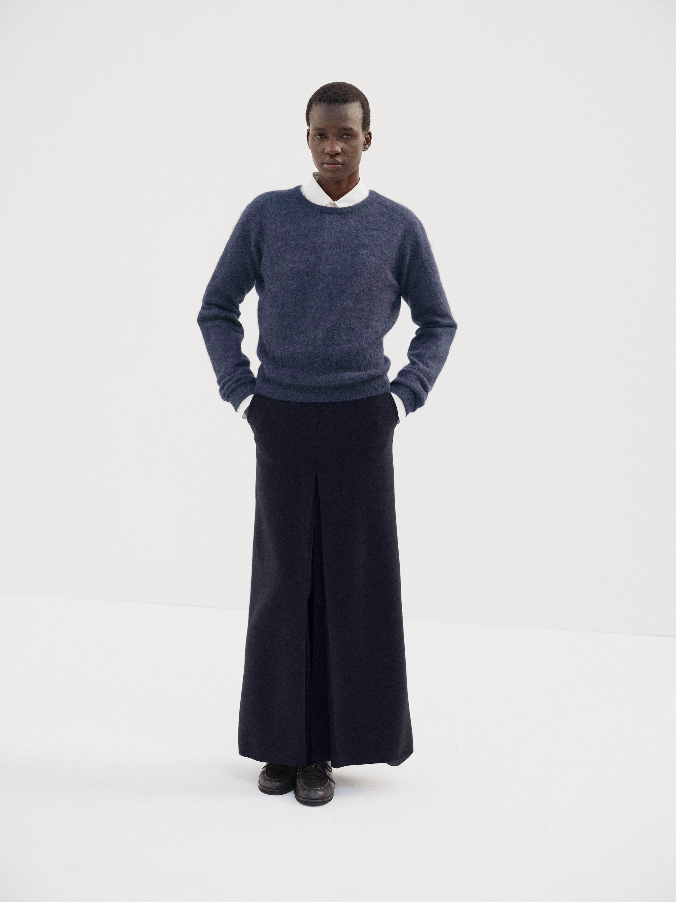 이 이중 직조 원단은 강하게 꼬인 초극세 울 소재와 신축성이 뛰어난 강한 꼬임 폴리우레탄을 조합하여 짜여진 것입니다. 이 독특한 조합으로 탄력성과 적당한 장력을 지닌 소재가 탄생합니다.