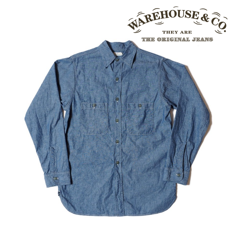 웨어하우스 3044 USN 샴브레이 무지 셔츠 긴팔 23SS