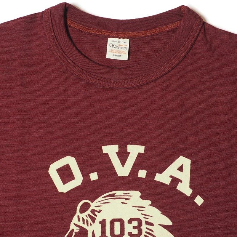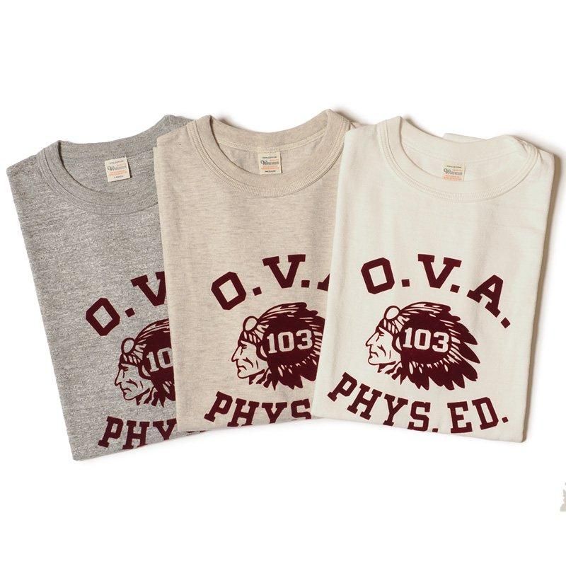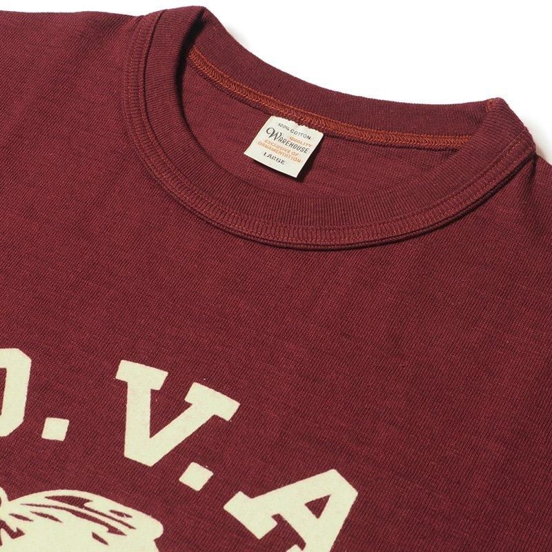 저궤도 편직기를 사용한 웨어하우스의 스탠다드 티 셔츠입니다. 12호의 요철 실로 짜서 독특한 색조를 주는 이 원단은 그림자 보더라고 불립니다.