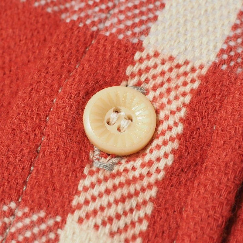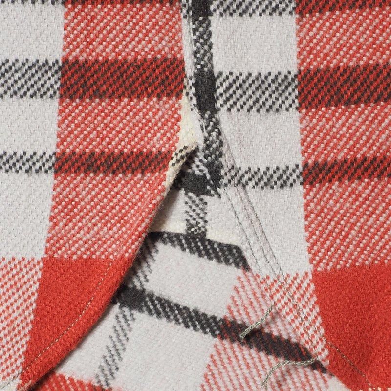구형 편직기를 사용하면, 실이 원래 가진 불균일한 표정과 볼륨감을 유지한 채 직조가 가능하며, 플란넬 특유의 깊은 색감과 터치가 자연스럽게 살아납니다. 다양한 색상의 실을 사용해 구형 편직기를 사용한 체크 패턴입니다. 직조가 끝난 후에는, 당시 방식 그대로 원단 뒷면에 기모 가공을 실시해 부드럽게 보이고 볼륨감이 있습니다.