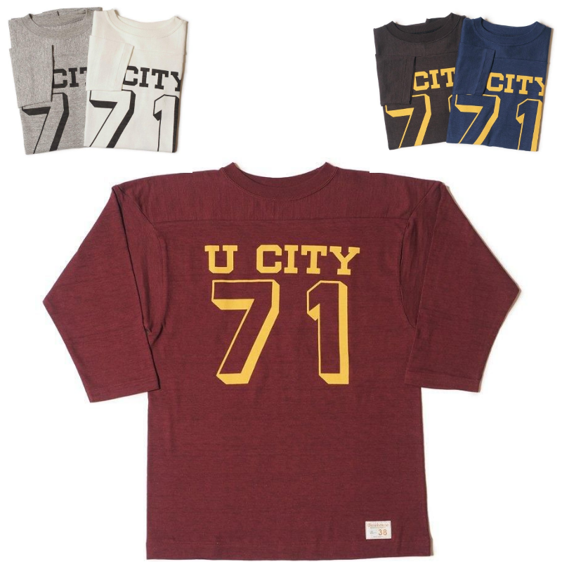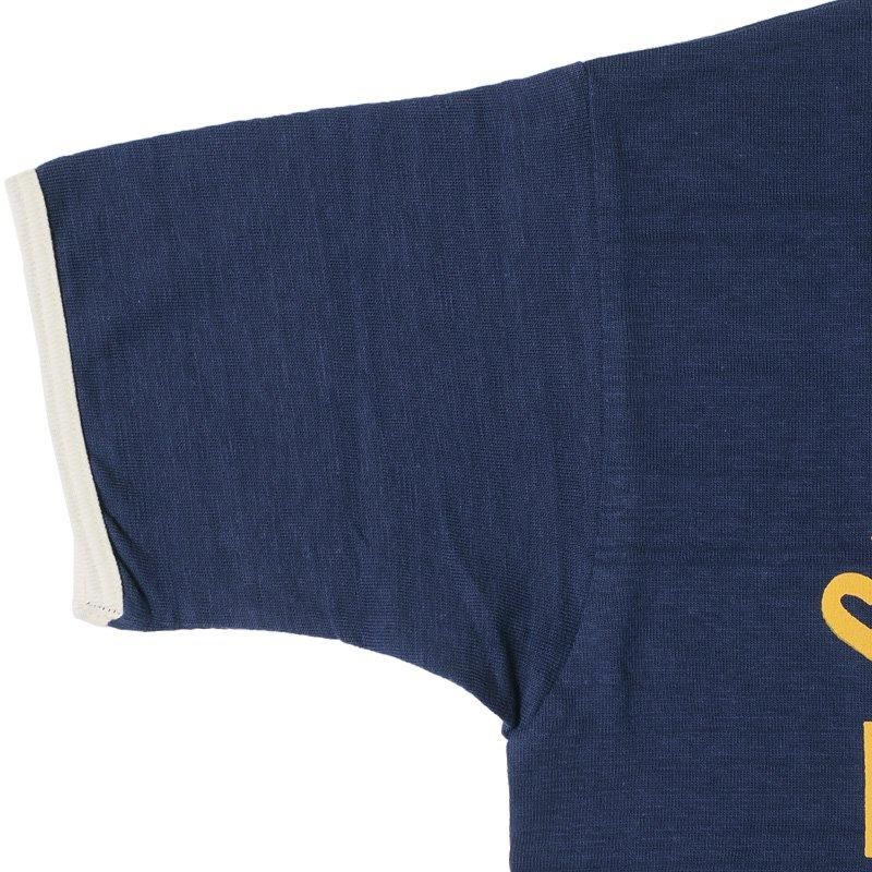 웨어하우스의 스탠다드 바디로 구식 로우 편직기를 사용한 독자적인 티셔츠입니다. 표면에 은은하게 가로 줄무늬처럼 음영이 나타나 쉐도우보더라고 불리며 단색이지만 마치 입체감 있는 스트라이프처럼 보이는 것이 특징입니다.