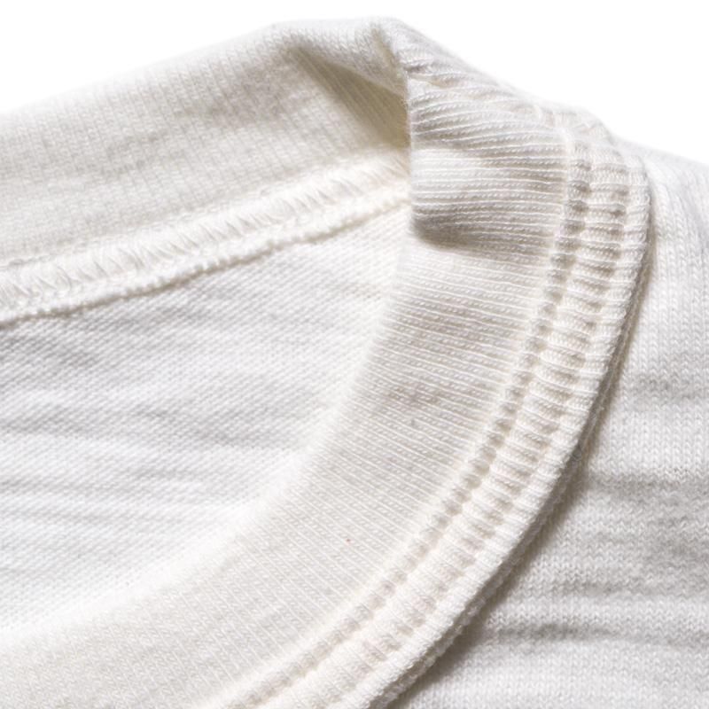 구형 저게이지 편직기 로 제작된 WAREHOUSE의 정통 티셔츠 바디입니다.