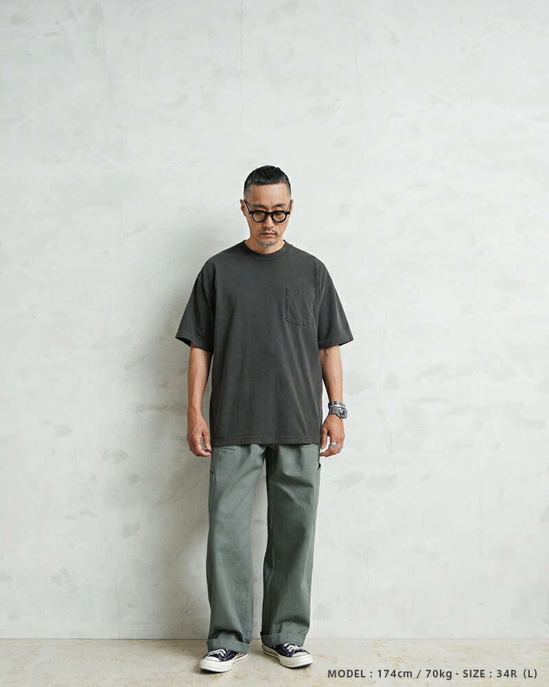 • 베이커팬츠와 유사한 프론트 패치 포켓 디자인에, 포켓을 따라 깊은 턱이 잡혀 있어 자연스럽고 균형 잡힌 와이드 실루엣을 연출합니다.
