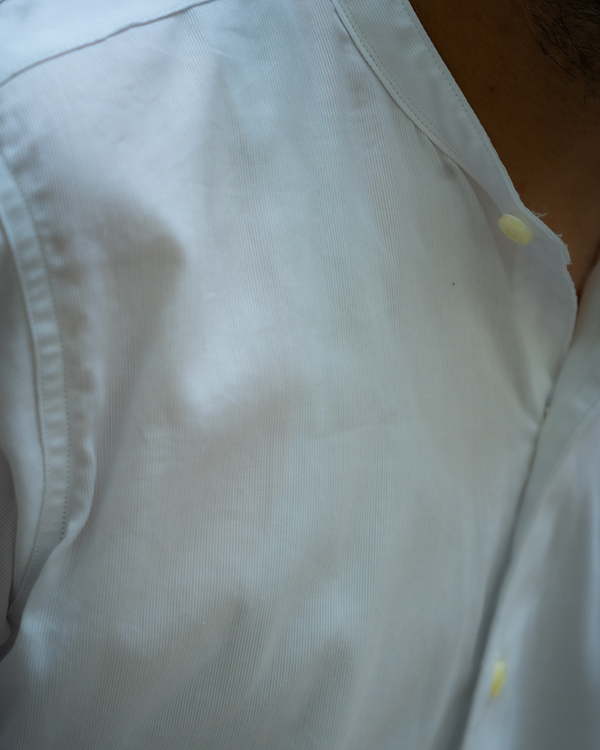 화이트 밴드 칼라 셔츠는 공식적인 자리뿐만 아니라 워크웨어로도 인기 있는 스타일이었습니다.